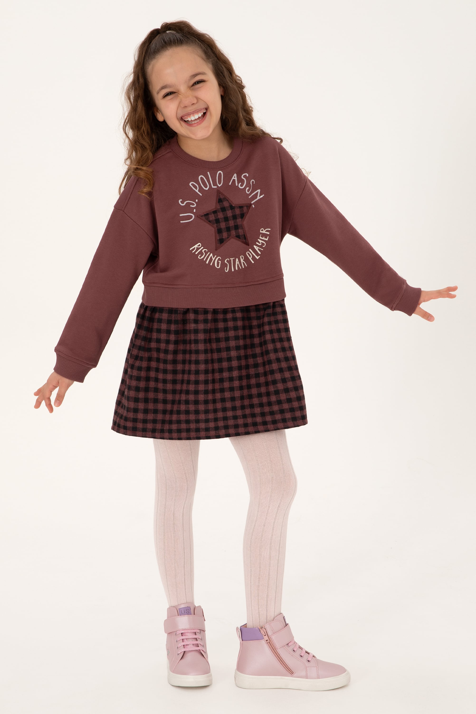 - Kız Çocuk Gül Kurusu Örme Elbise