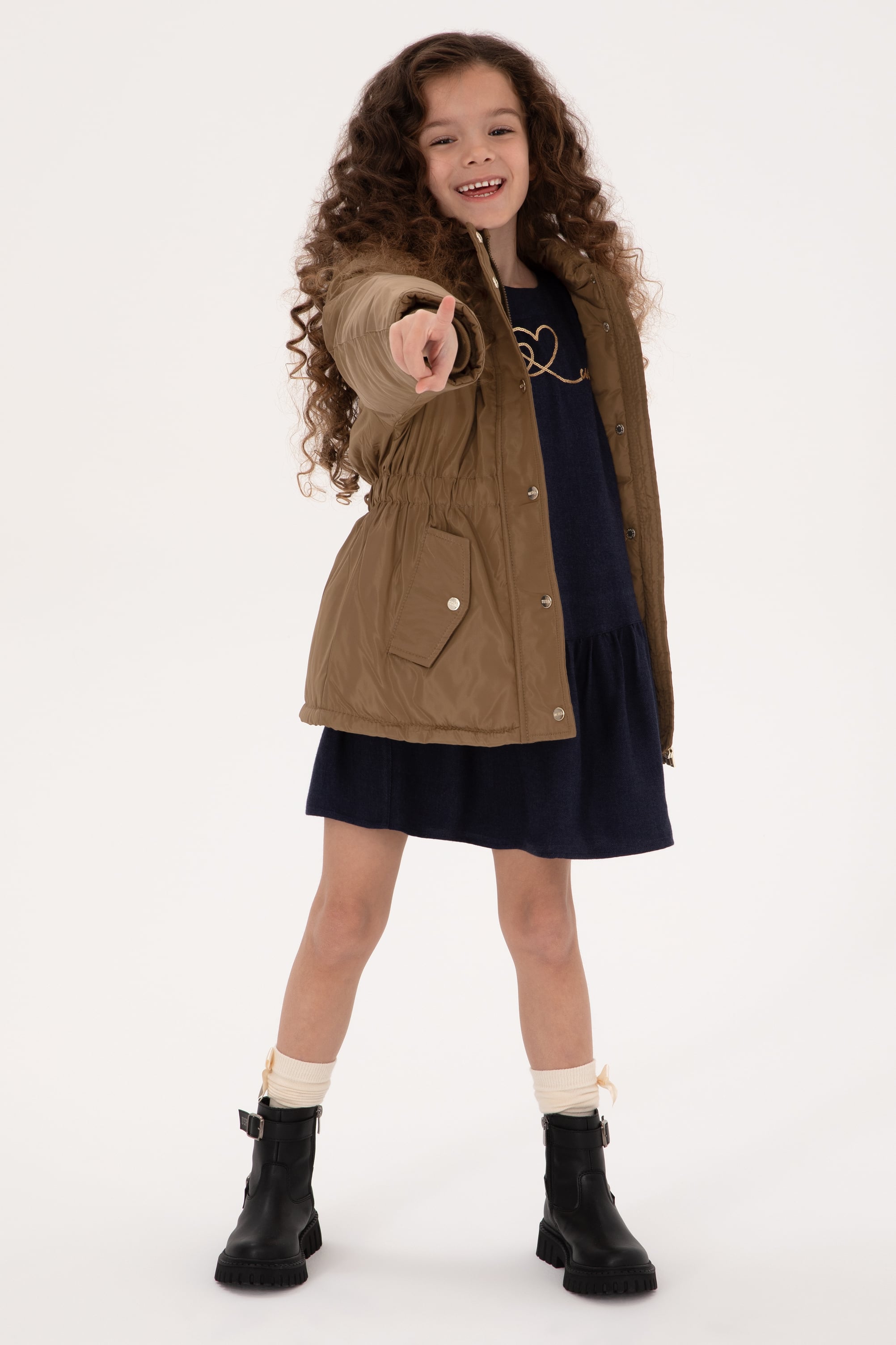 Kız Çocuk Kapüşomnlu Haki Kaban