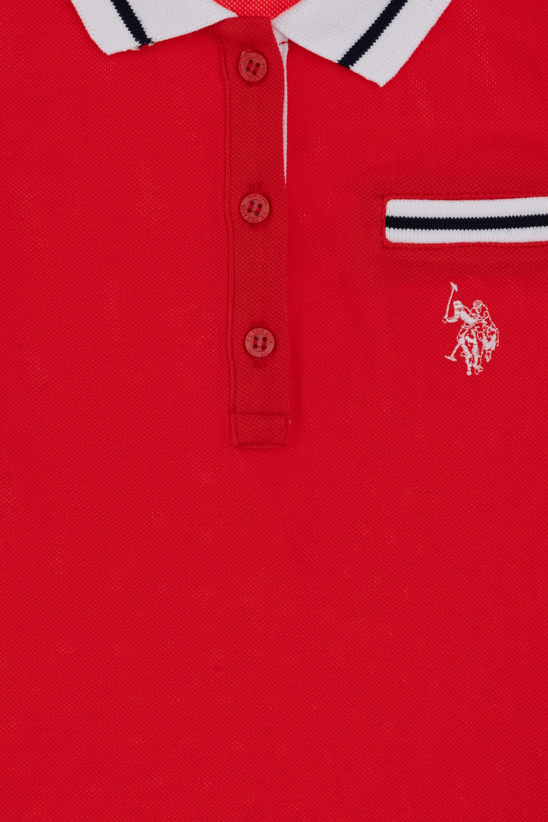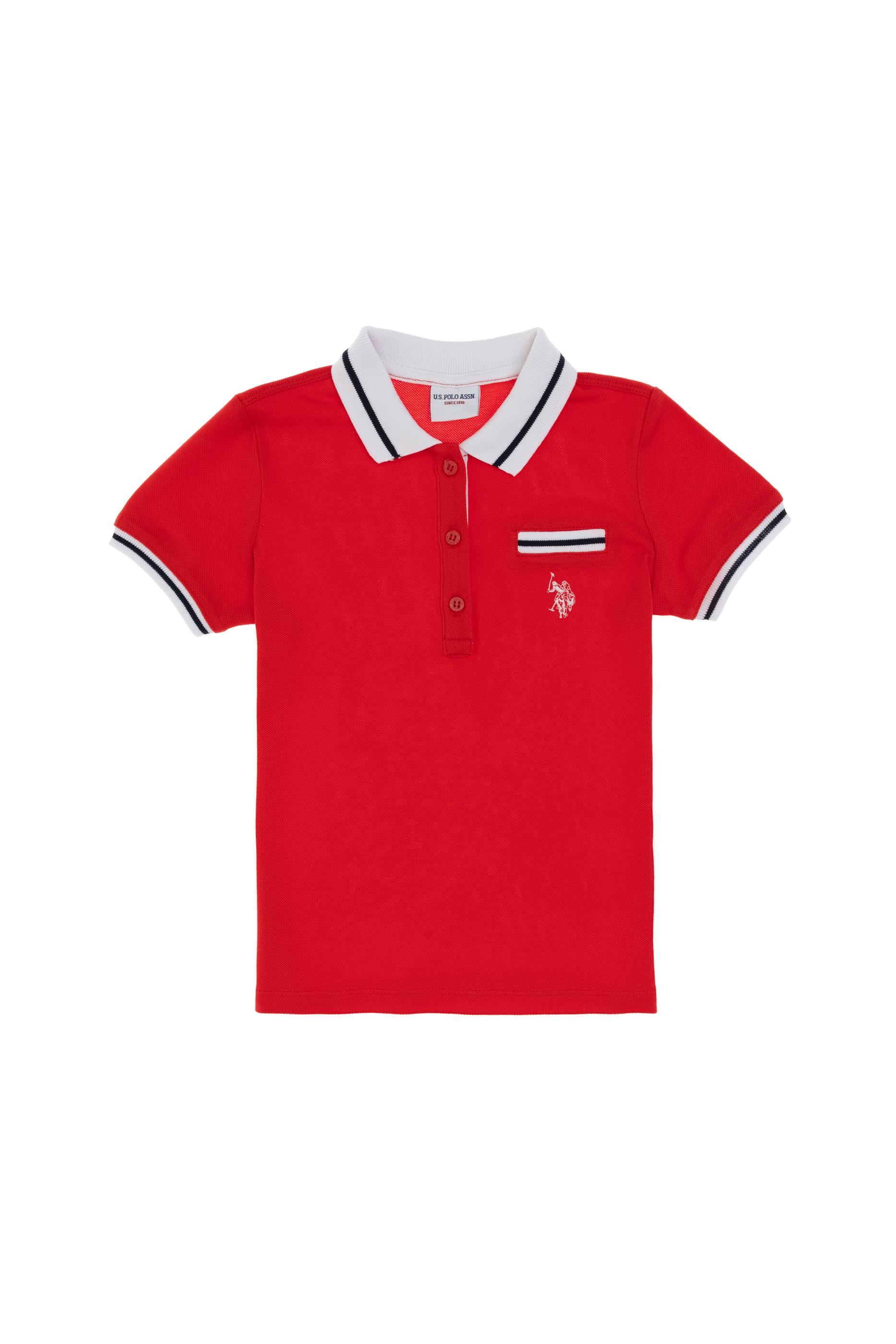 - Kız Çocuk Kırmızı Polo Yaka İşlevsiz Cepli Basic Tişört