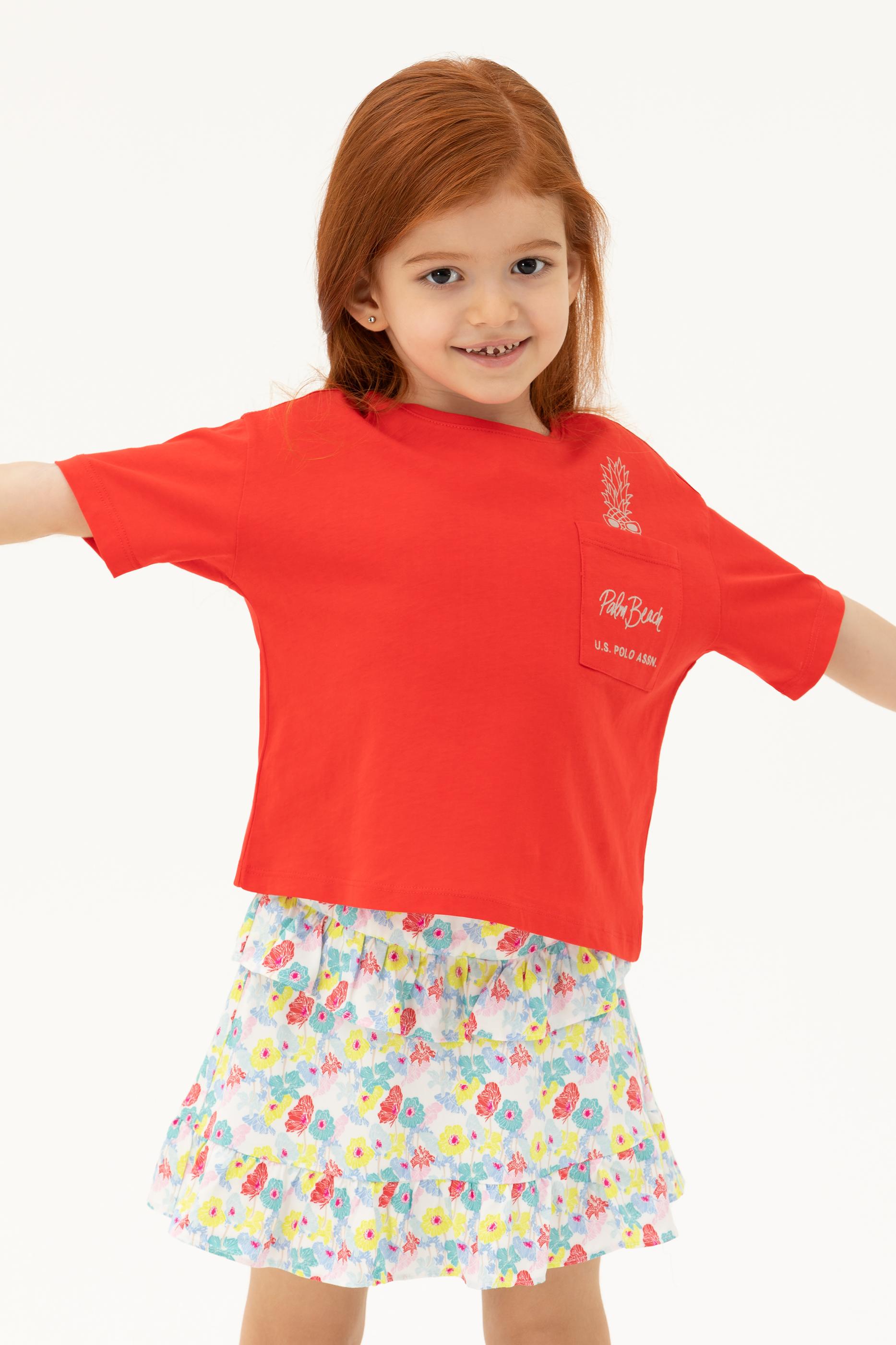 Kız çocukları için tasarlanan bu tişört online alışverişe özel olarak sunulmaktadır. Kırmızı renkte olan bisiklet yaka tişört, canlı ve enerjik bir görünüm sağlar. Kız çocuk tişört modelleri içinde cep detaylı baskısıyla dikkat çeken tişört şık ve modern bir tarza sahiptir. %100 pamuk malzemeden üretilen bu kız çocuk tişörtü nefes alabilen yapısı ile rahatlıkla tercih edilebilecek bir seçenektir. Regular kalıpta olması ise kolay bir kullanım sunar.
