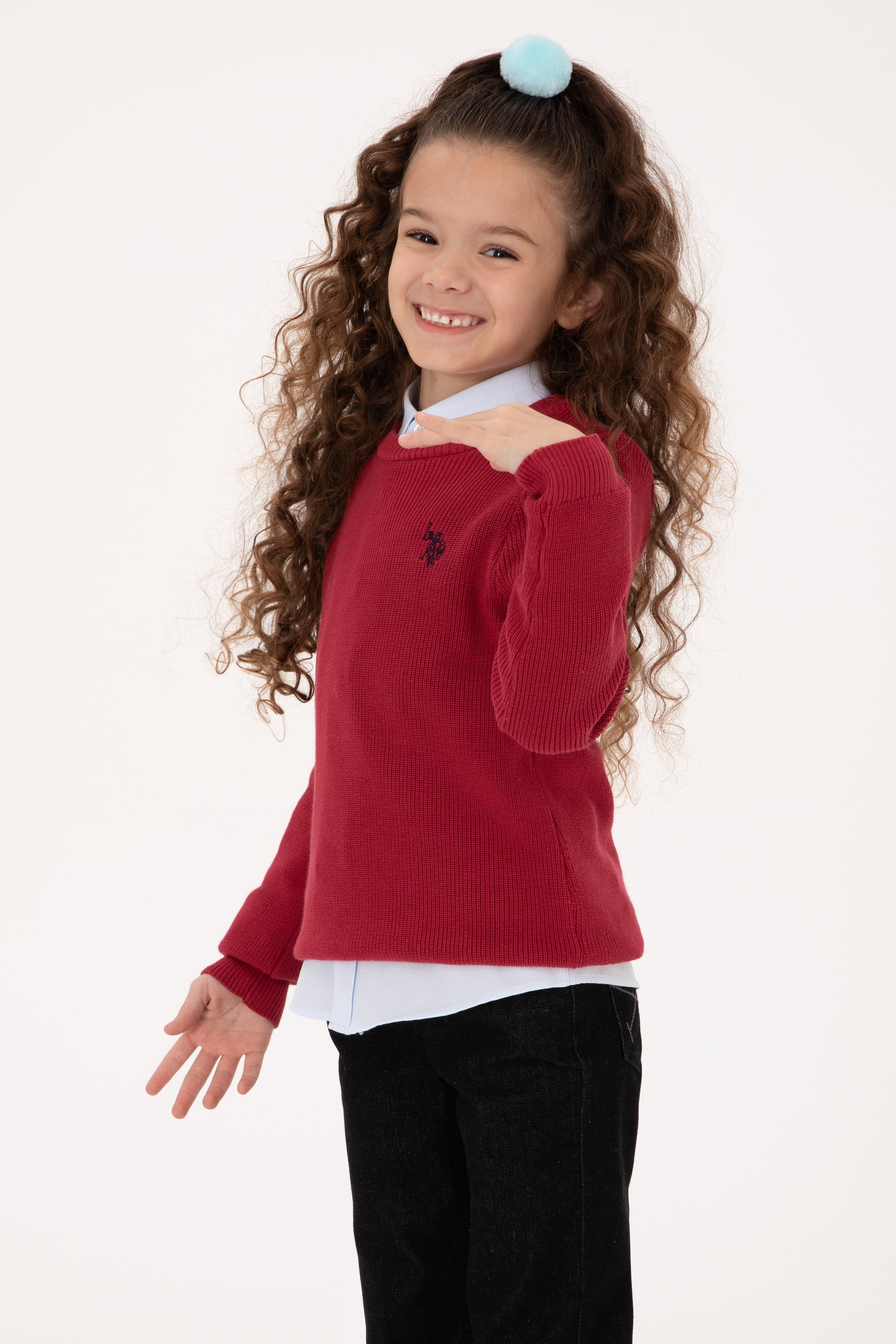- Kız Çocuk Koyu Frambuaz Bisiklet Yaka Basic Kazak