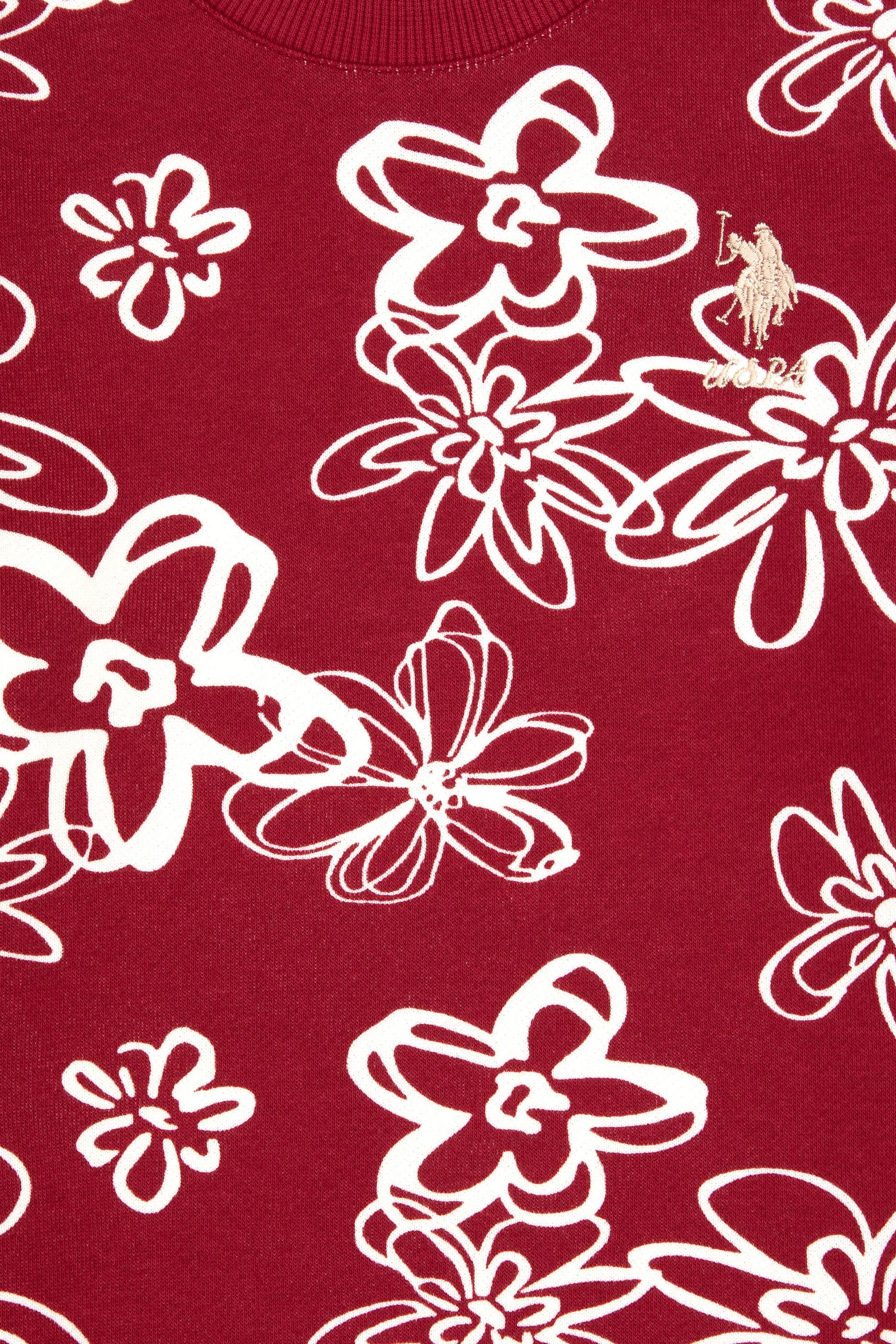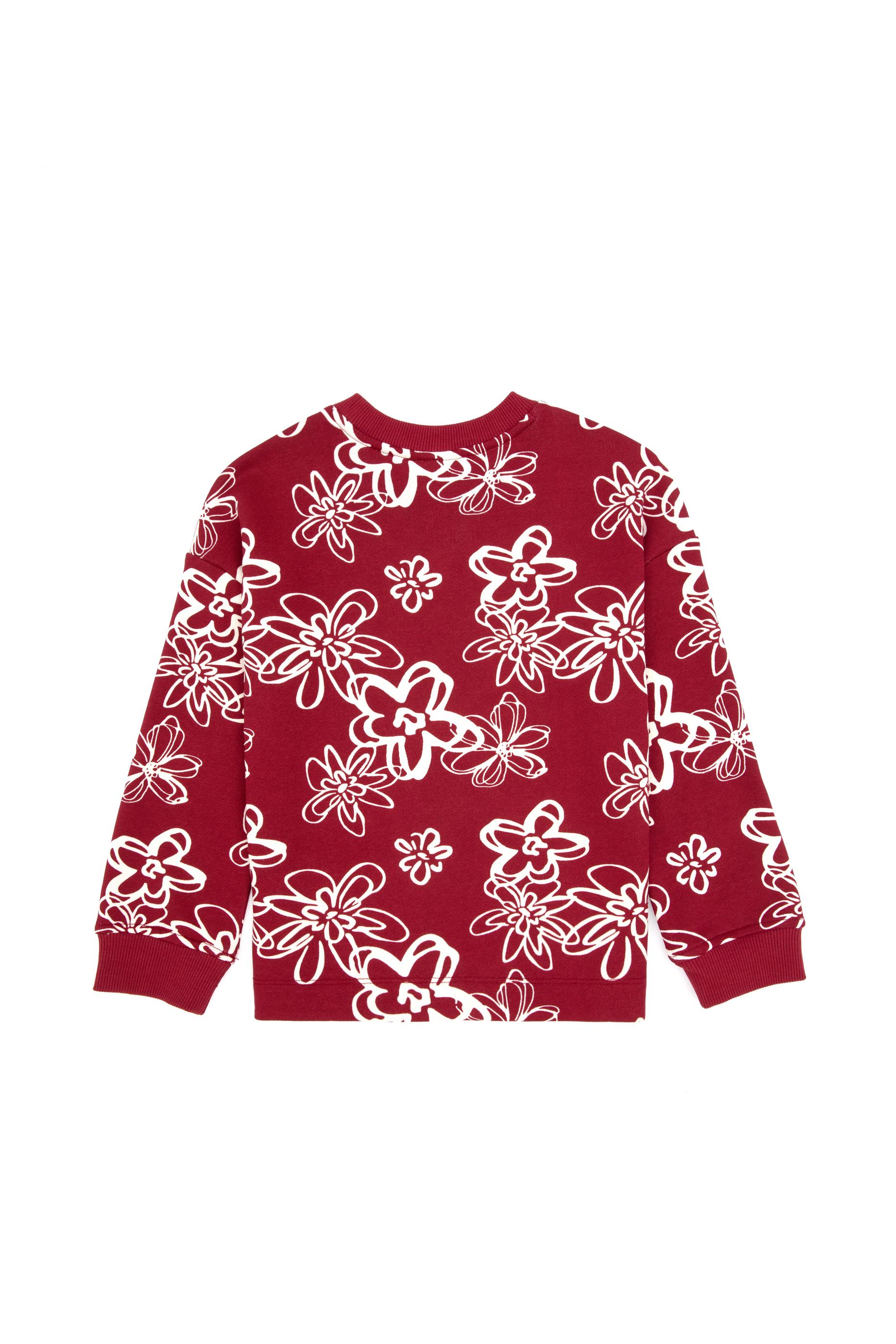 - Kız Çocuk Koyu Frambuaz Çiçek Desenli Bisiklet Yaka Sweatshirt