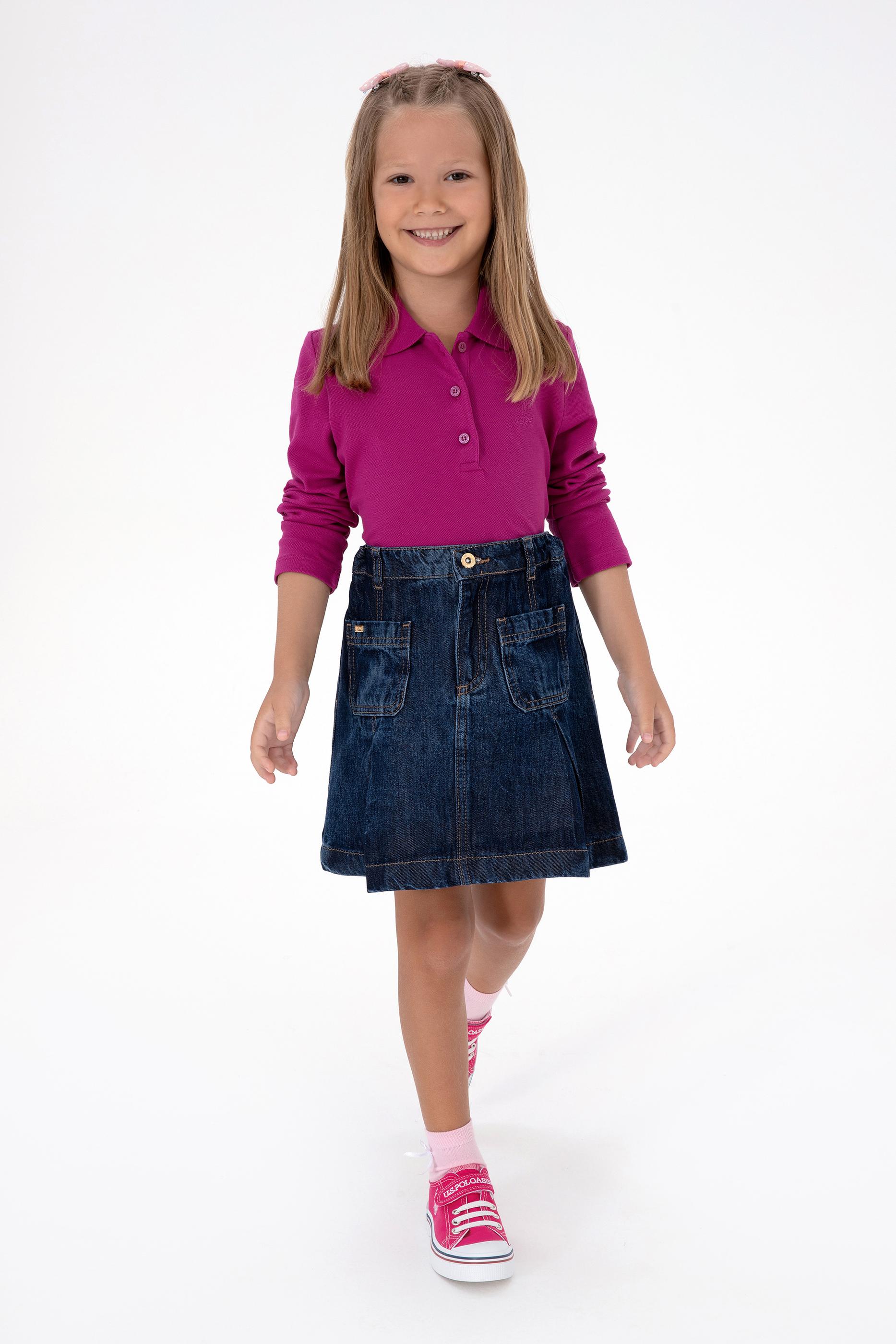 %100 Liyosel kumaştan üretilen mavi kız çocuk denim etek, yumuşak dokusu ve hafif yapısıyla küçük hanımlar için konforlu bir kullanım sunar. A-form kesimi sayesinde hareket özgürlüğü sağlar ve vücuda hoş bir uyum kazandırır. Doğal liflerden elde edilen Liyosel malzeme, nefes alabilen yapısıyla cilt dostudur ve gün boyu rahatlık sunar. Jean görünümlü kumaşı, klasik denim şıklığını modern bir dokunuşla buluşturur. Bel kısmındaki esnek yapı, çocuğun rahatça giyip çıkarmasını kolaylaştırırken, formunu uzun süre korur. Mavi rengi sayesinde farklı üstlerle rahatlıkla kombinlenebilir; günlük giyimden özel gün kombinlerine kadar geniş bir kullanım alanı sunar. Hem şık hem de fonksiyonel tasarımıyla gardırobun vazgeçilmez parçalarından biri olmaya adaydır. Kız çocuklarının enerjik ve neşeli tarzını tamamlayan bu jean etek, şıklığı ve rahatlığı bir arada arayan aileler için ideal bir seçimdir.