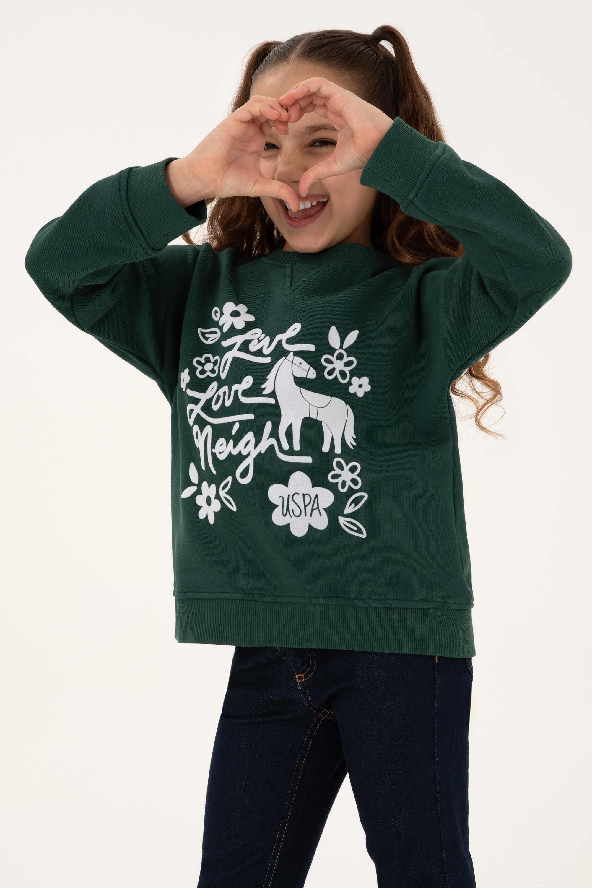 - Kız Çocuk Koyu Yeşil Bisiklet Yaka Sweatshirt