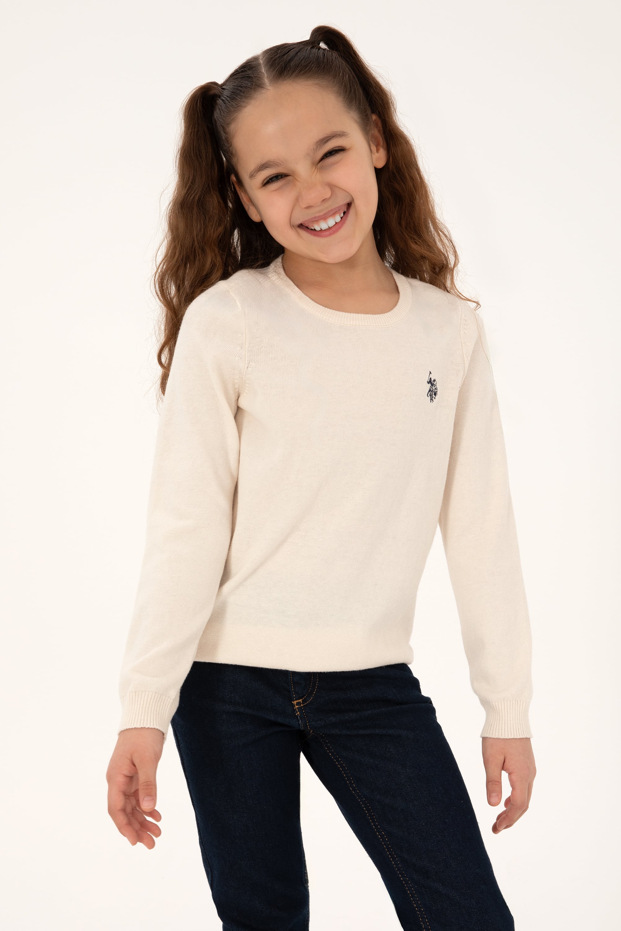 Kız Çocuk Krem Bisiklet Yaka Basic Kazak