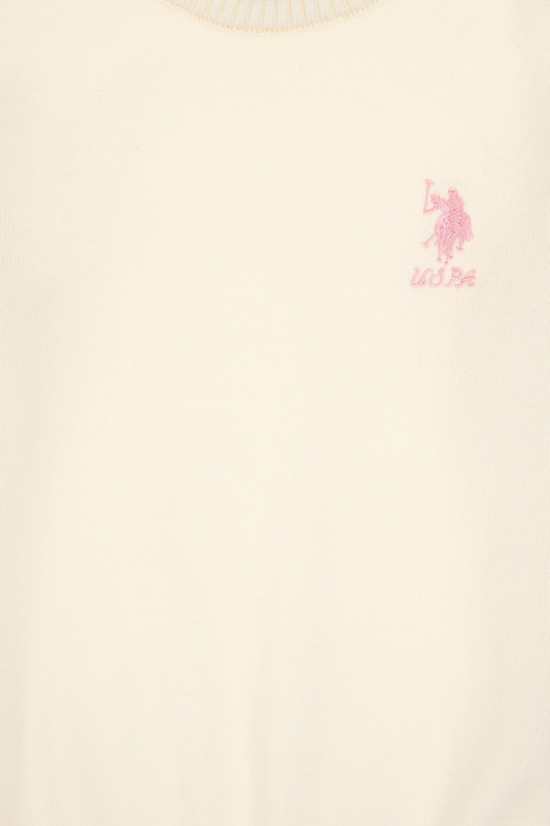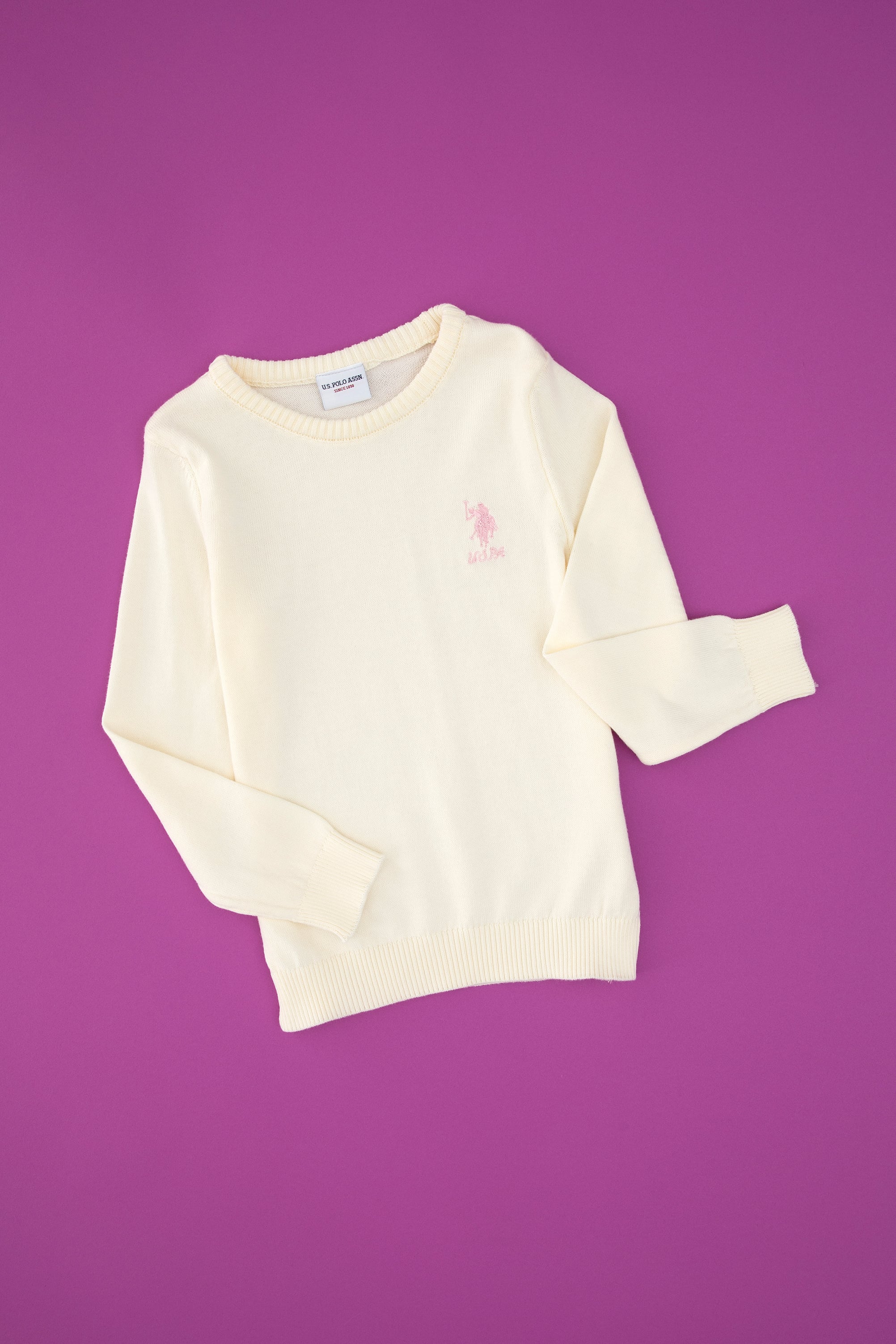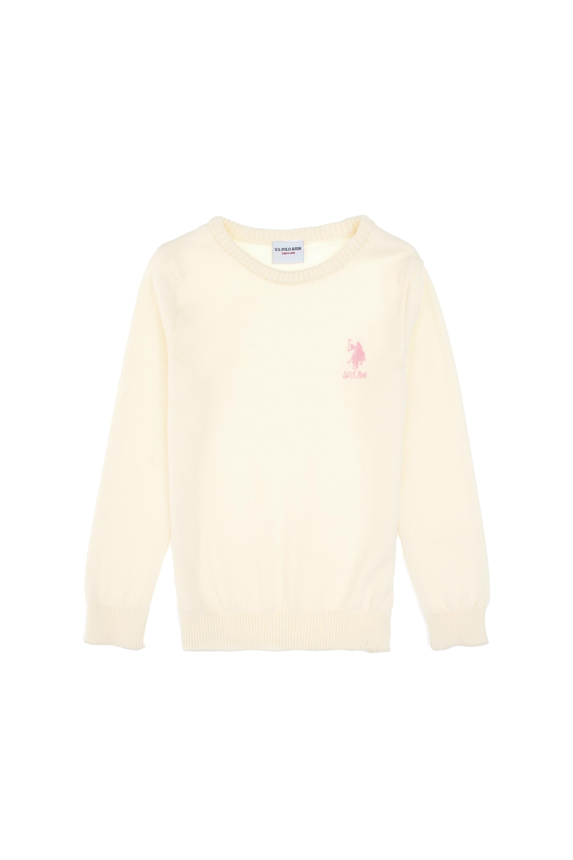 Kız Çocuk Krem Bisiklet Yaka Basic Kazak