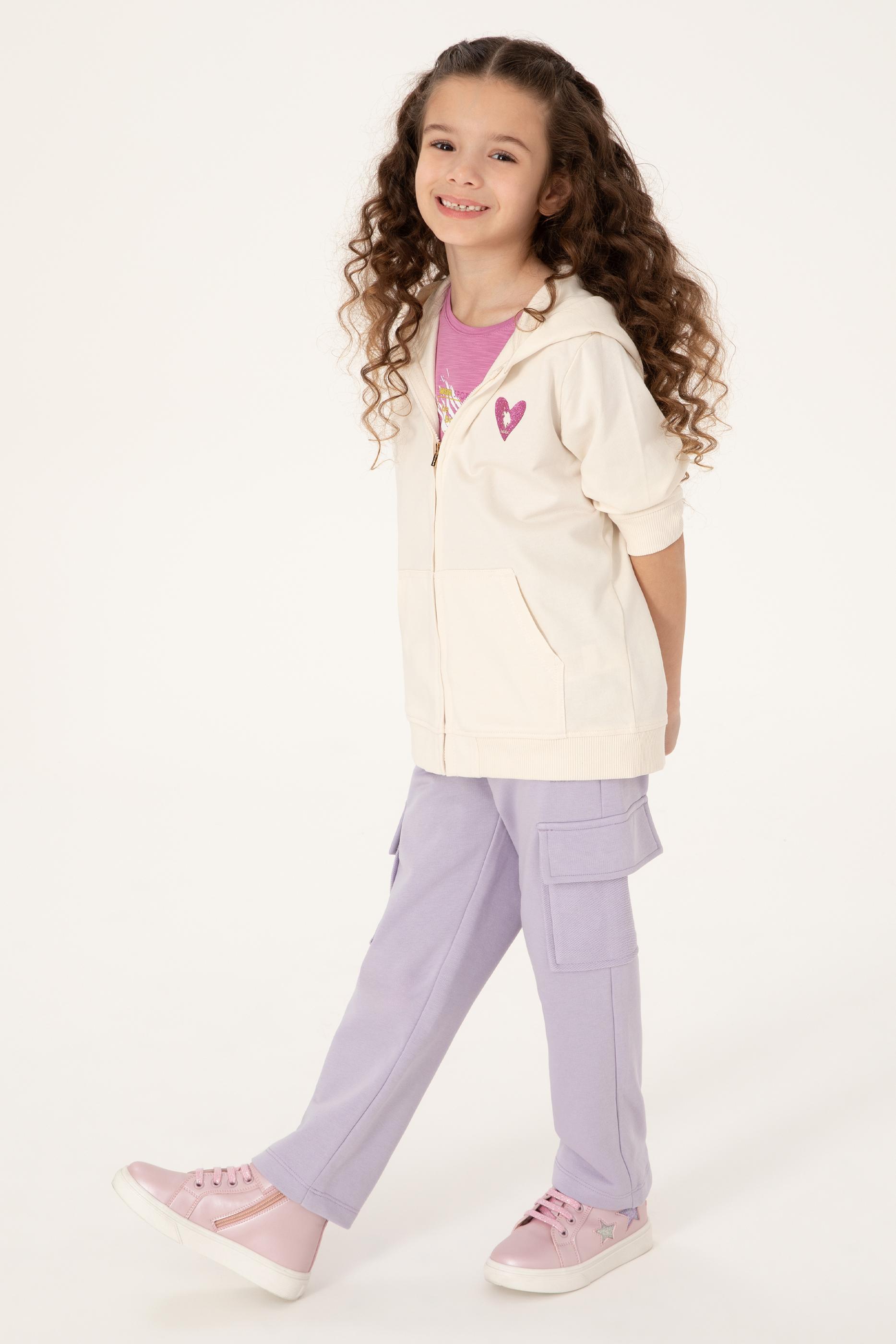 - Kız Çocuk Krem Fermuarlı Basic Sweatshirt