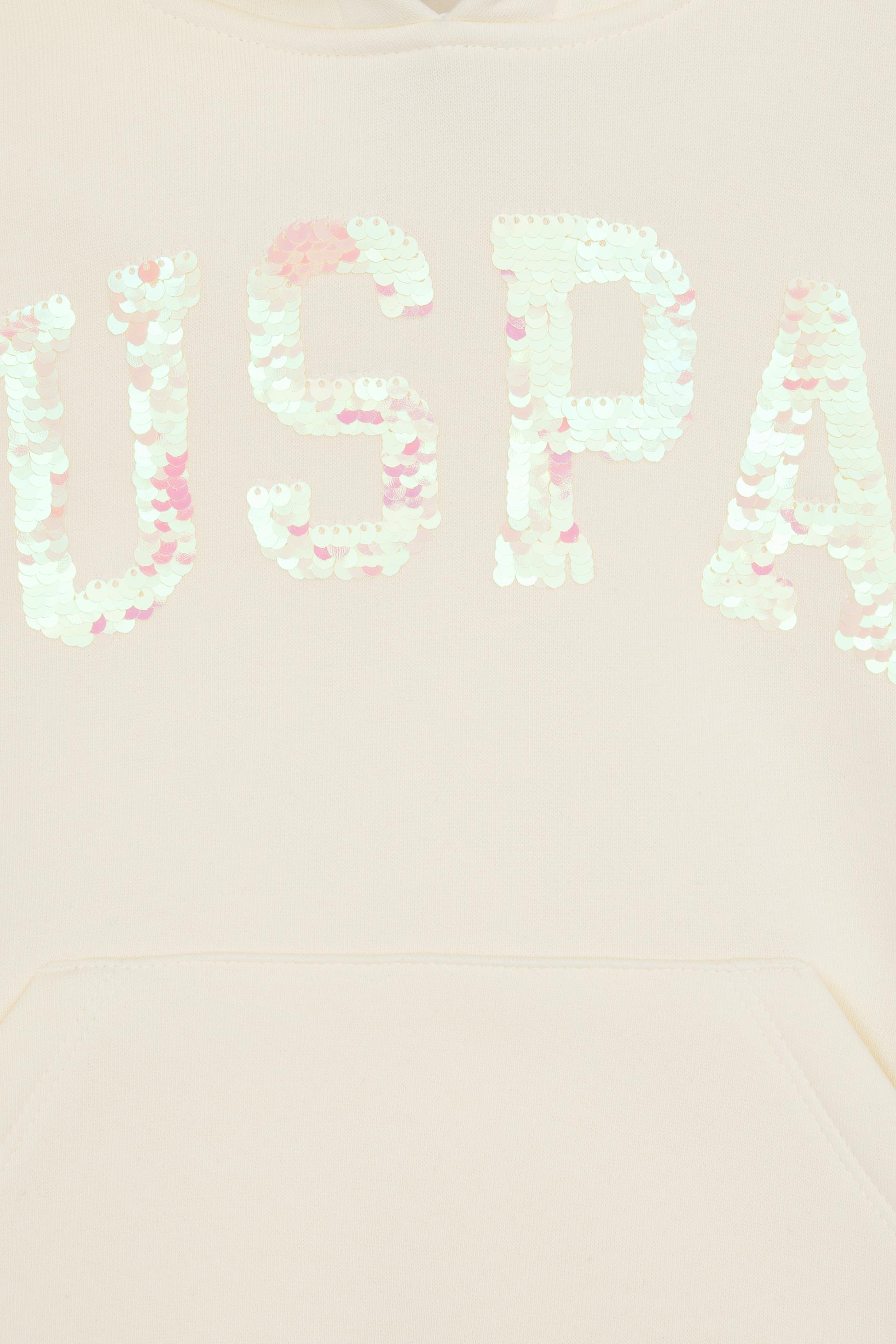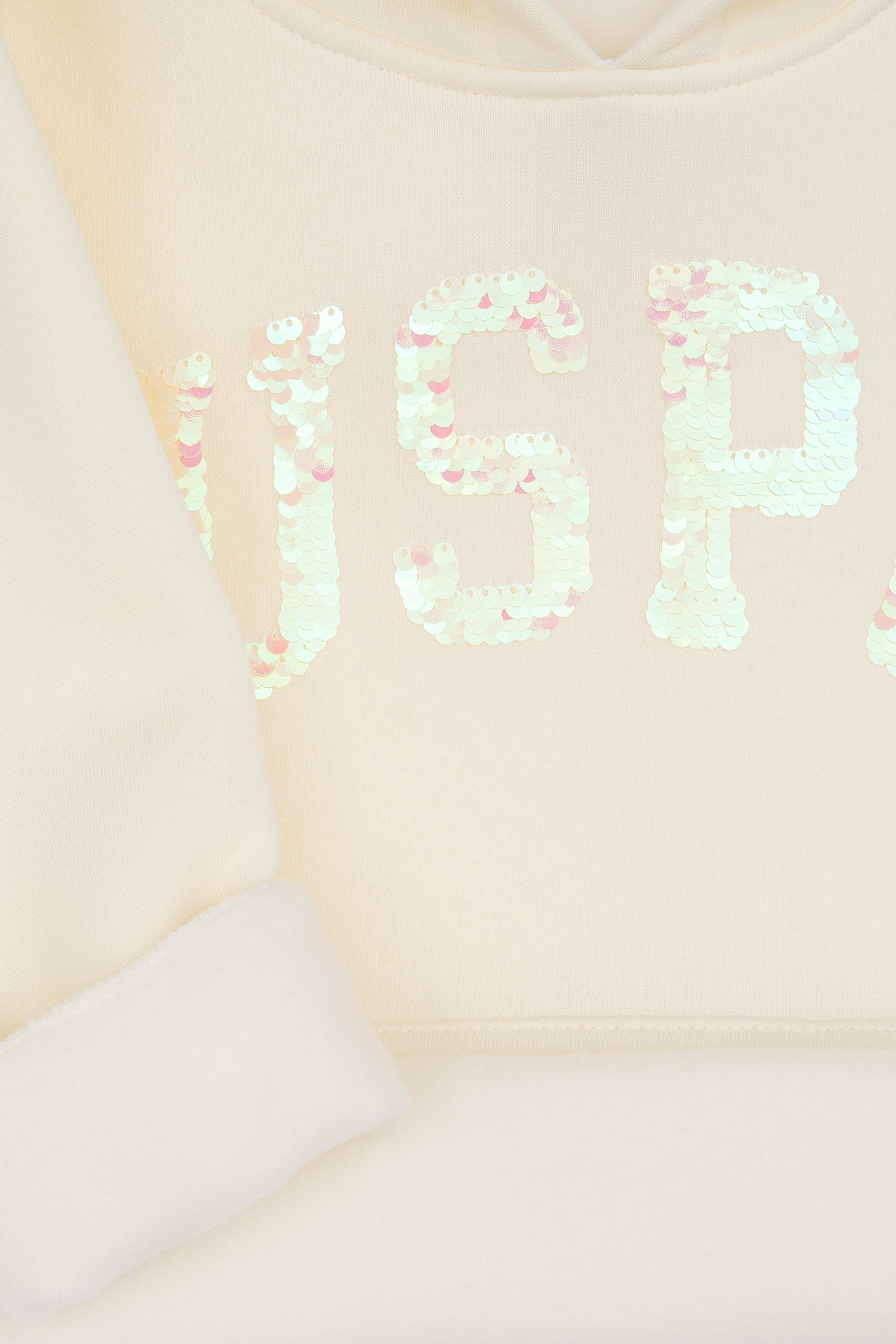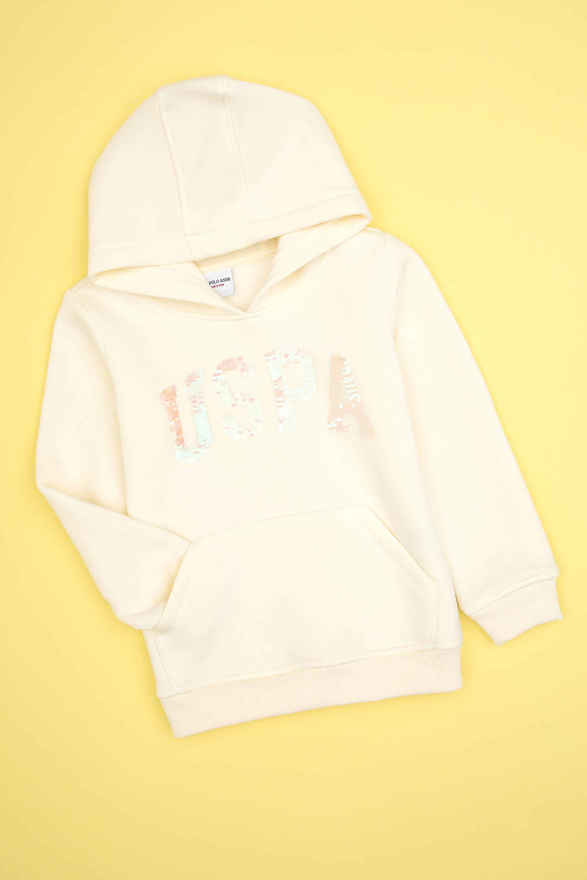 Kız Çocuk Krem Payet İşlemeli Şardonlu Kapüşonlu Basic Sweatshirt