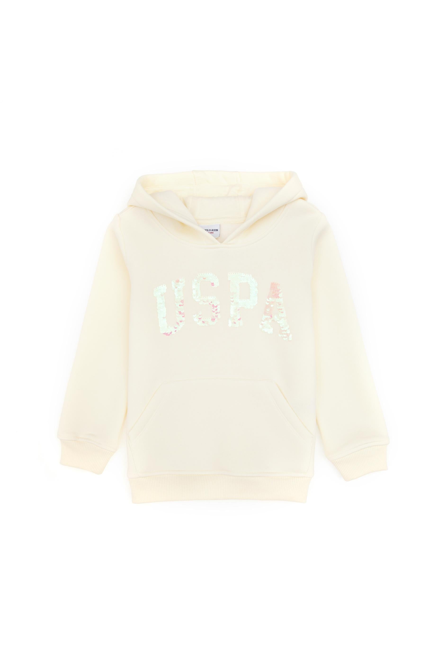 - Kız Çocuk Krem Payet İşlemeli Şardonlu Kapüşonlu Basic Sweatshirt