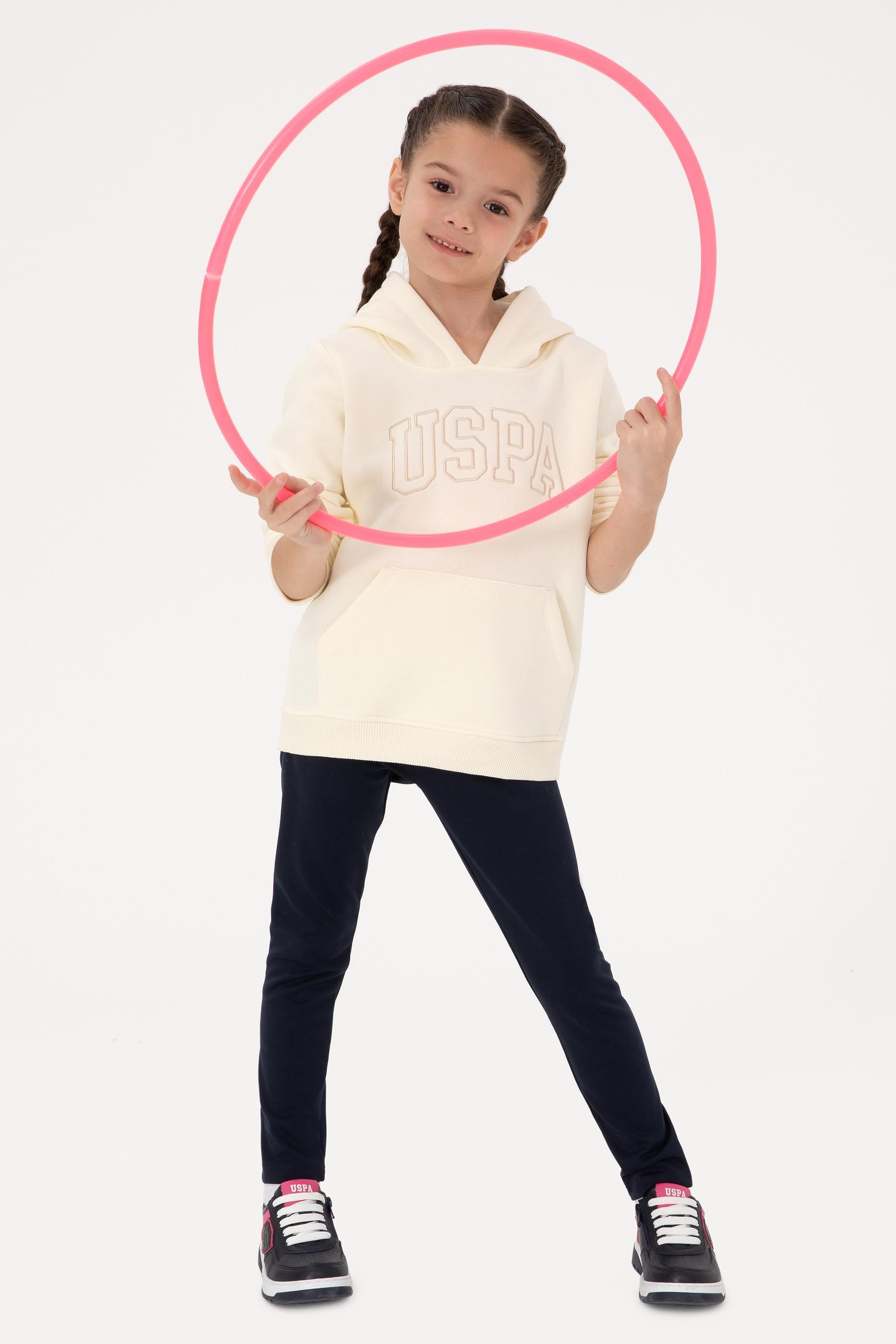 Kız Çocuk Krem Kapüşonlu Şardonlu Basic Sweatshirt