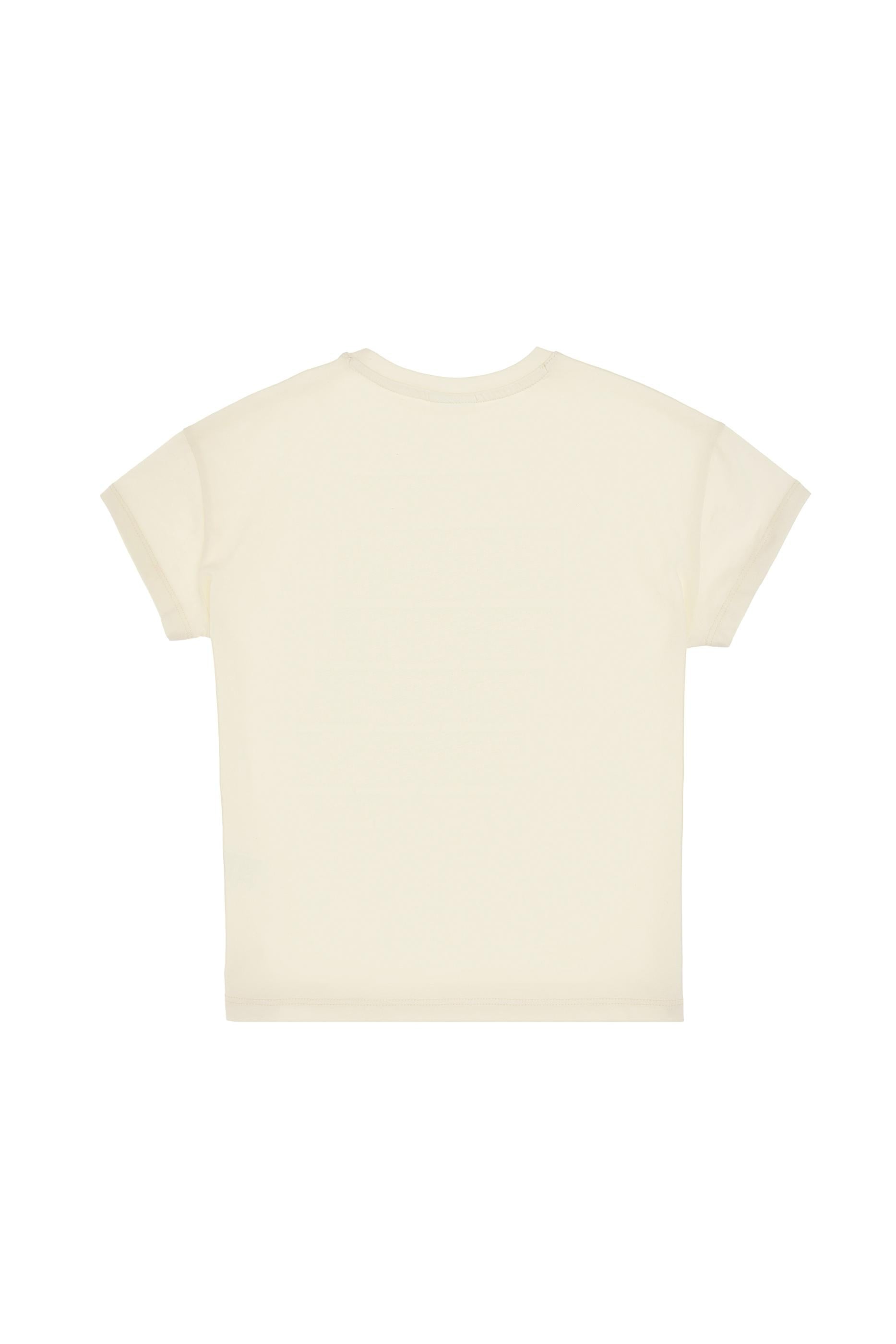 - Kız Çocuk Krem Comfort Bisiklet Yaka Renkli Çizgi Baskılı Pamuk Tişört