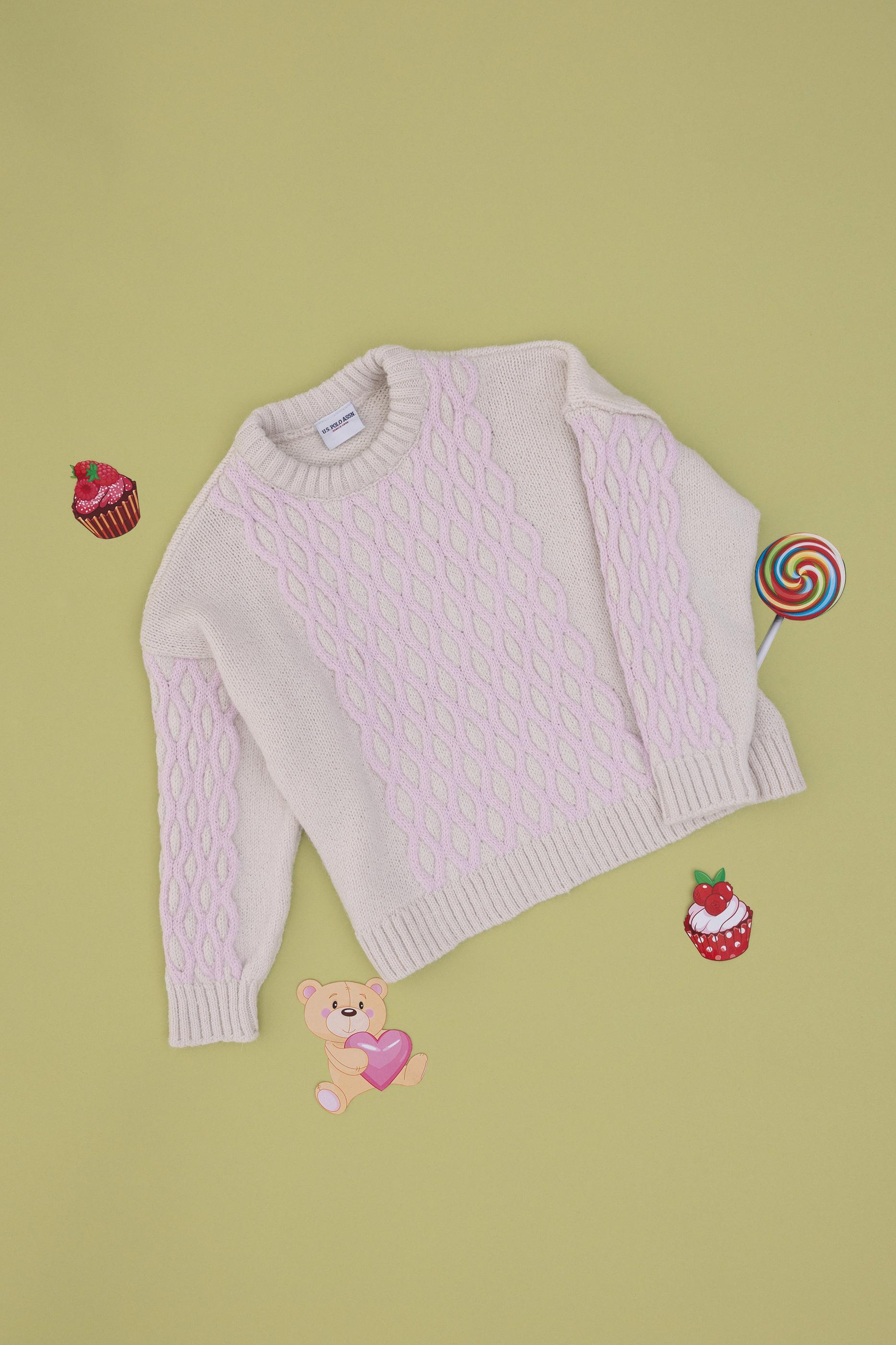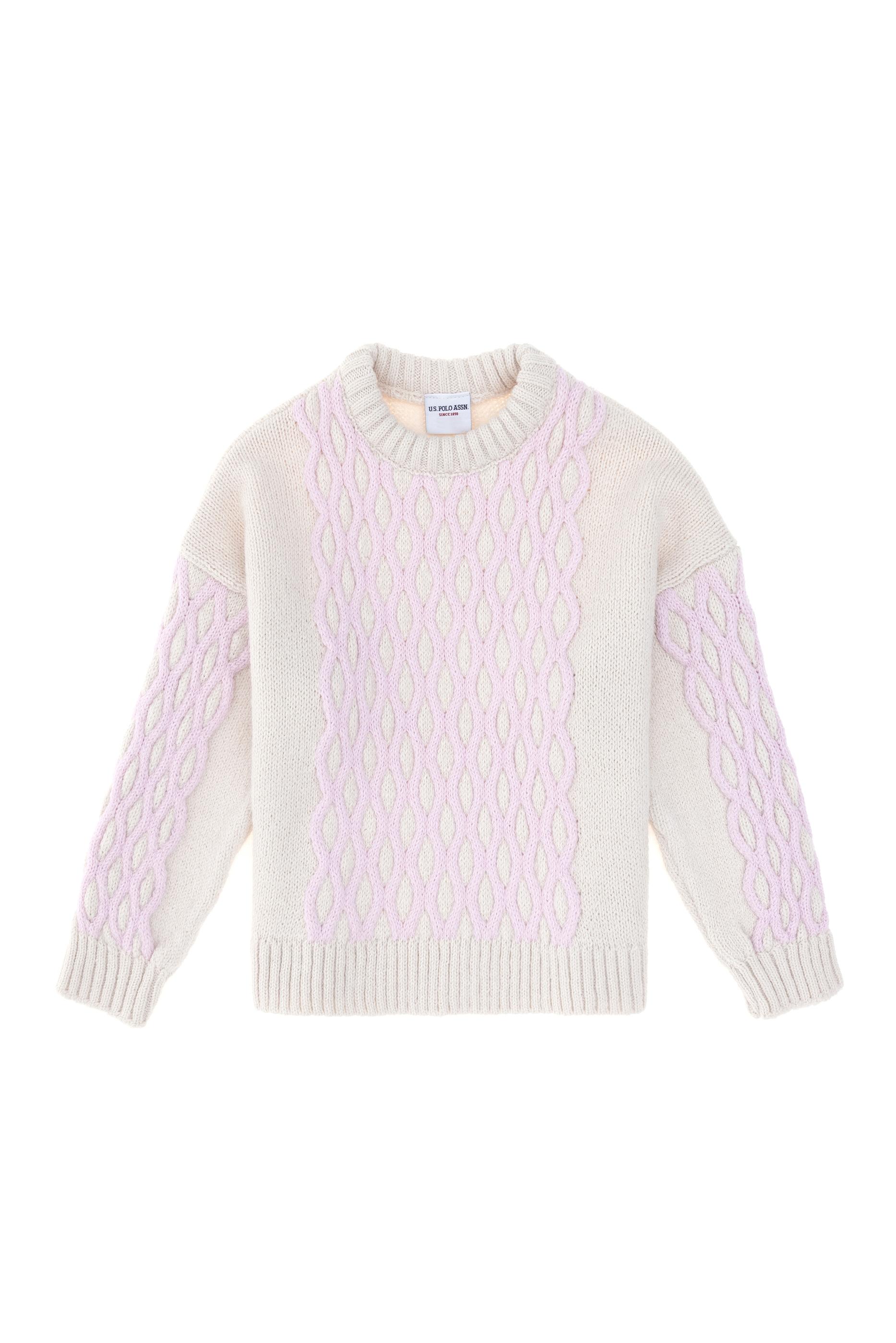 Kız Çocuk Krem Bisiklet Yaka Kazak