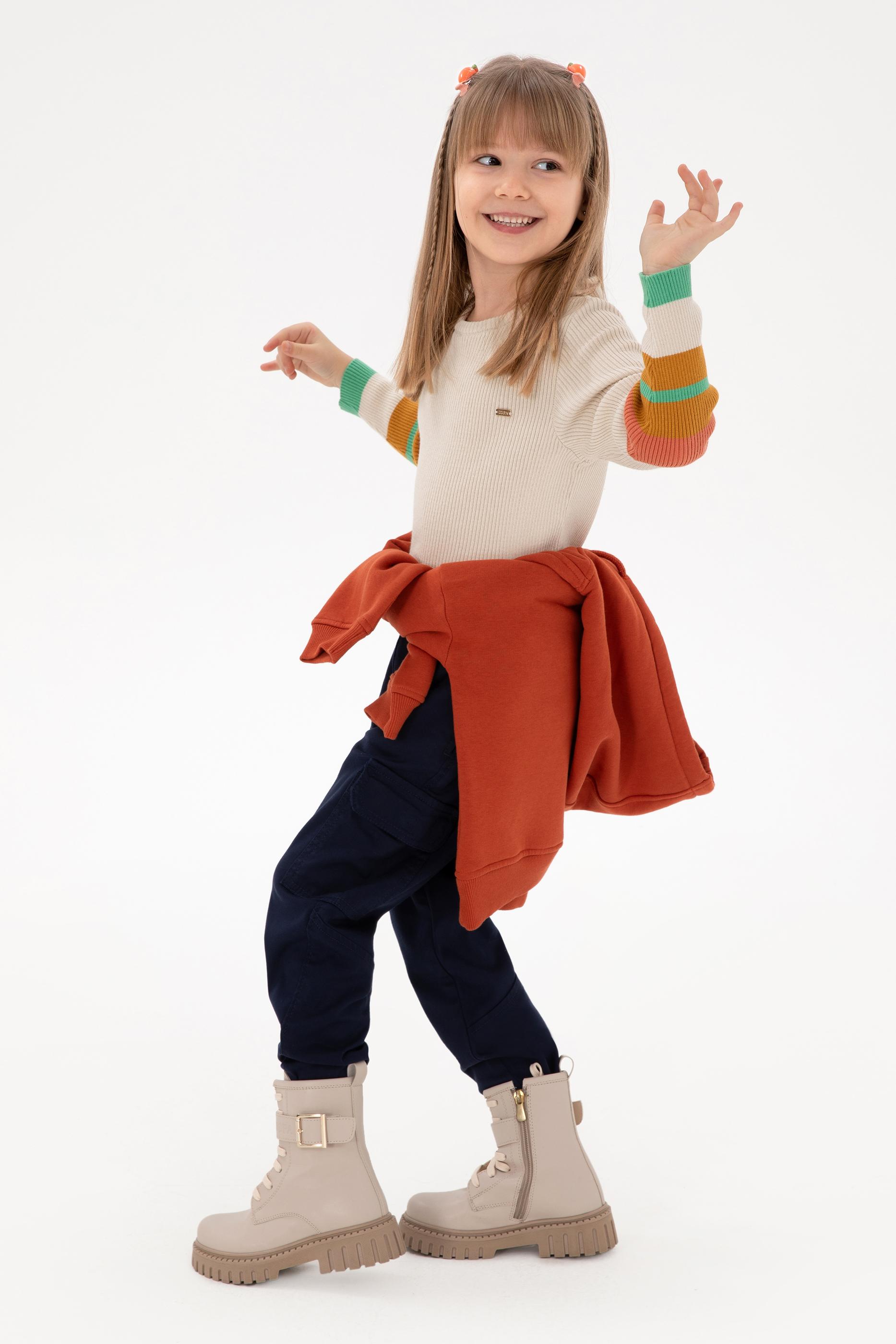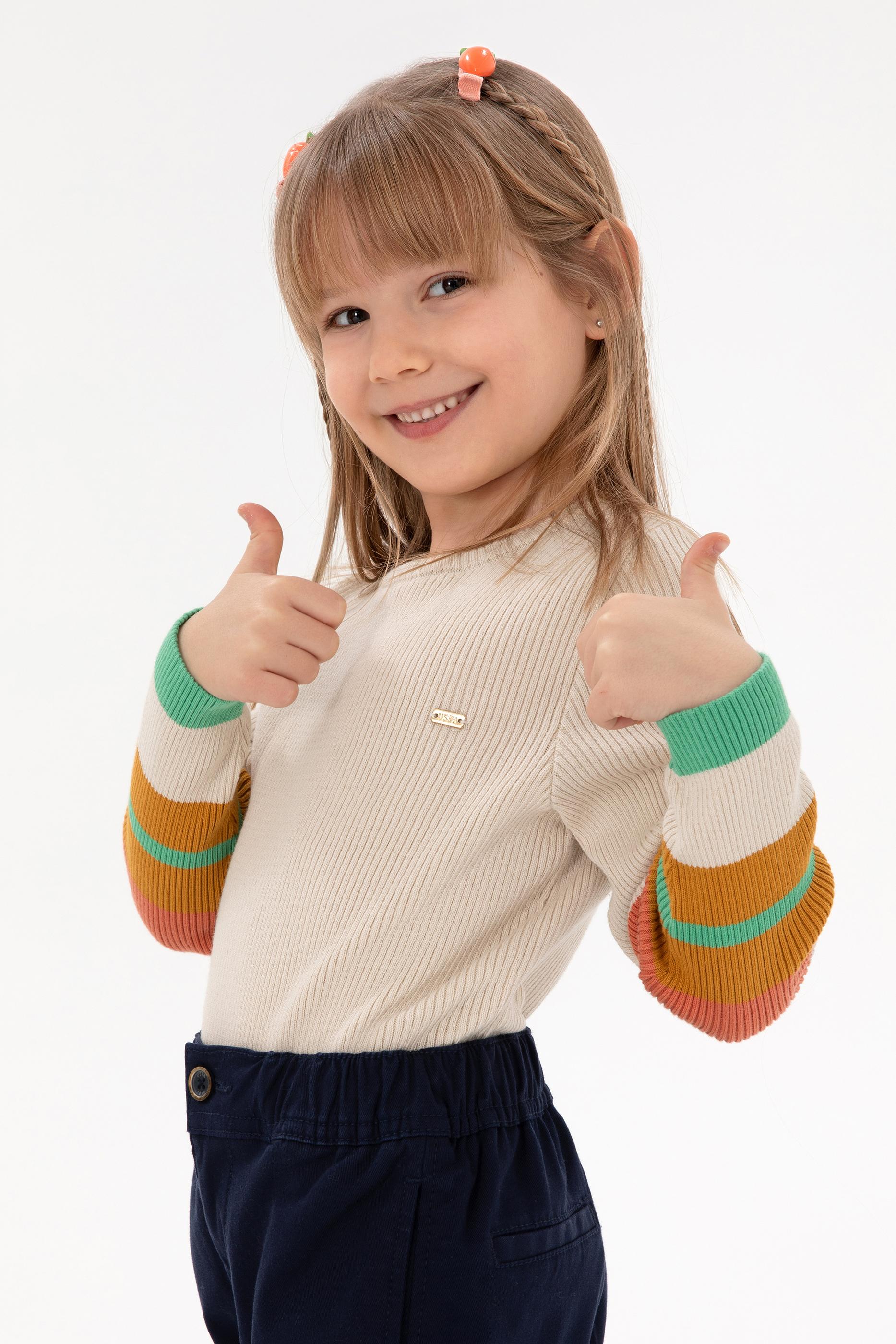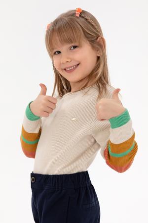 Kız Çocuk Krem Bisiklet Yaka Kazak