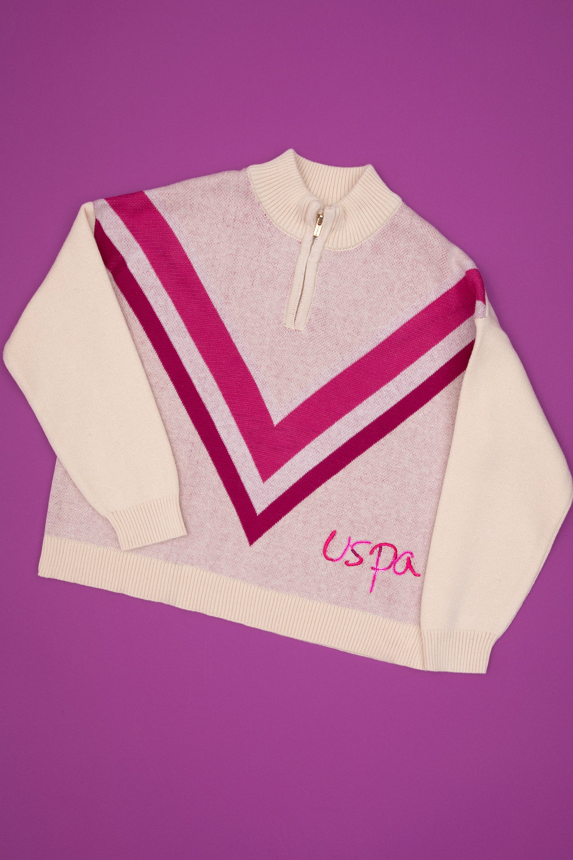 Kız Çocuk Krem Yarım Fermuarlı Kazak