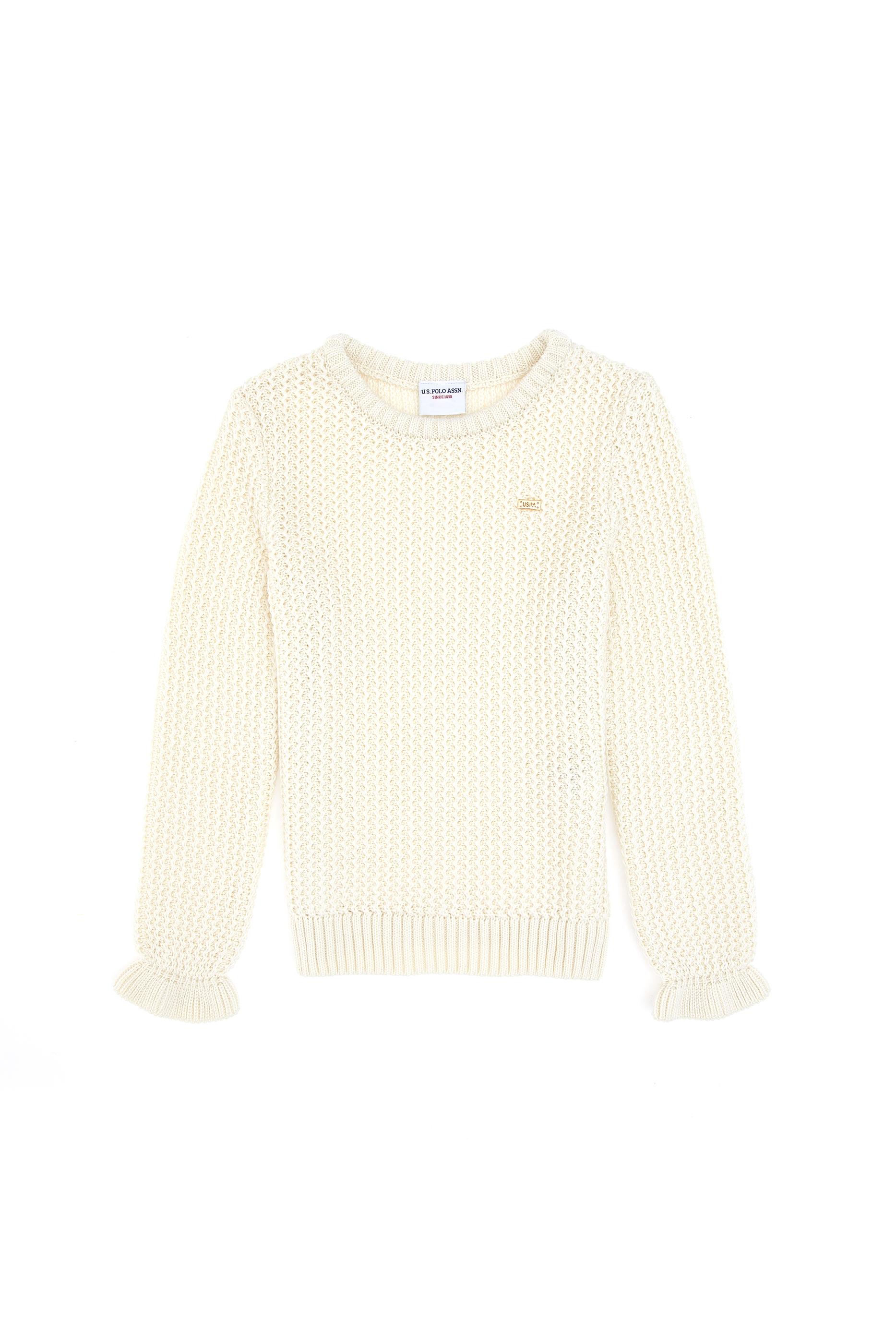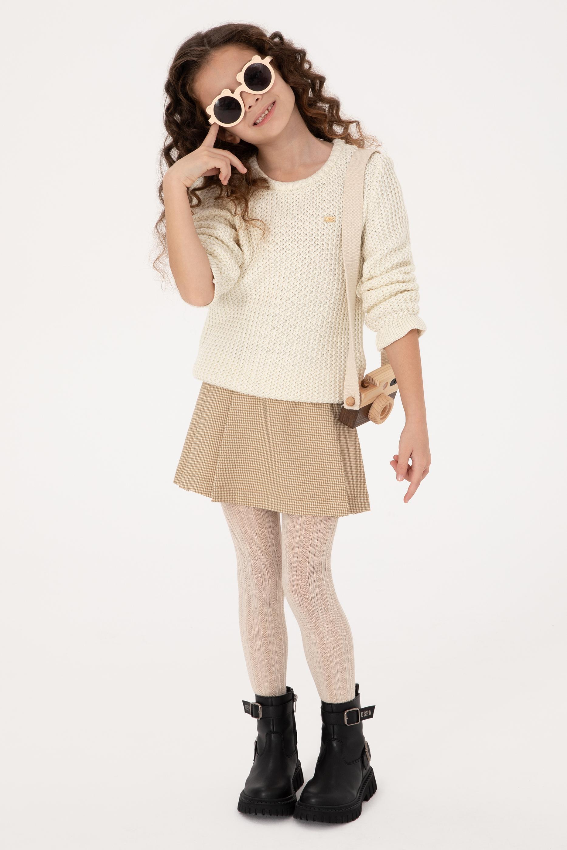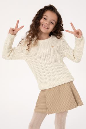 Kız Çocuk Bisiklet Yaka Krem Kazak