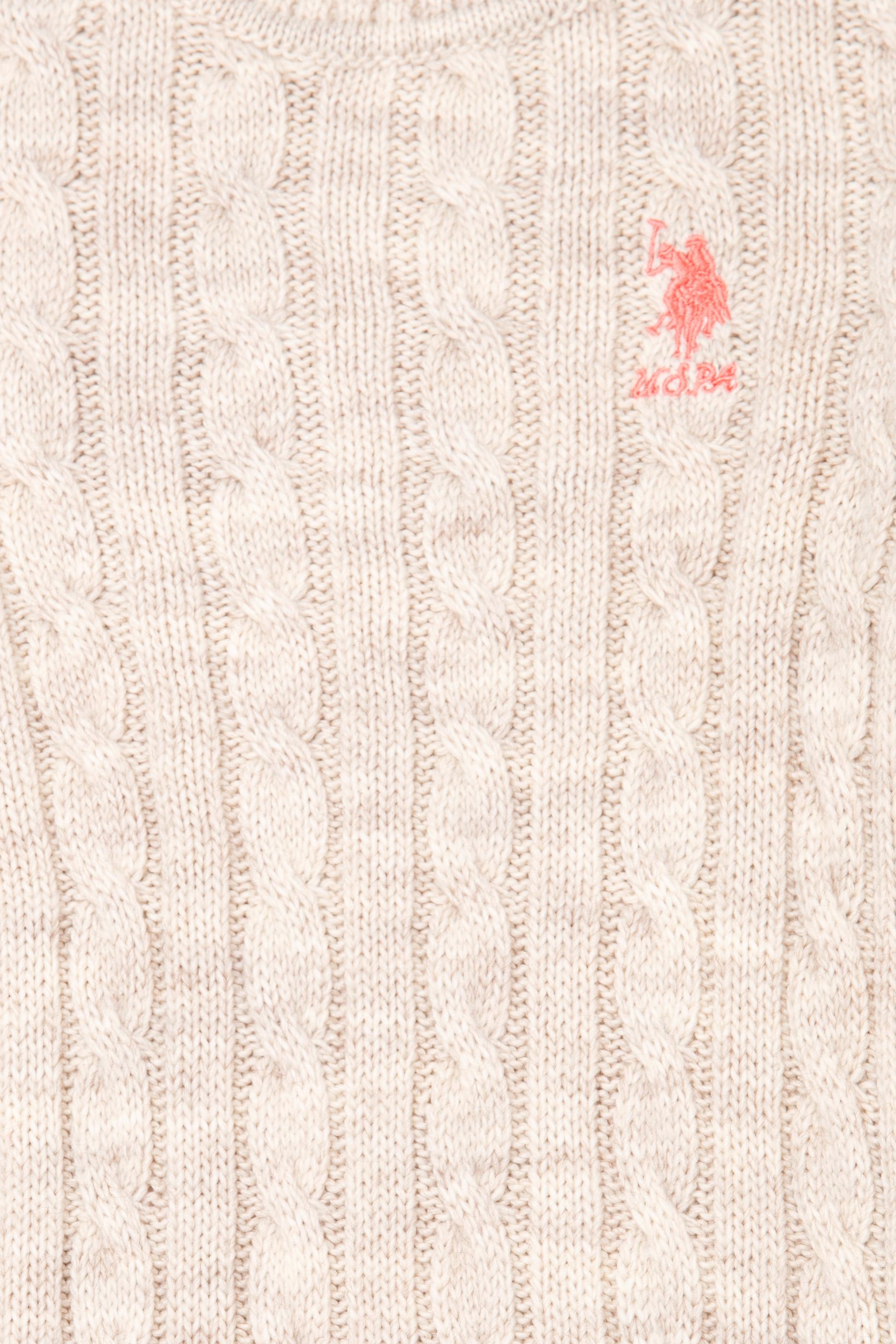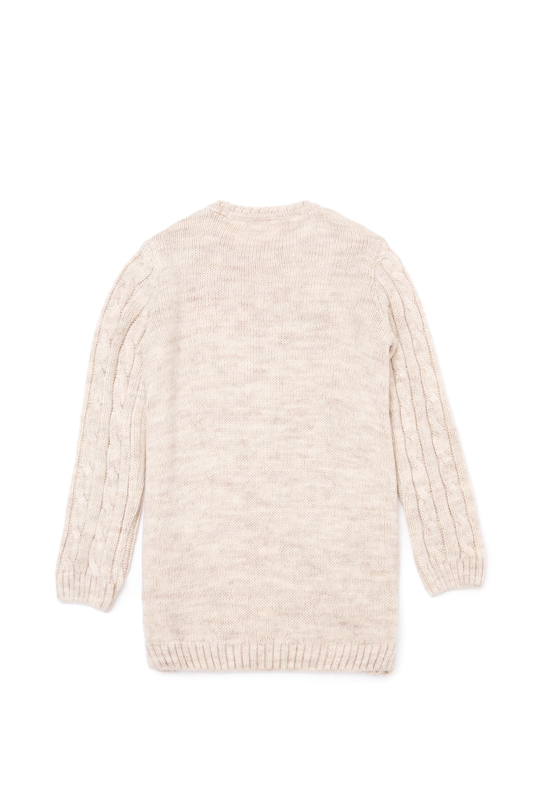 - Kız Çocuk Krem Melanj Bisiklet Yaka Triko Elbise