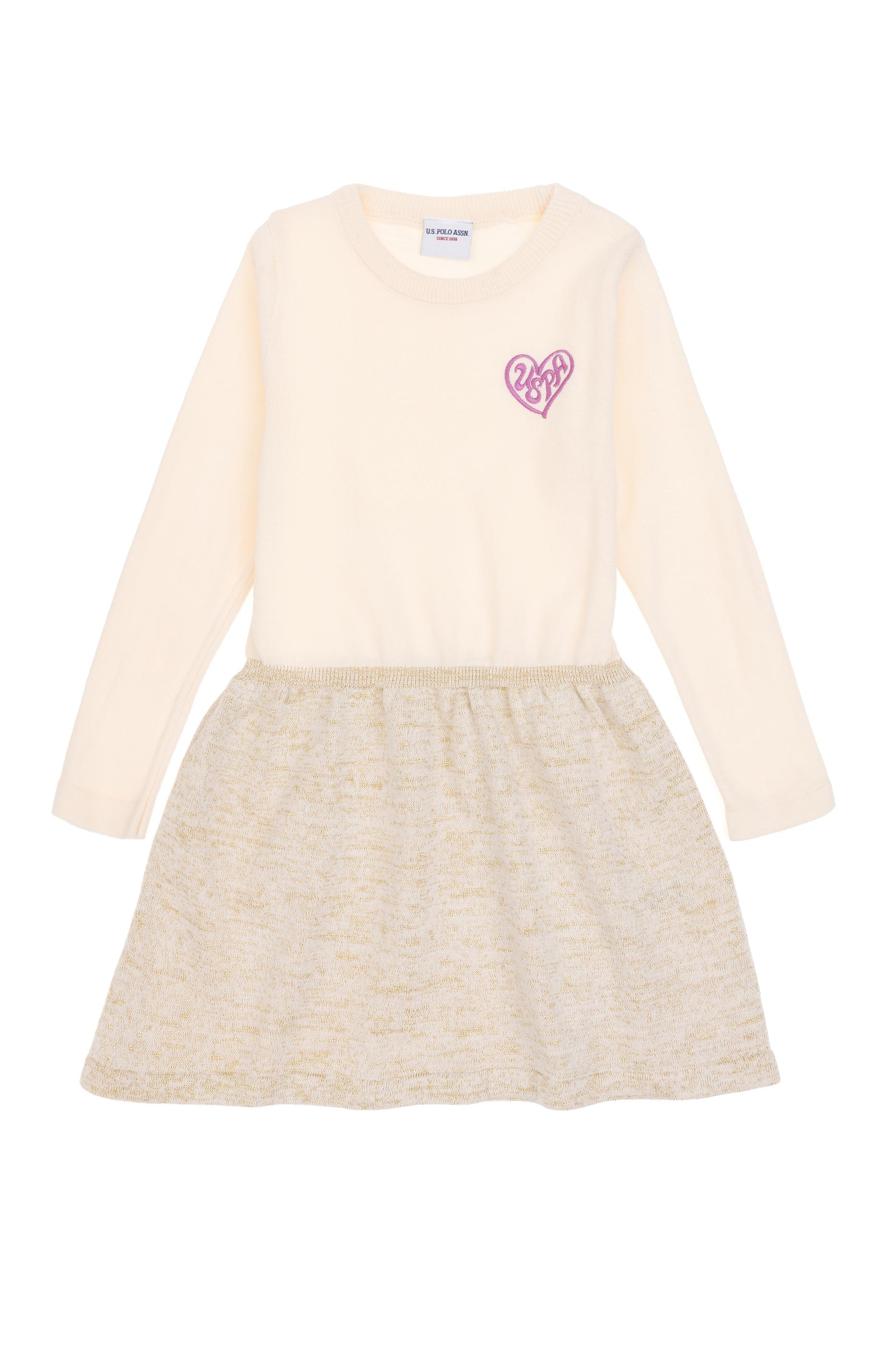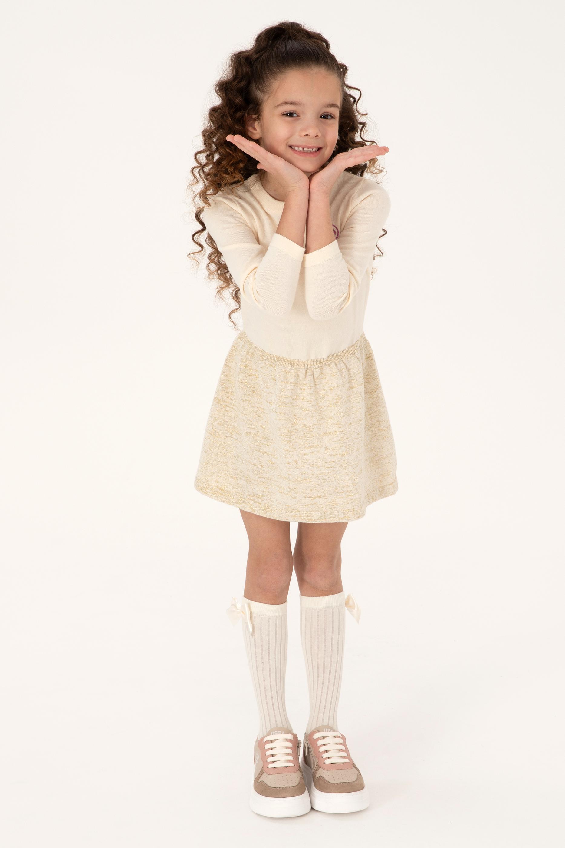 Kız Çocuk Krem Melanj Triko Elbise