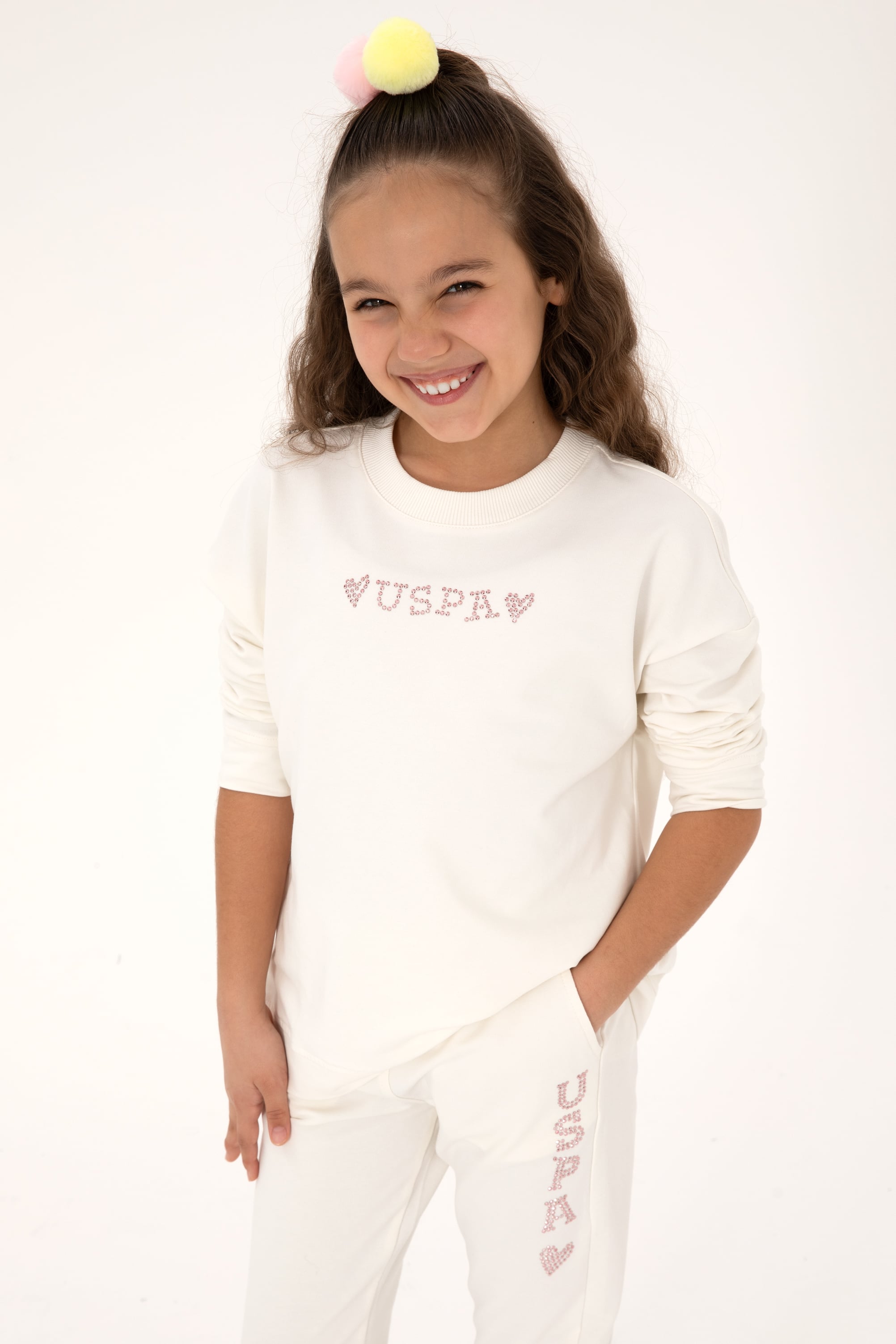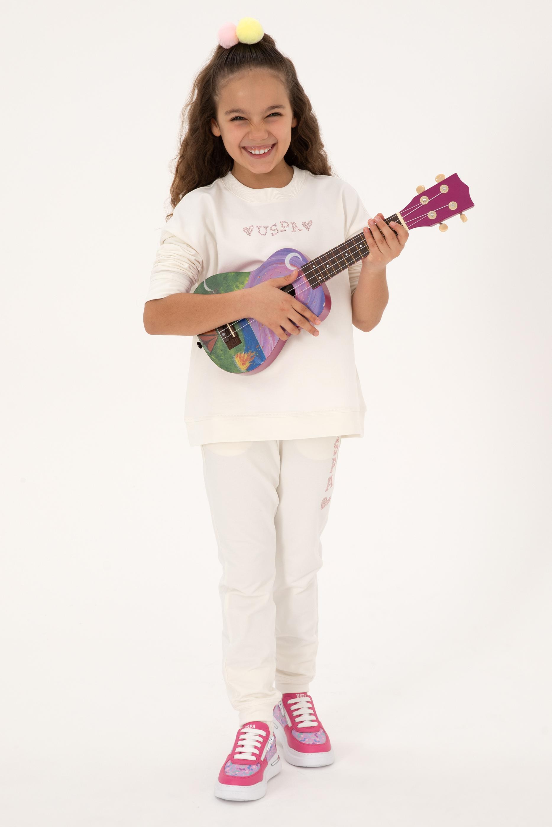 - Kız Çocuk Krem Bisiklet Yaka Sweatshirt
