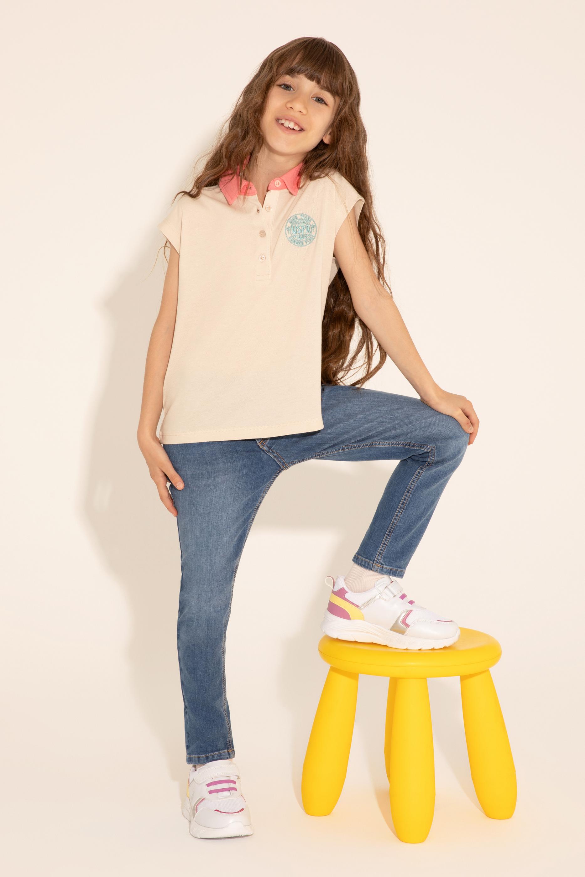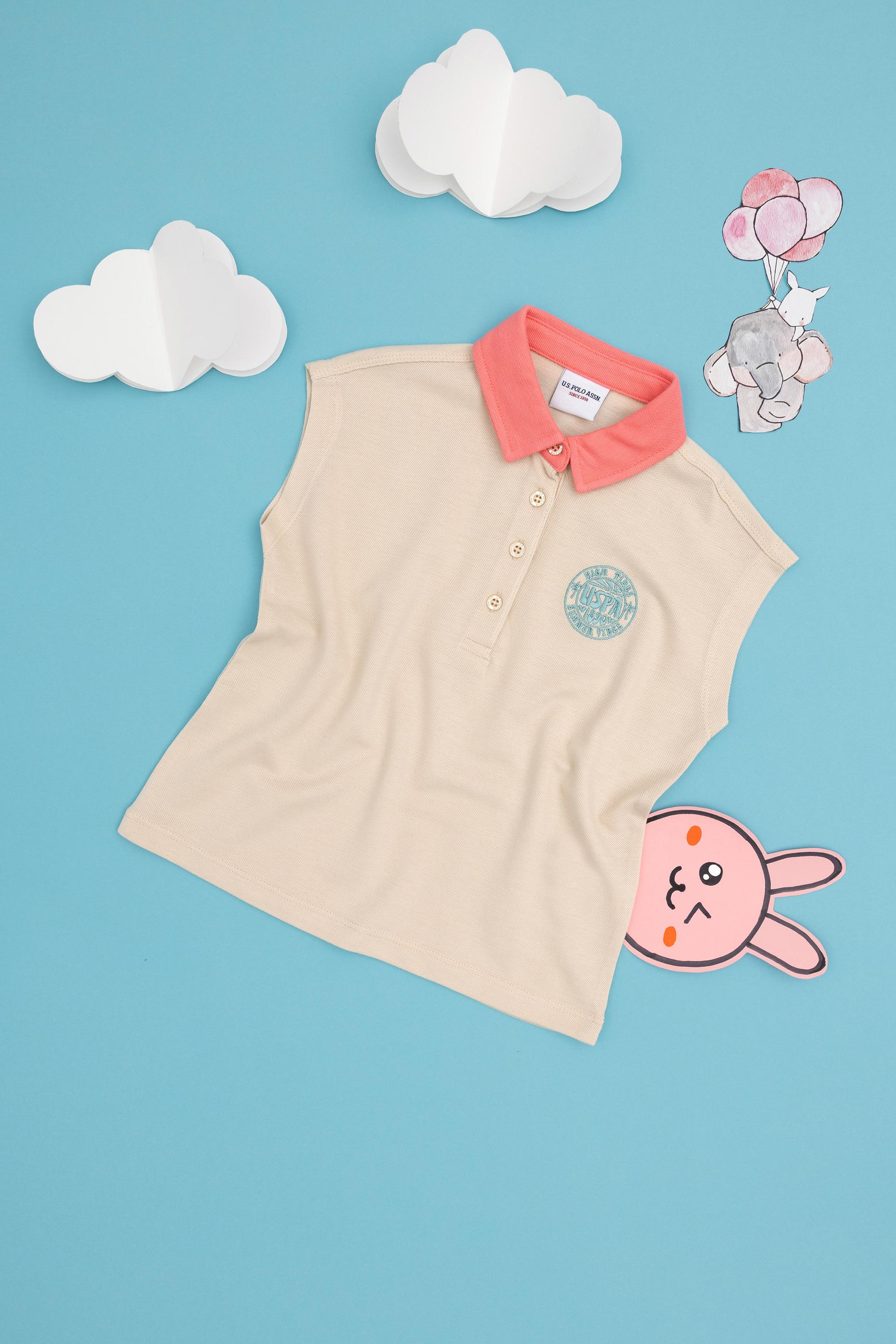 - Kız Çocuk Krem Polo Yaka Tişört