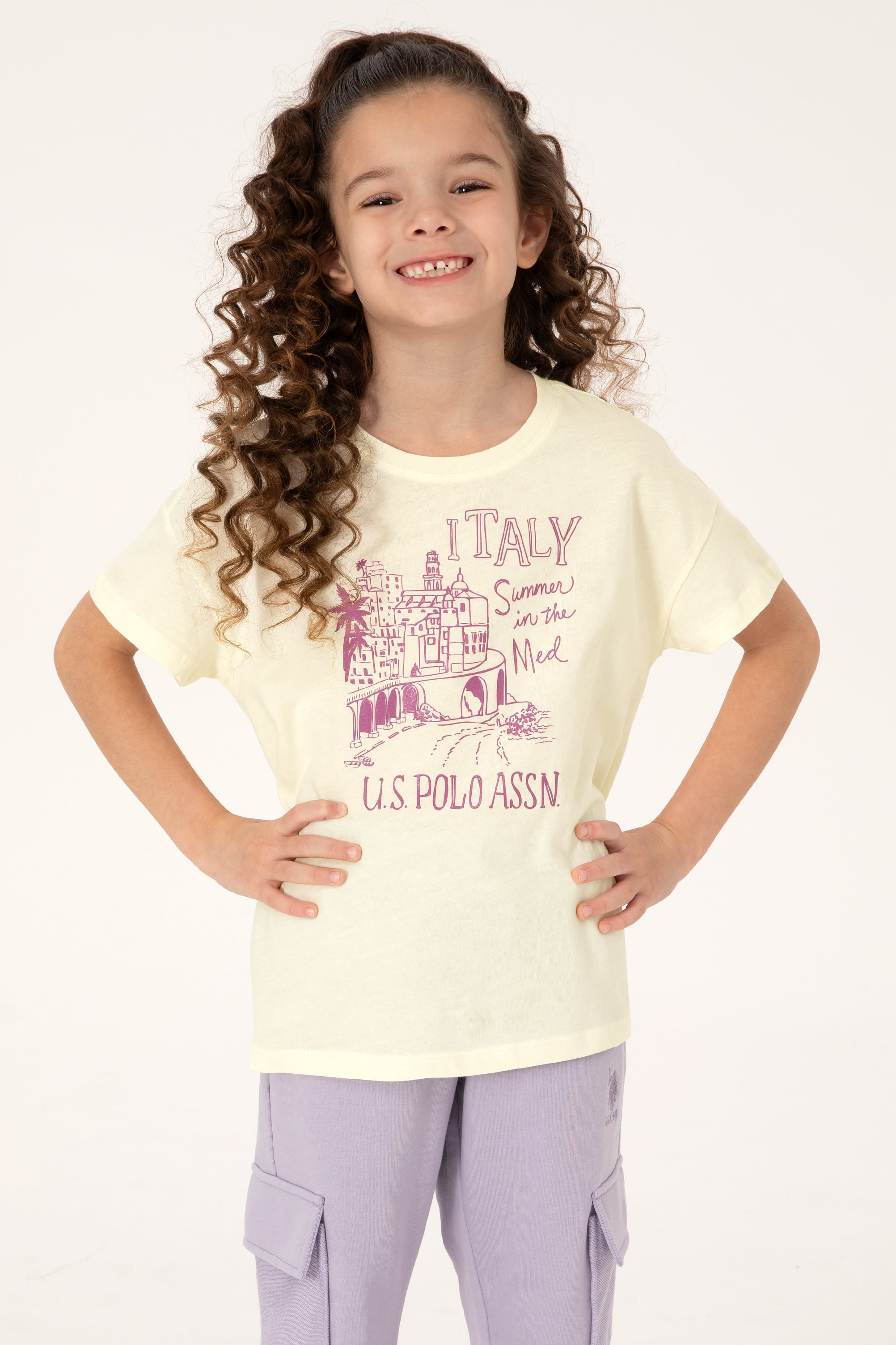 - Kız Çocuk Krem Bisiklet Yaka Baskılı Pamuk Tişört