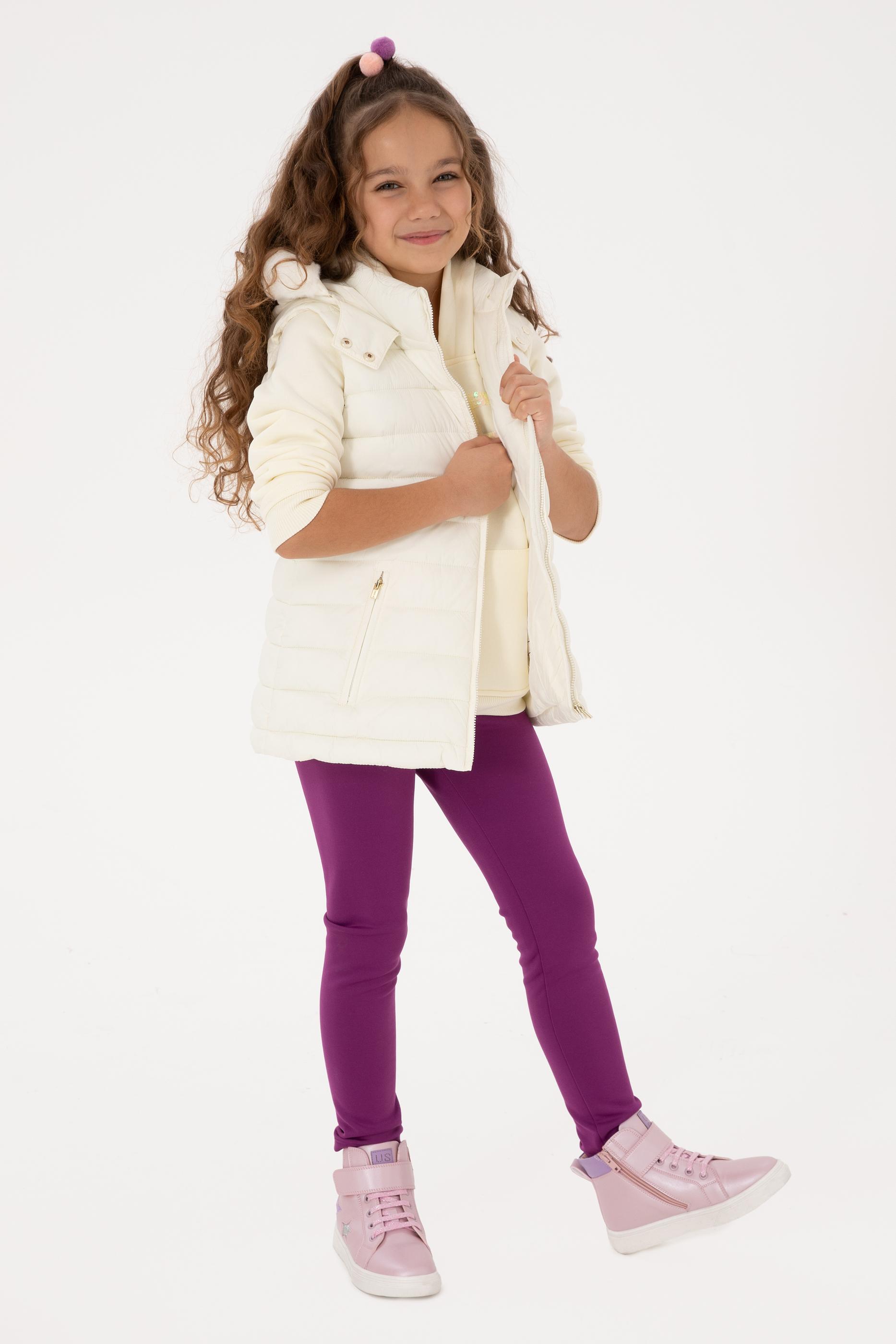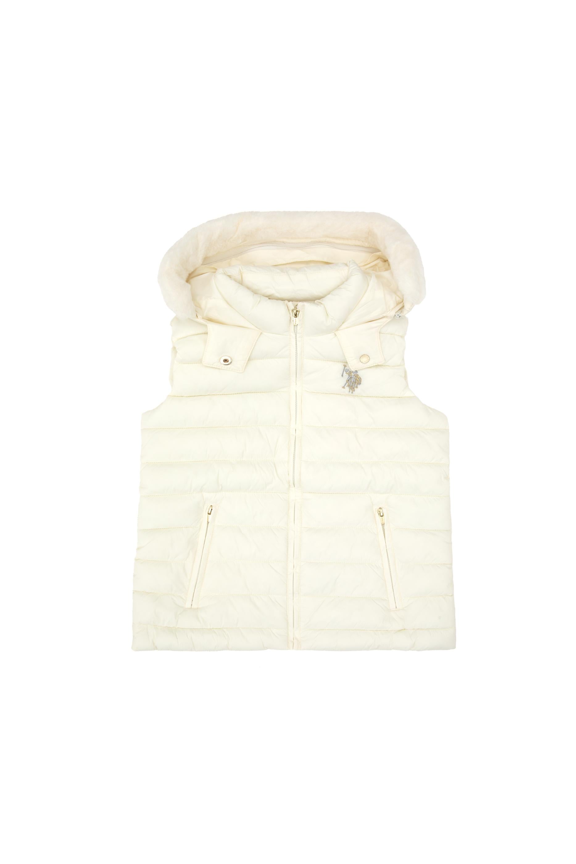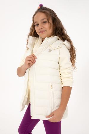 Kız Çocuk Krem Kapitone Kapüşonlu Şişme Yelek