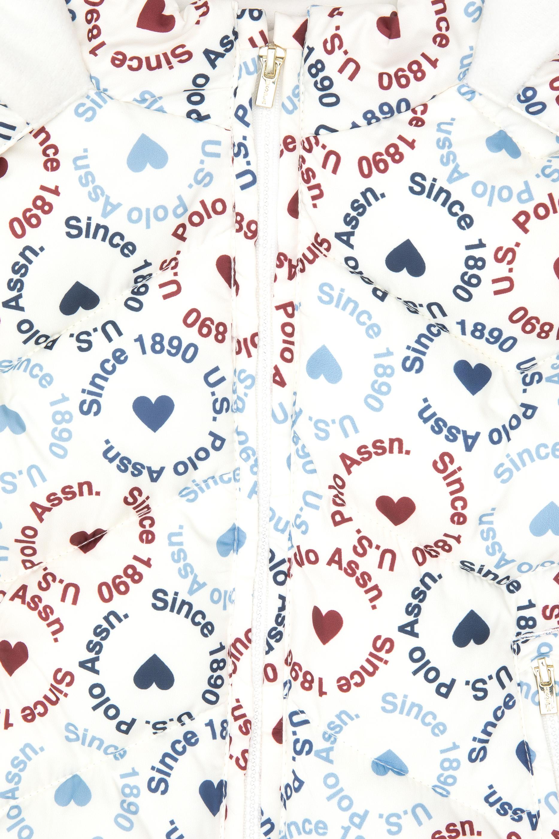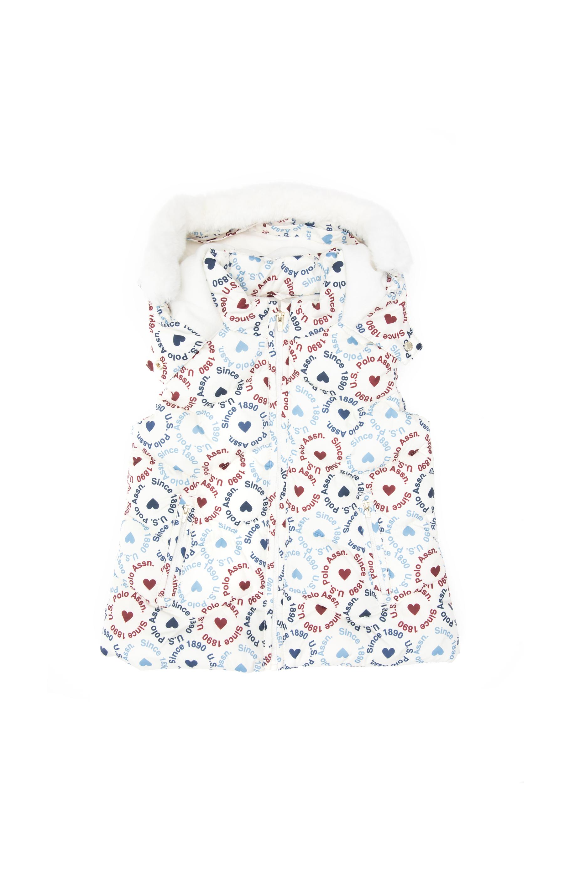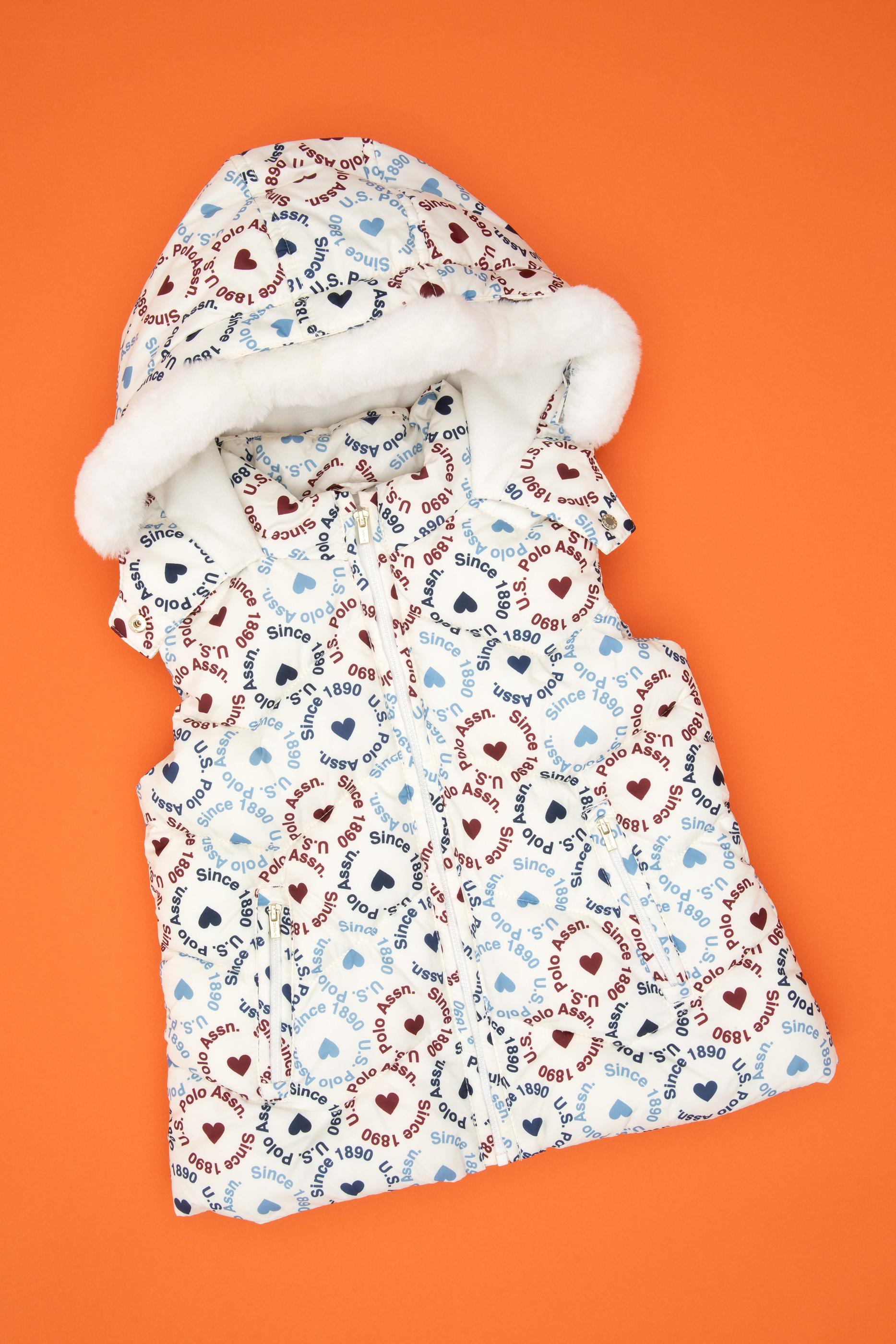 Kız Çocuk Krem Kalp Desenli Kapüşonlu Şişme Yelek