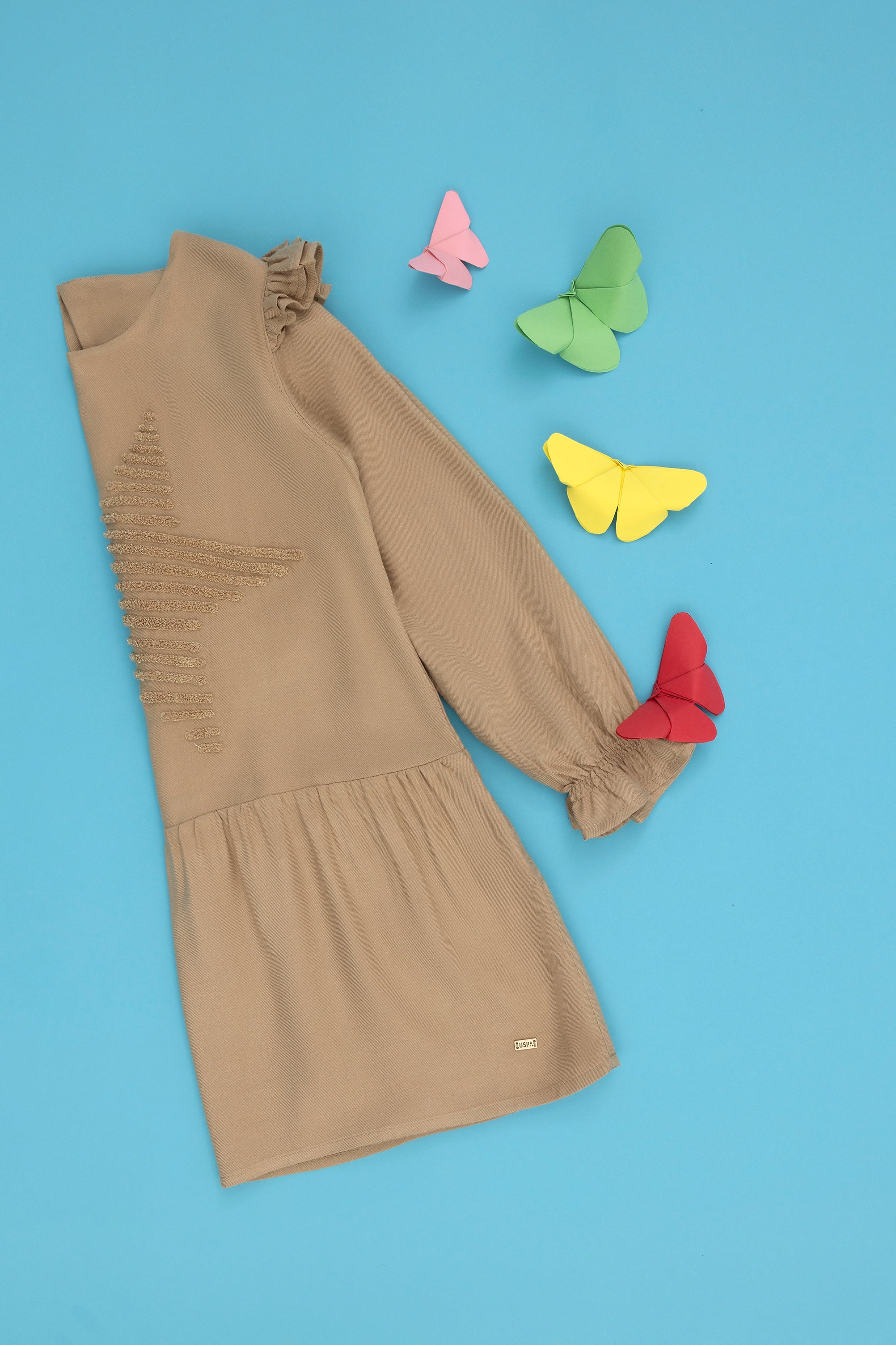- Kız Çocuk Kum Uzun Kol Dokuma Elbise