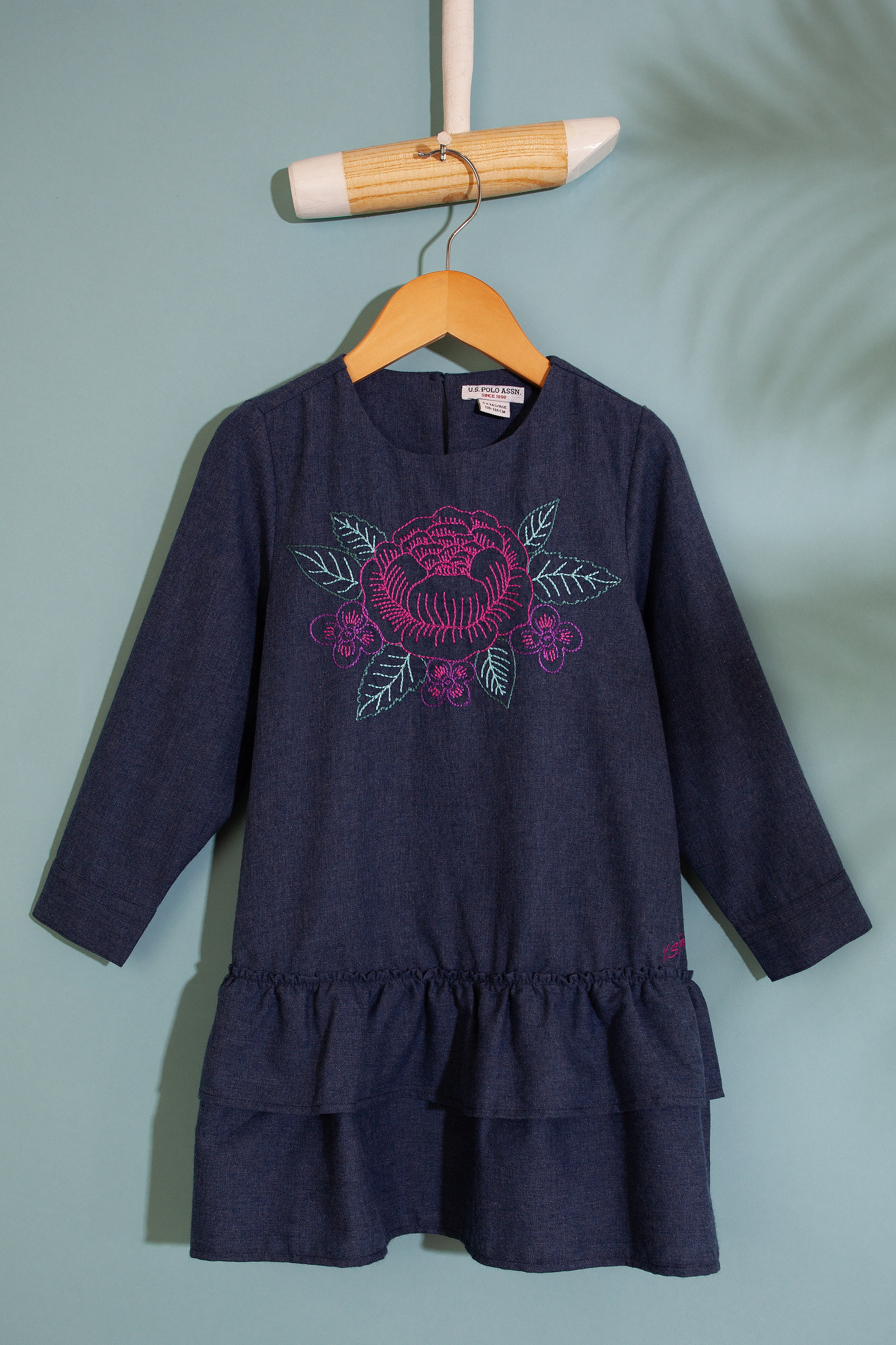 Nakış Desenli Tasarımıyla Dikkat Çeken Kız Çocuk Elbise