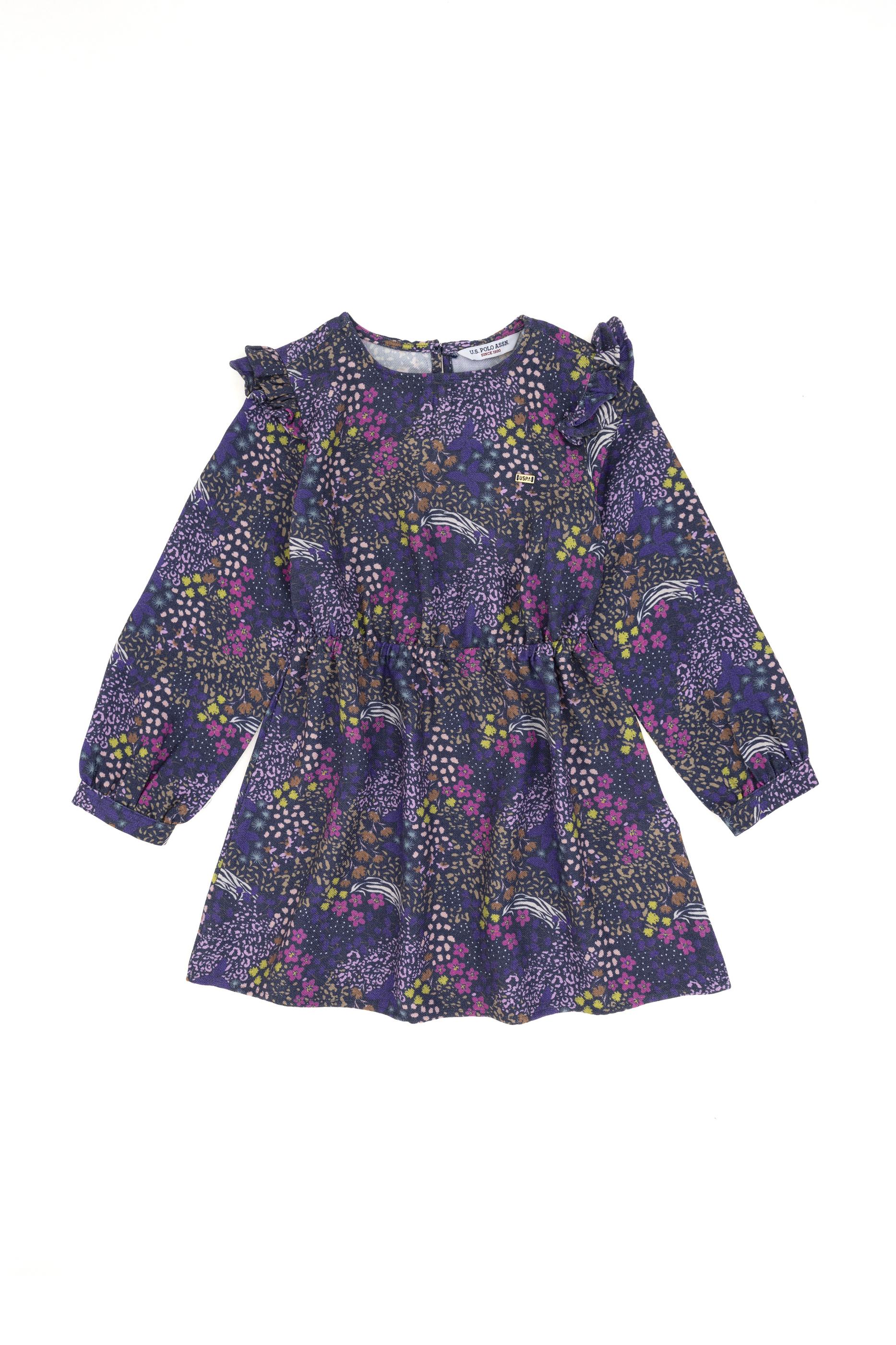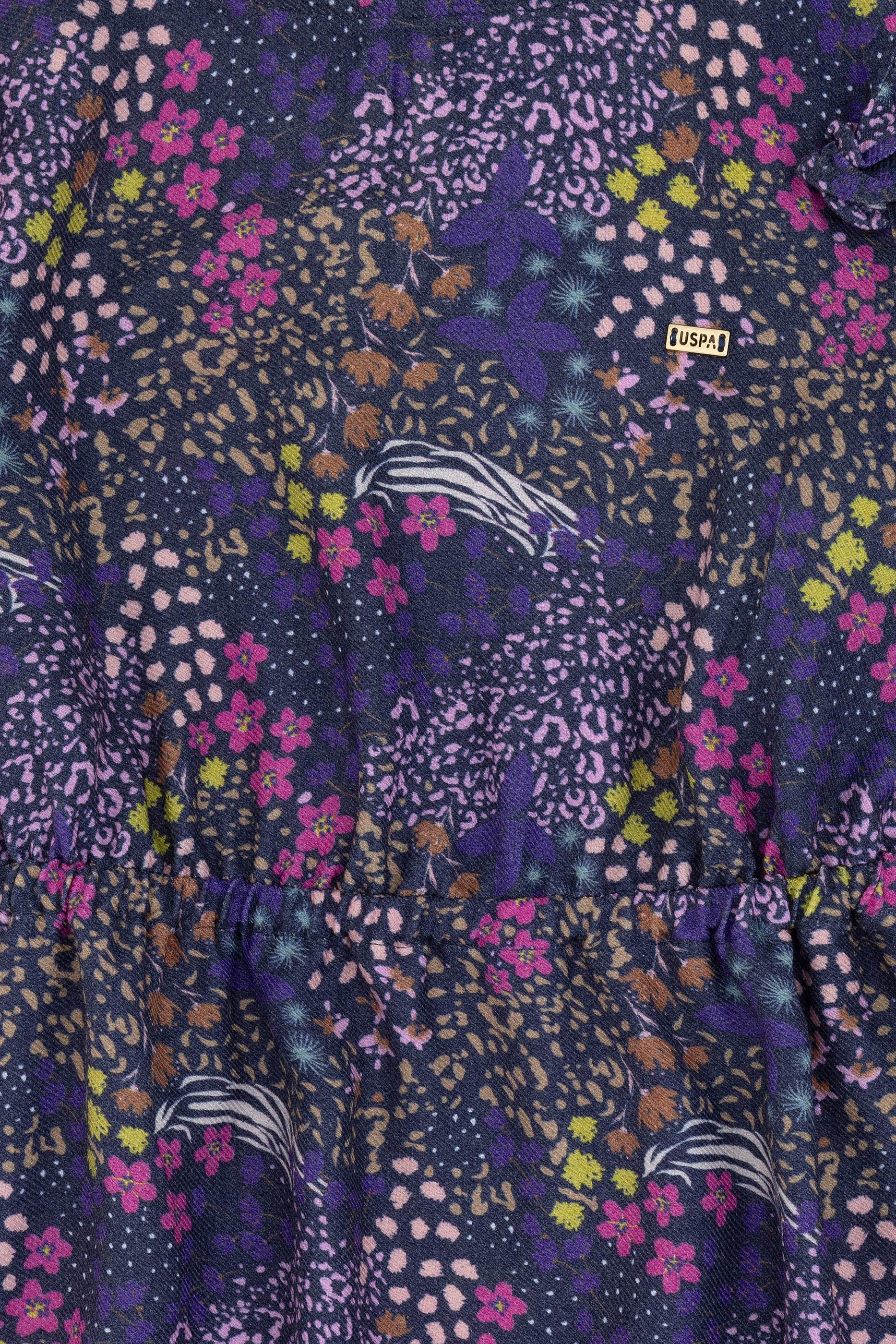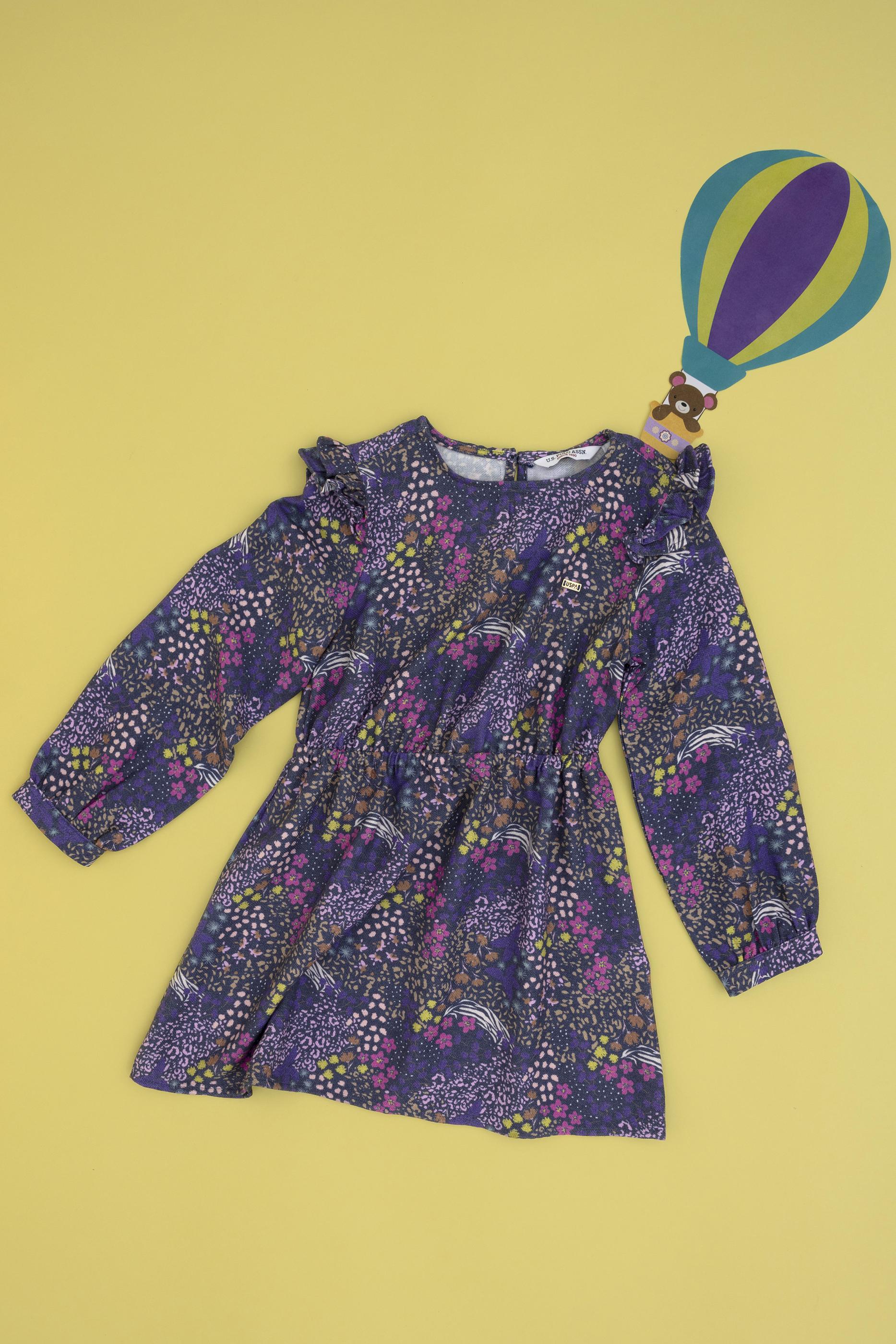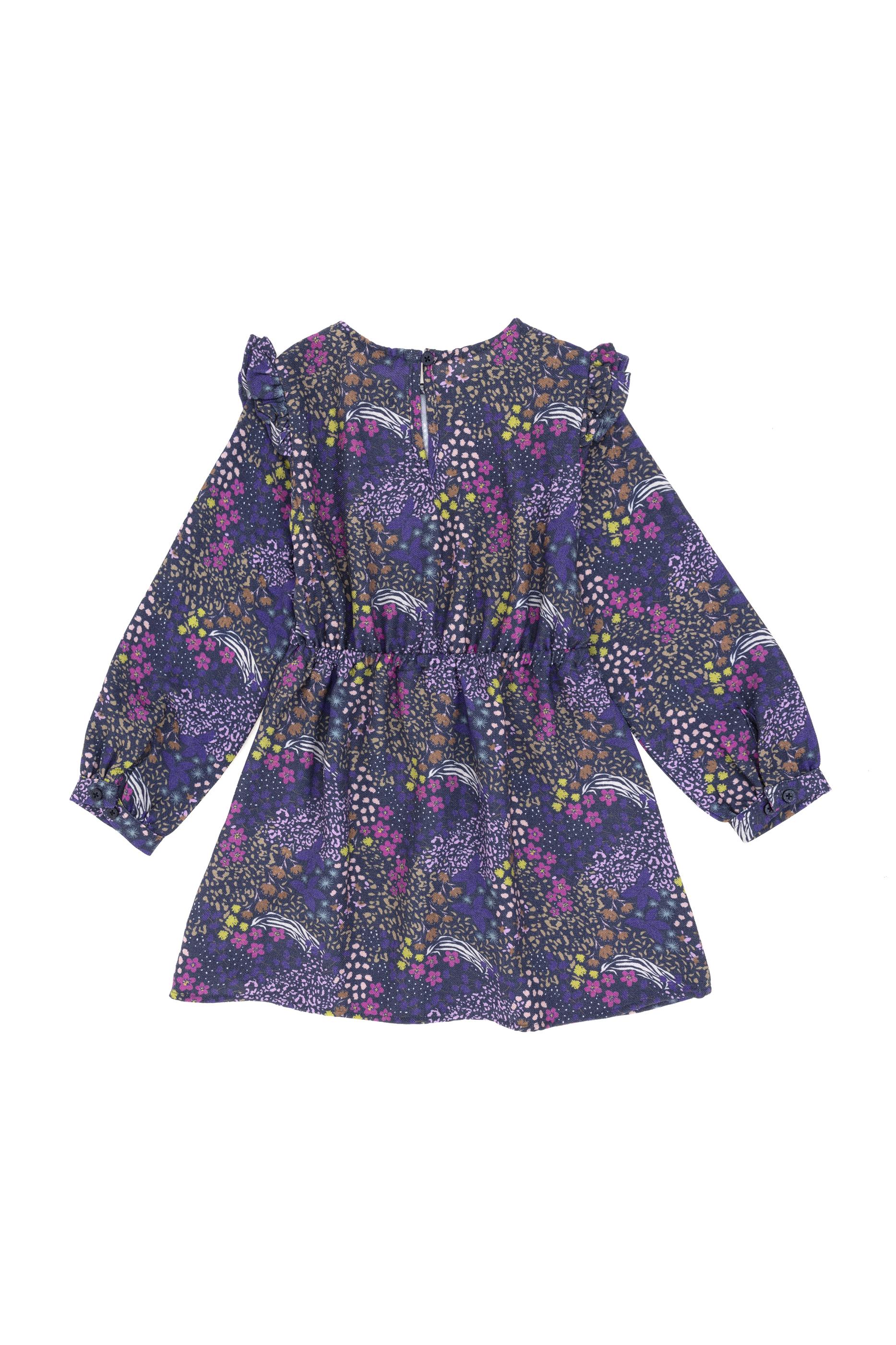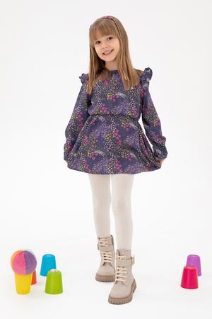 - Kız Çocuk Lacivert Çiçek Desenli Fırfırlı Dokuma Elbise