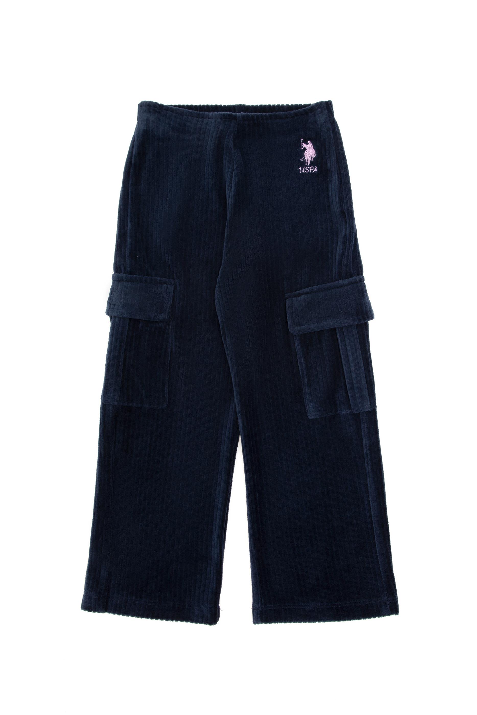 - Kız Çocuk Lacivert Kadife Fitilli Cep Detaylı Eşofman Altı