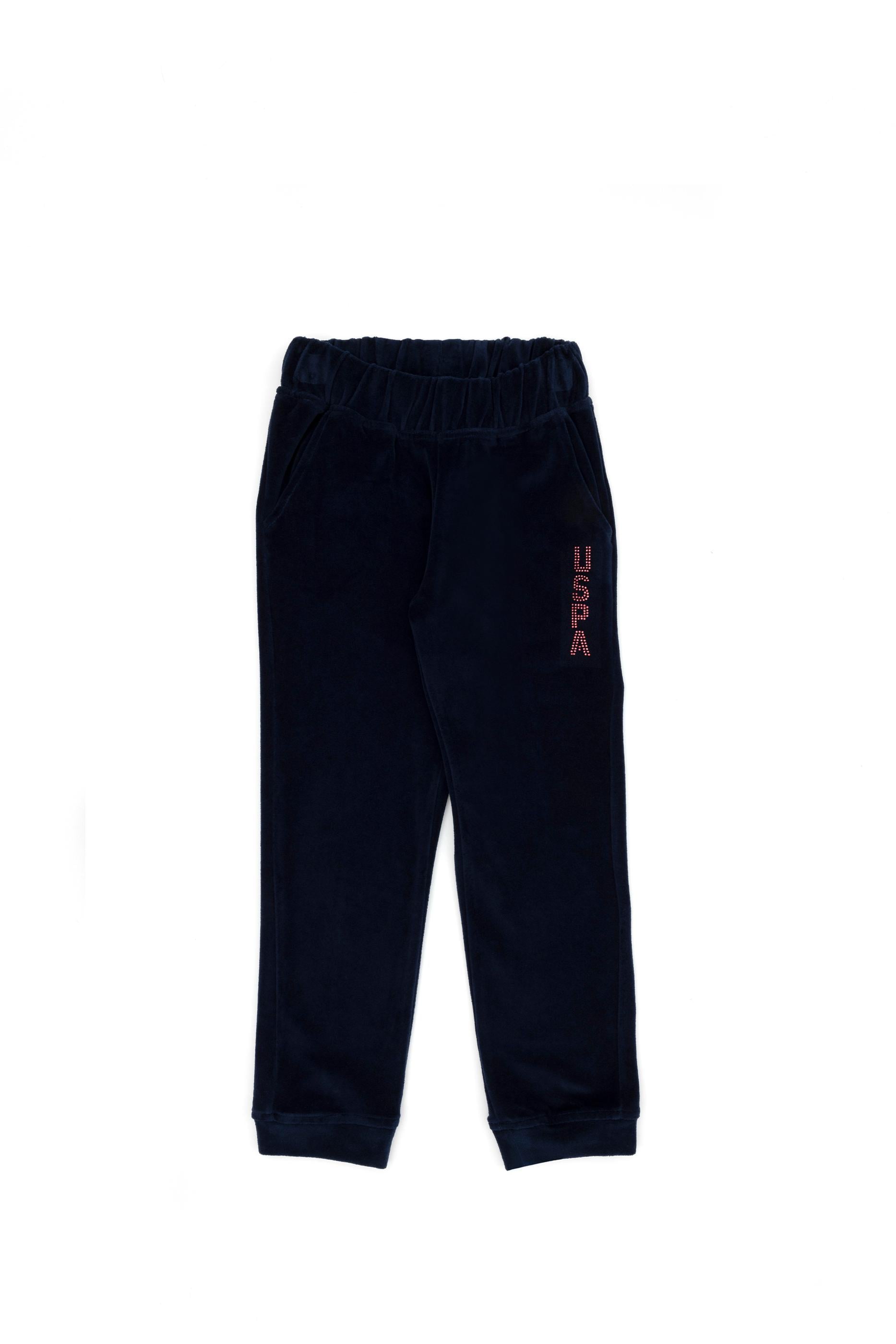 - Kız Çocuk Lacivert Taş Detaylı Kadife Eşofman Altı