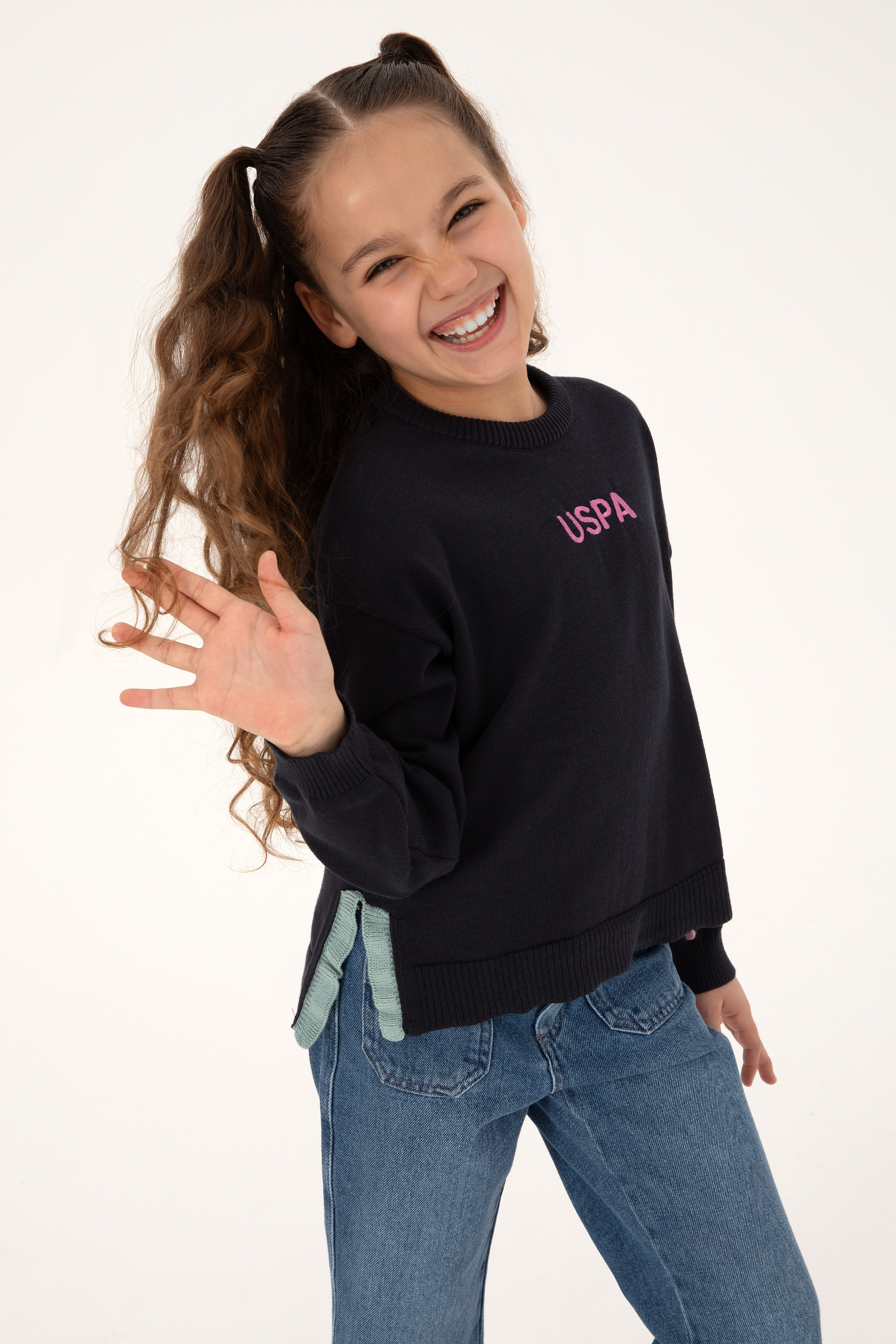 Kız Çocuk Bisiklet Yaka Lacivert Kazak
