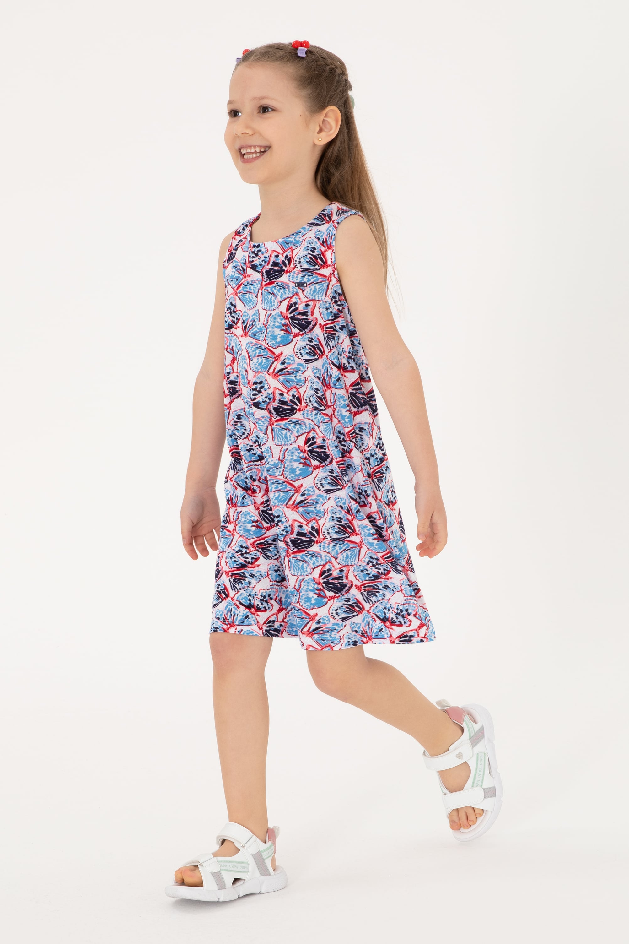 Kız Çocuk Lacivert Kolsuz Kelebek Desenli Örme Elbise