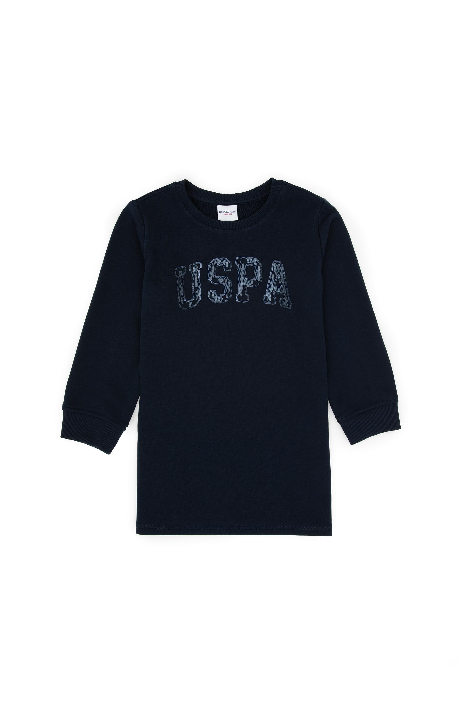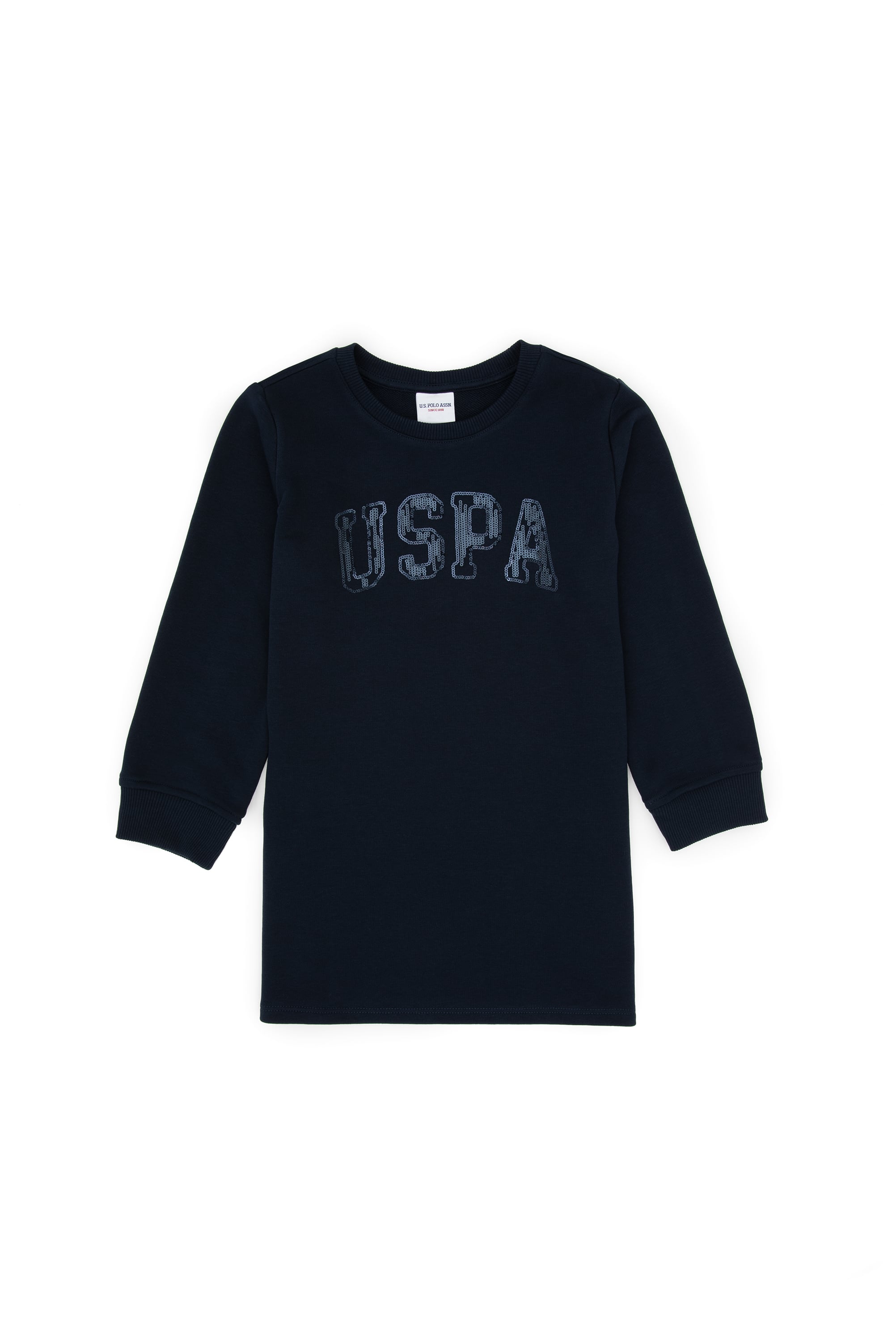 - Kız Çocuk Lacivert Payet İşlemeli Sweat Örme Elbise