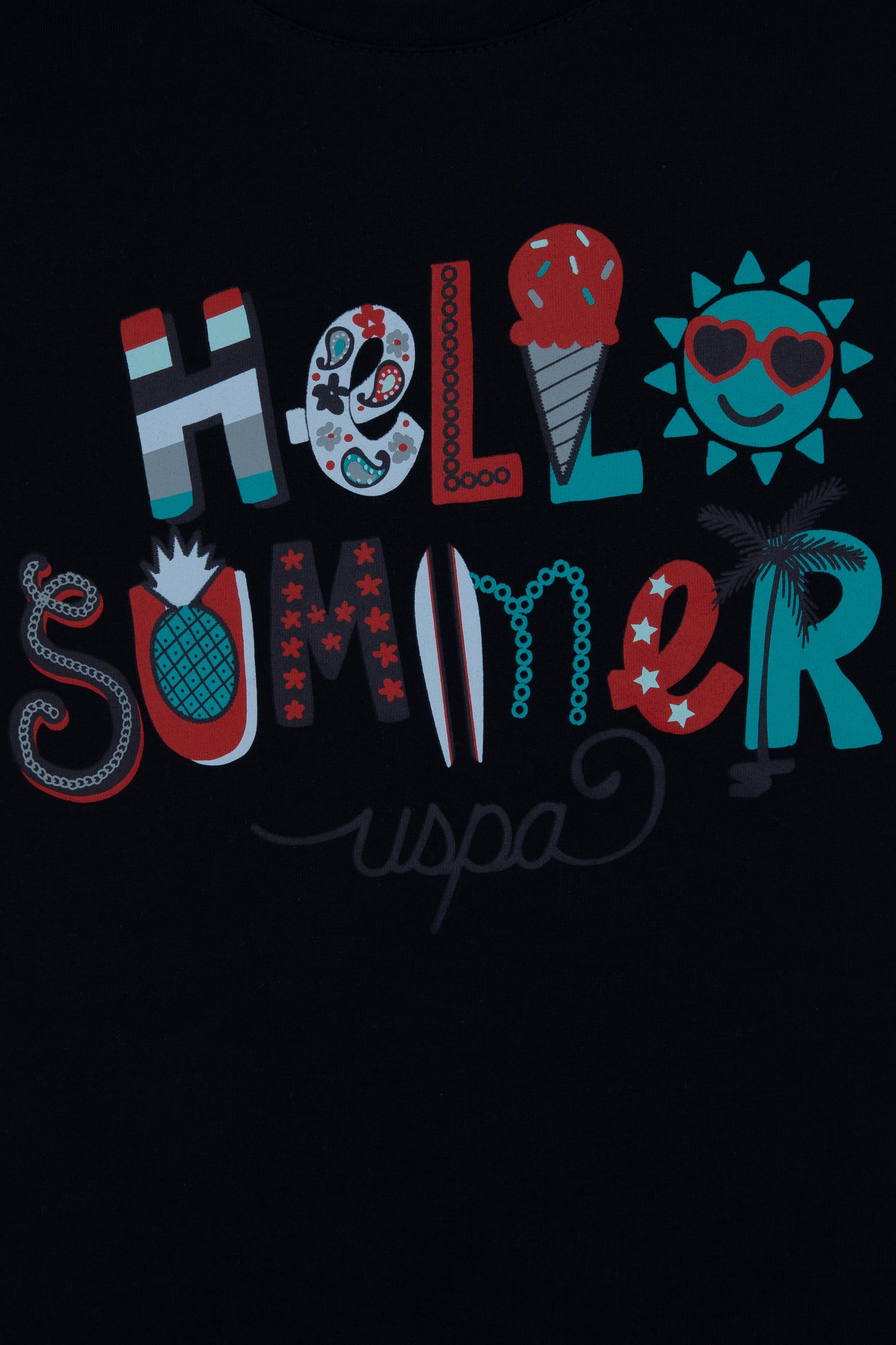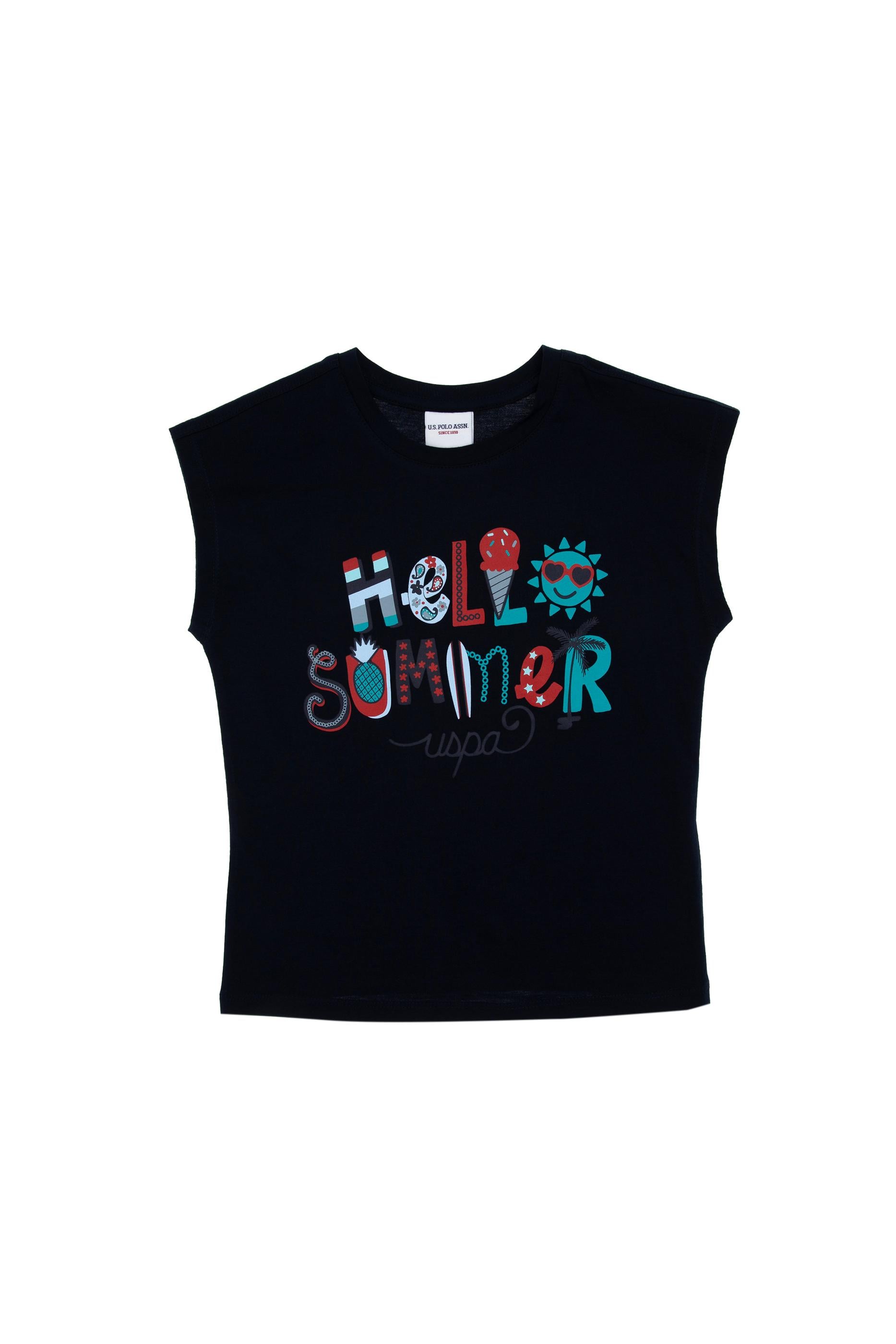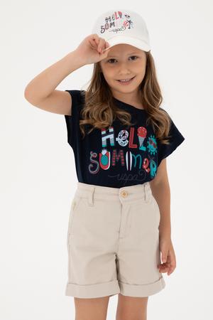 - Kız Çocuk Lacivert Bisiklet Yaka Baskılı Pamuk Tişört