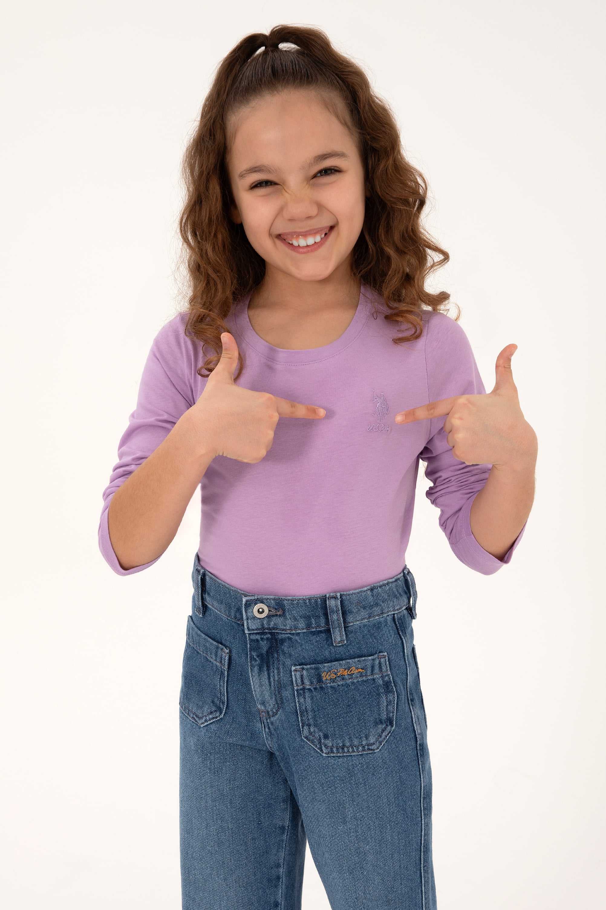 Kız Çocuk Lila Bisiklet Yaka Basic Sweatshirt