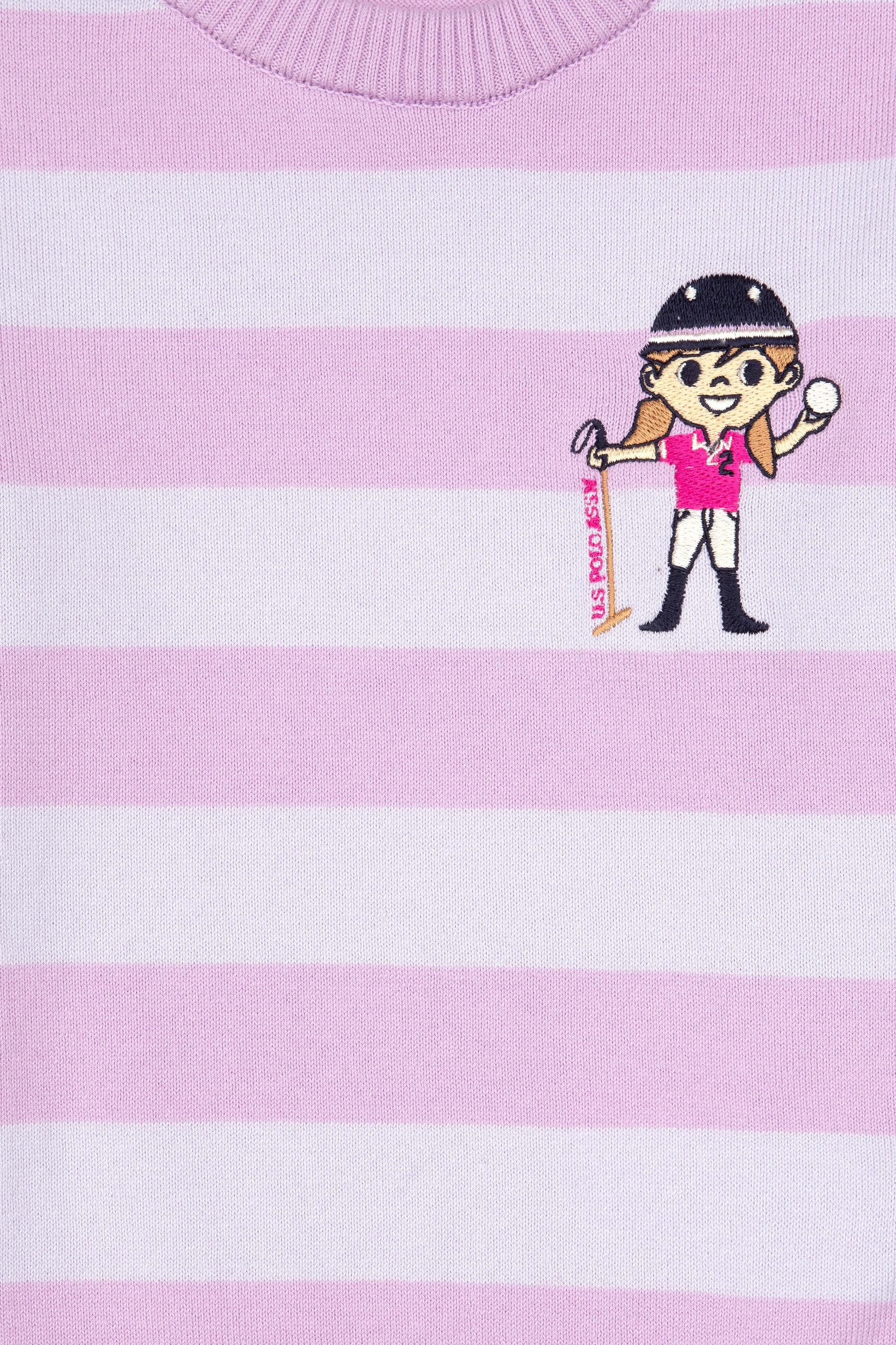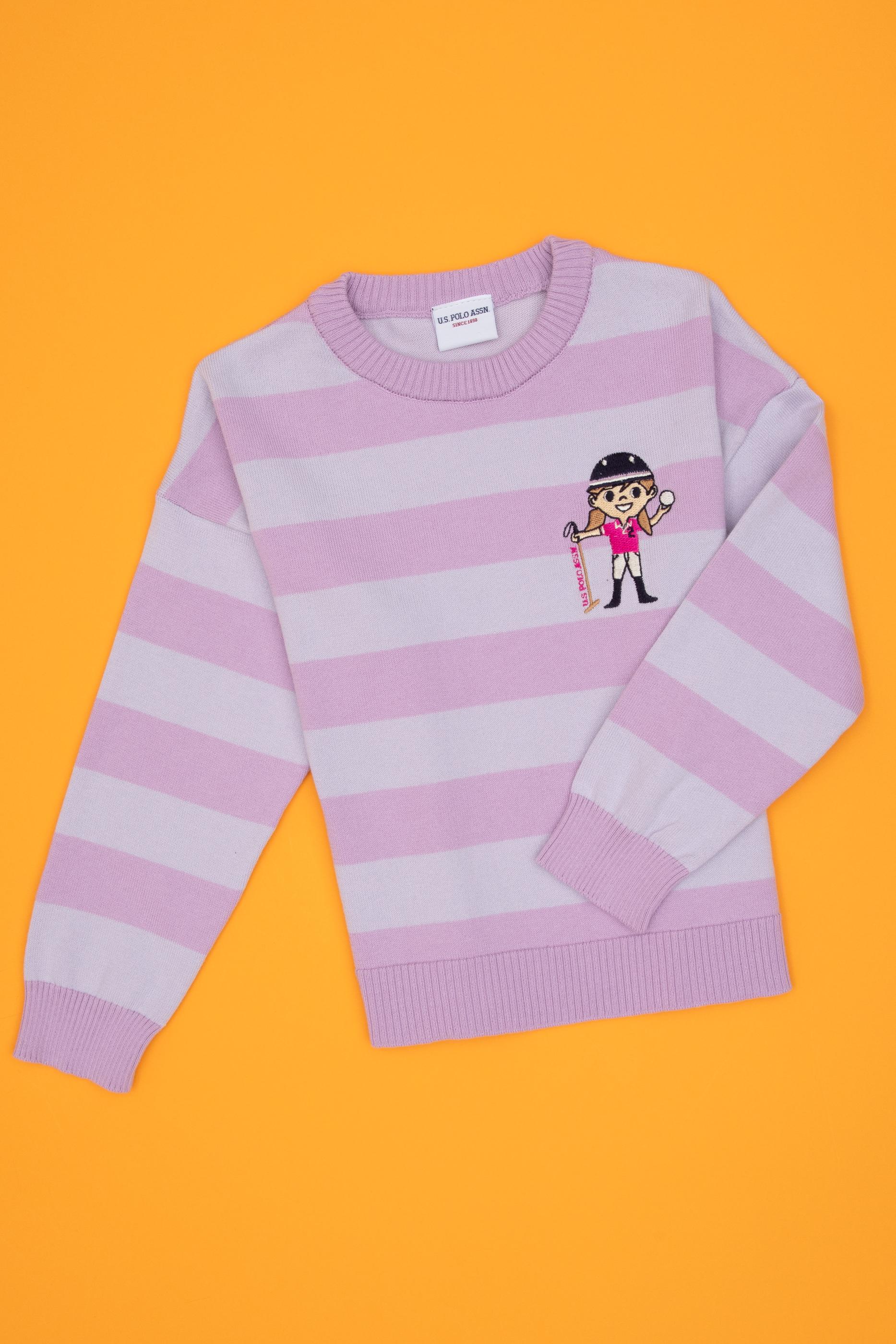 Kız Çocuk Lila Çizgili Bisiklet Yaka Kazak