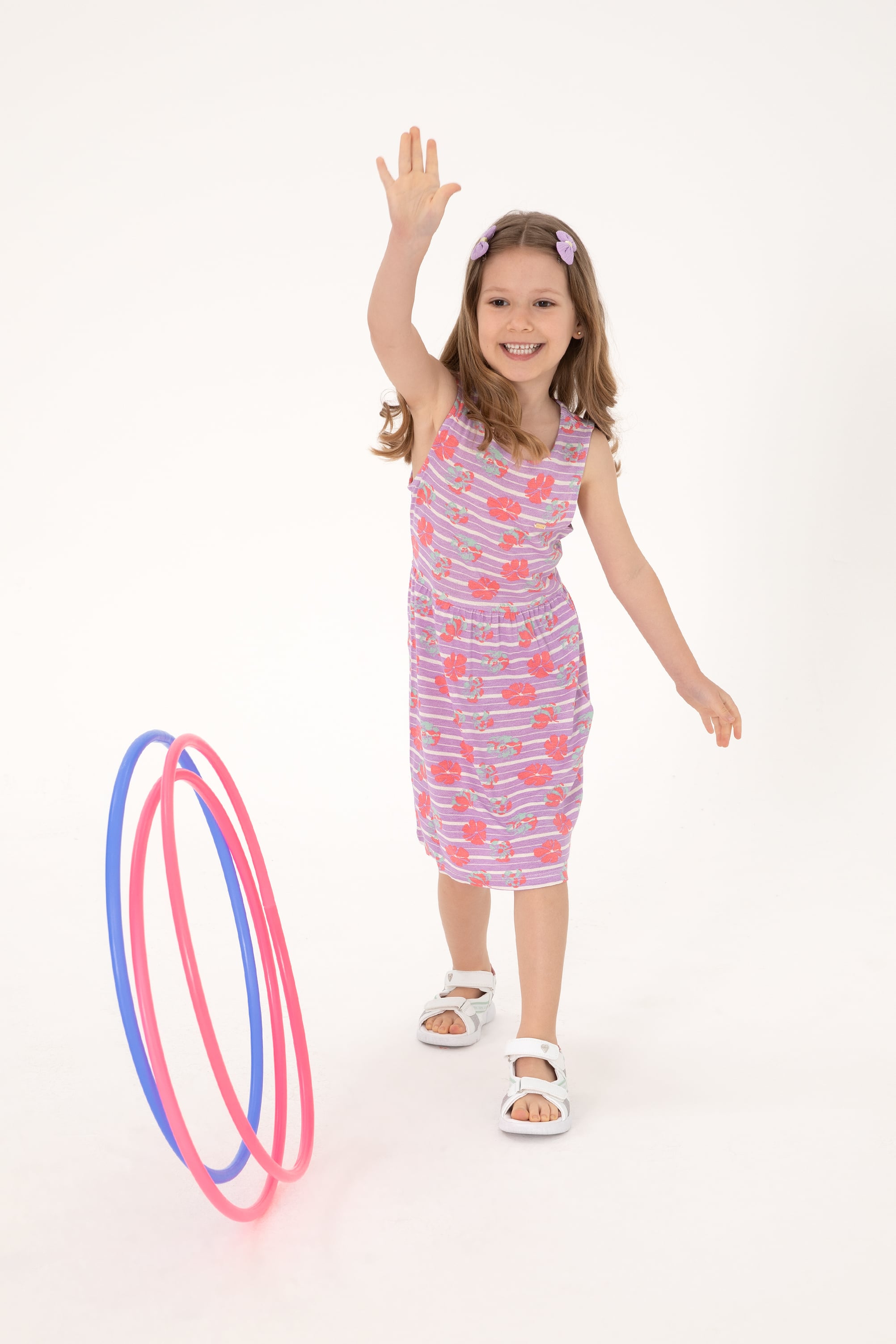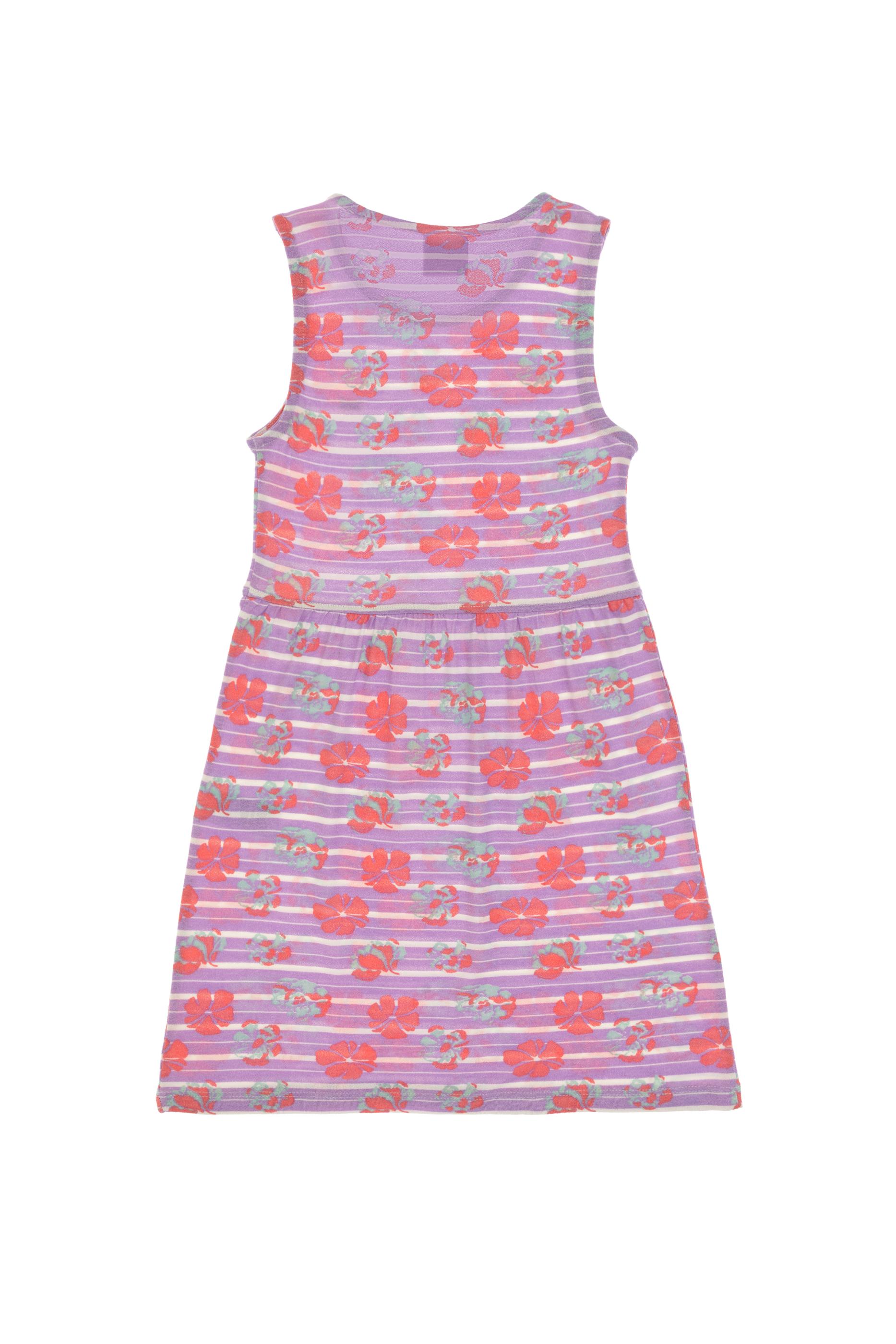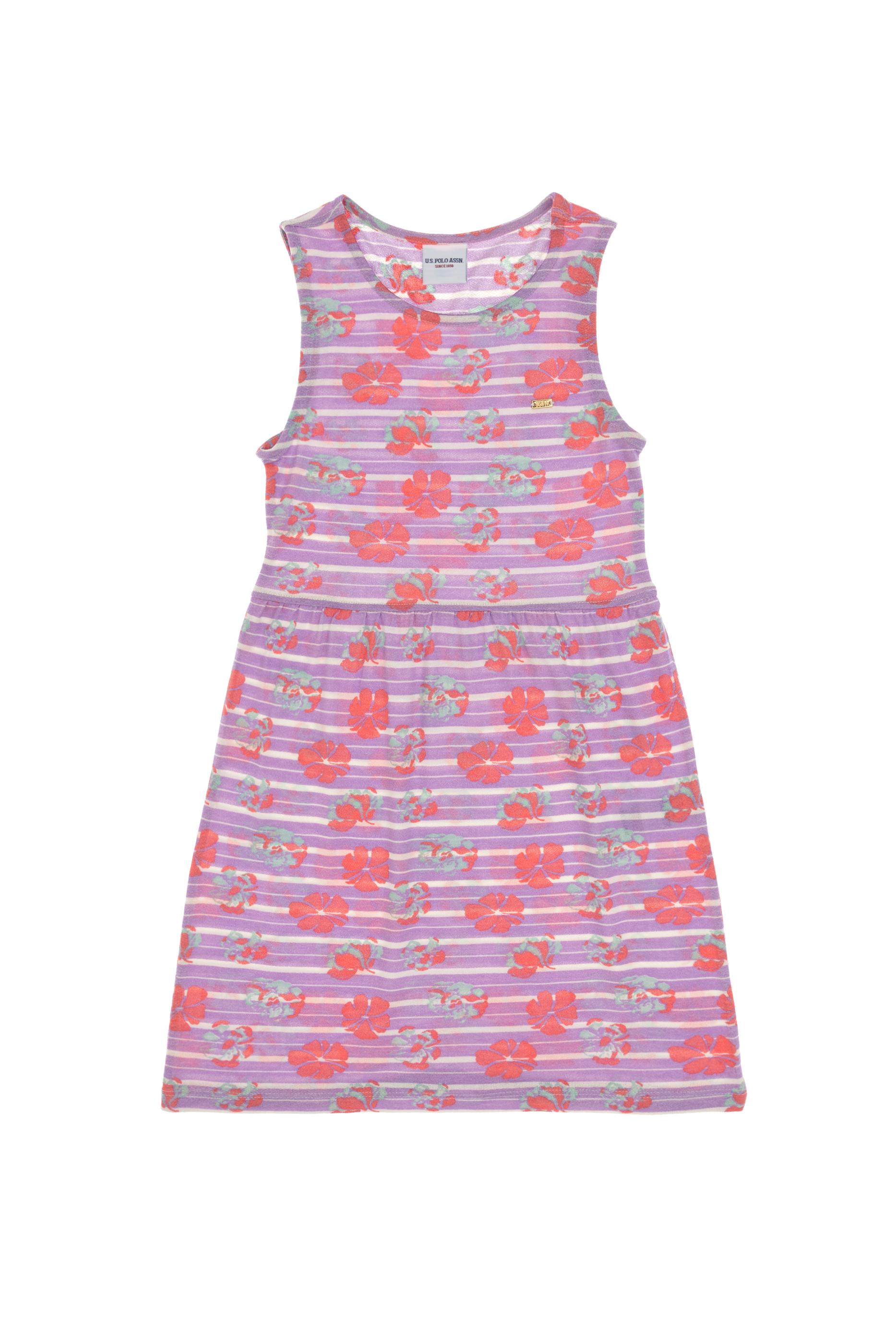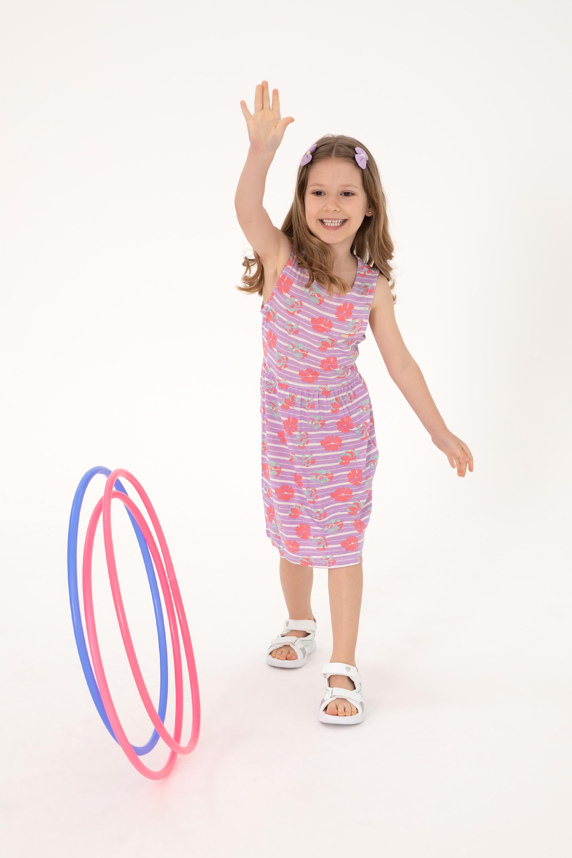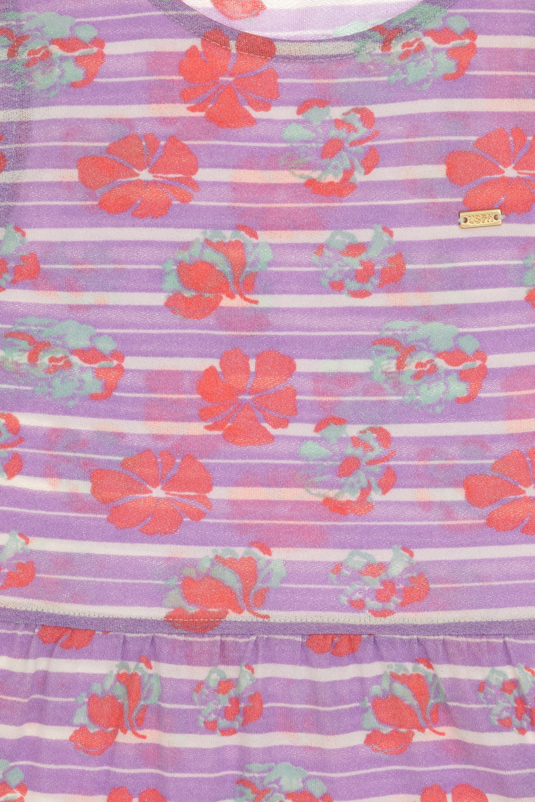 - Kız Çocuk Lila Bisiklet Yaka A-Form Desenli Örme Elbise