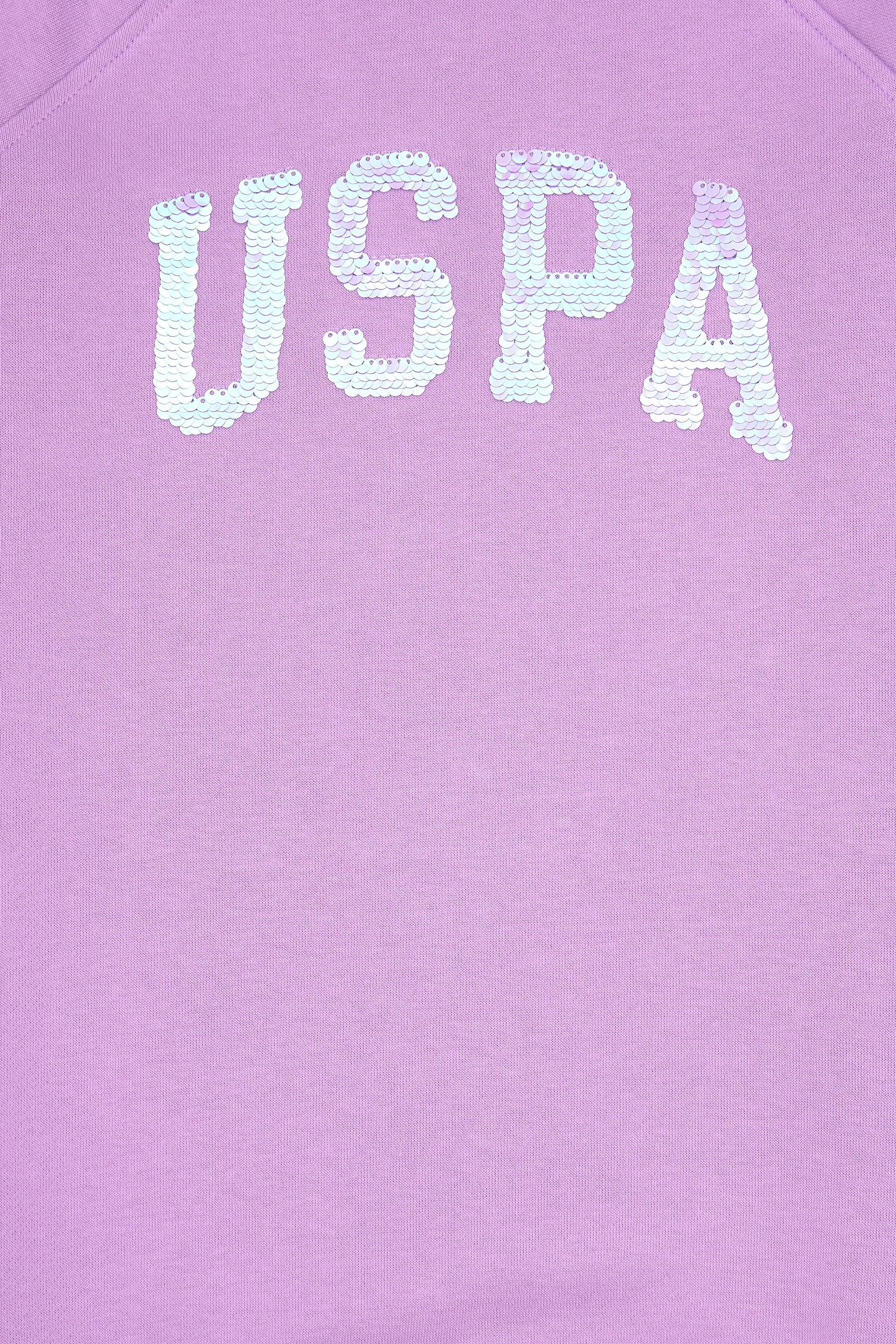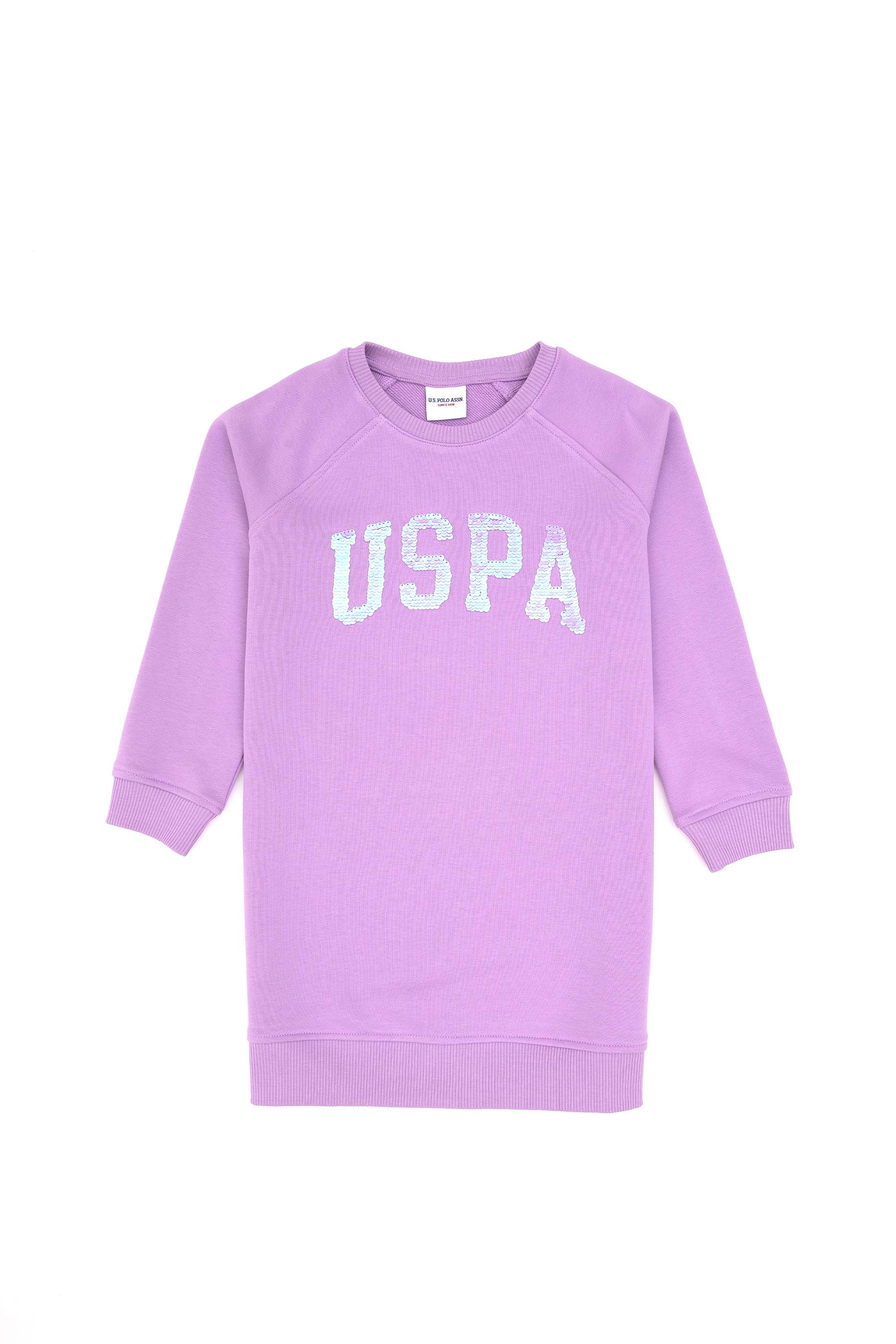 - Kız Çocuk Lila Payet Detaylı Bisiklet Yaka Sweat Örme Elbise
