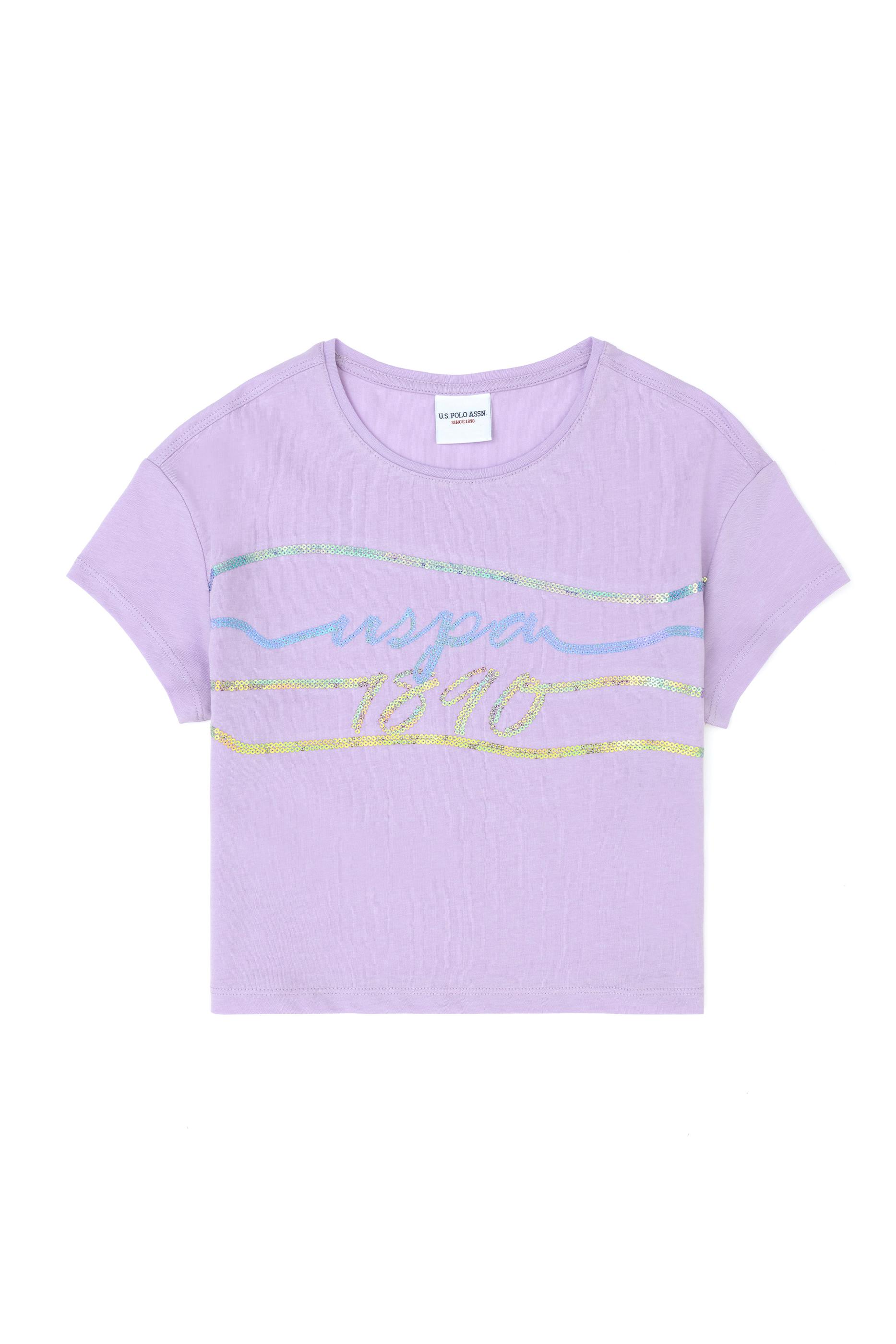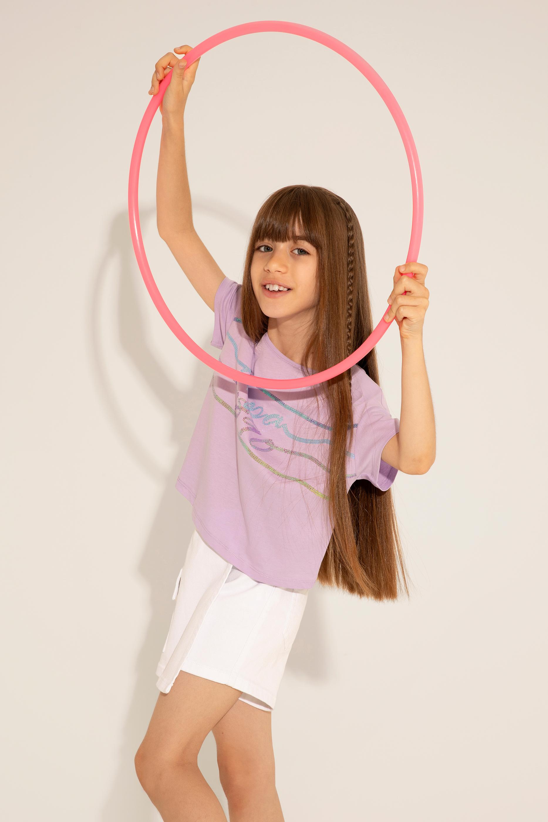- Kız Çocuk Lila Bisiklet Yaka Tişört