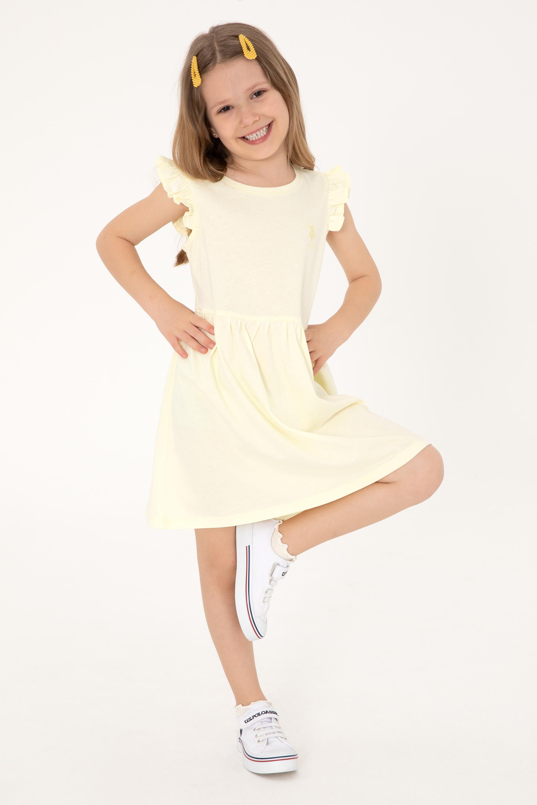 - Kız Çocuk Limon Fırfır Kollu Bisiklet Yaka Pamuk Örme Elbise