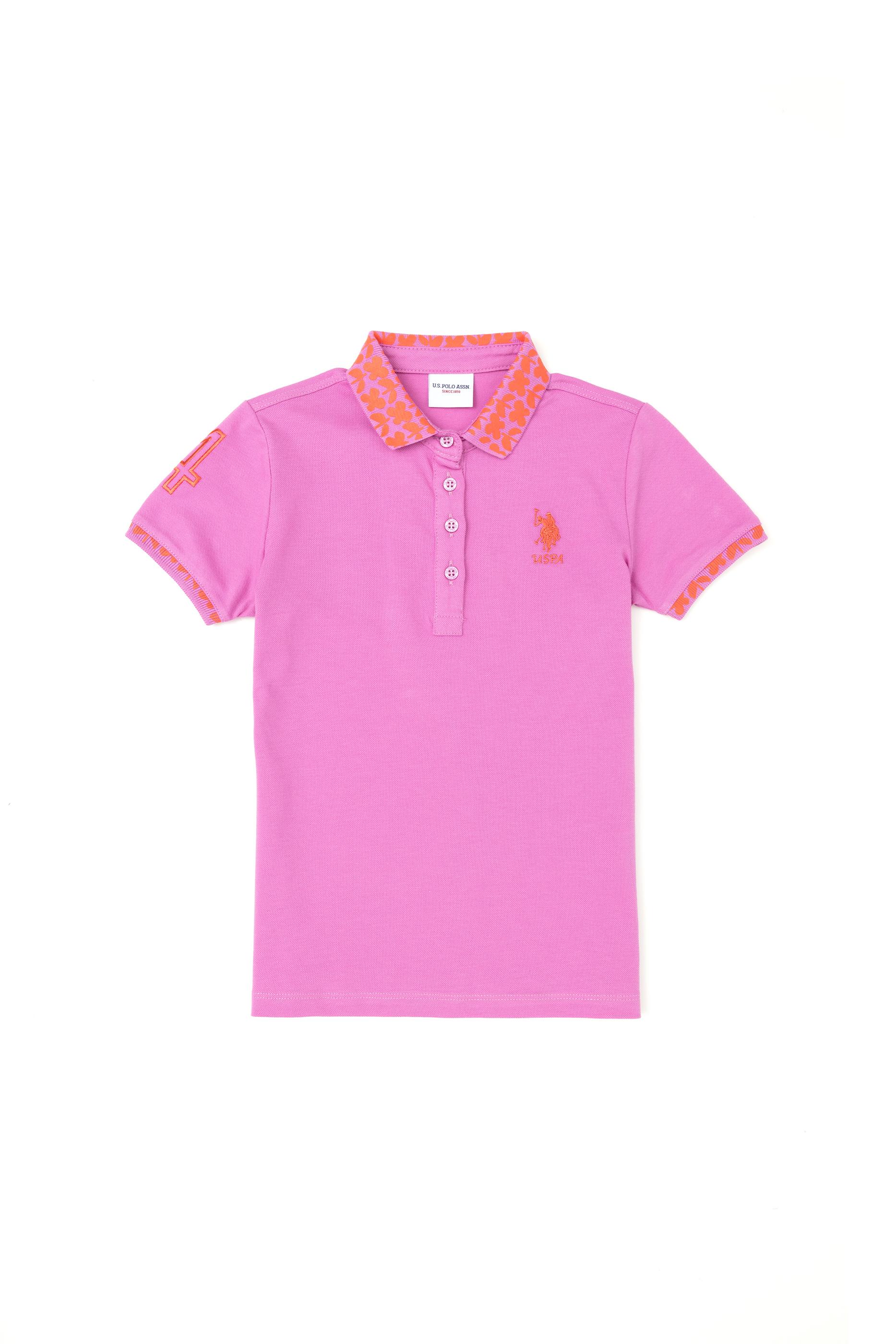 - Kız Çocuk Menekşe Polo Yaka Basic Tişört