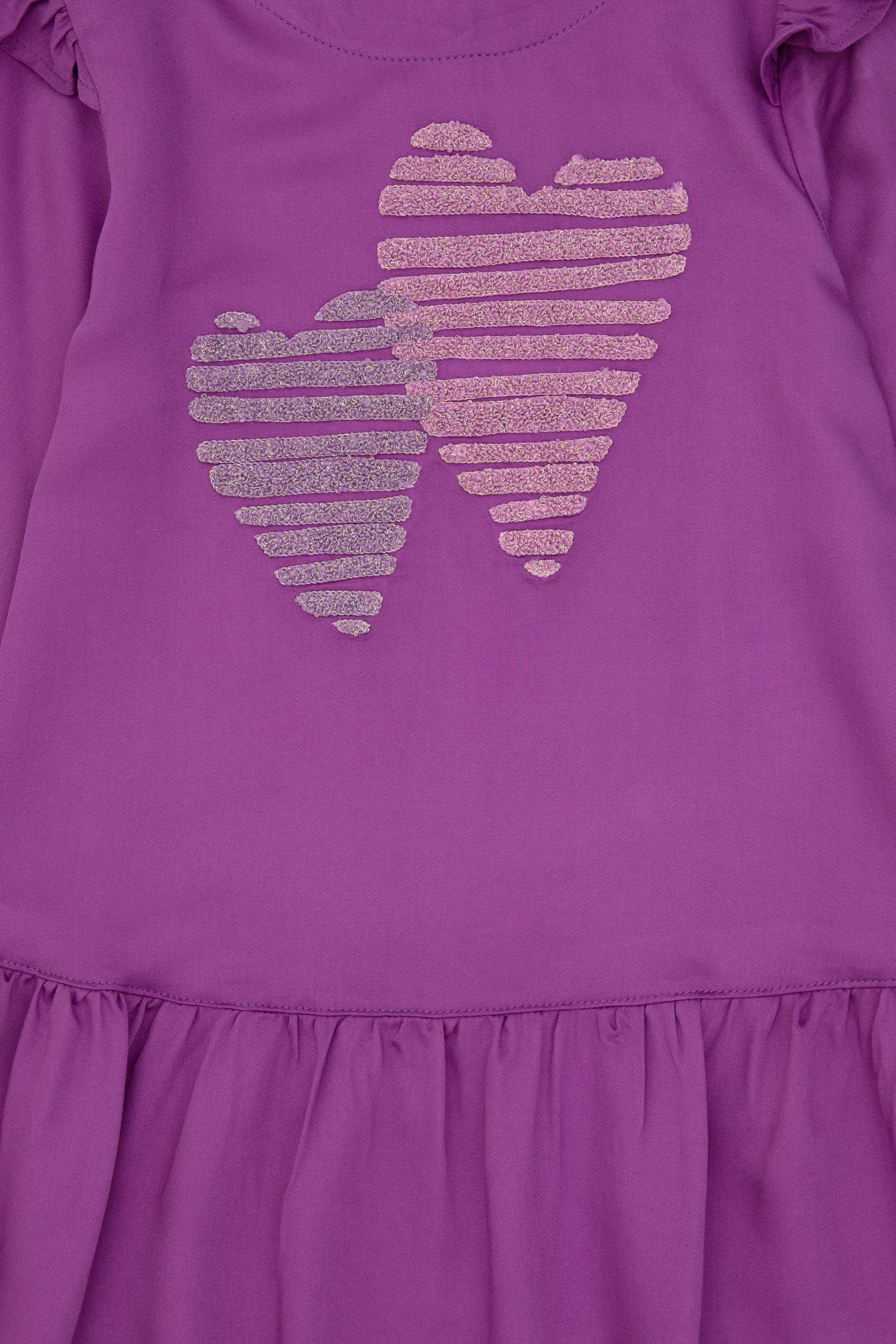 "name": "Kız Çocuk Menekşe Kalp İşlemeli Omuz Detaylı Dokuma Elbise",