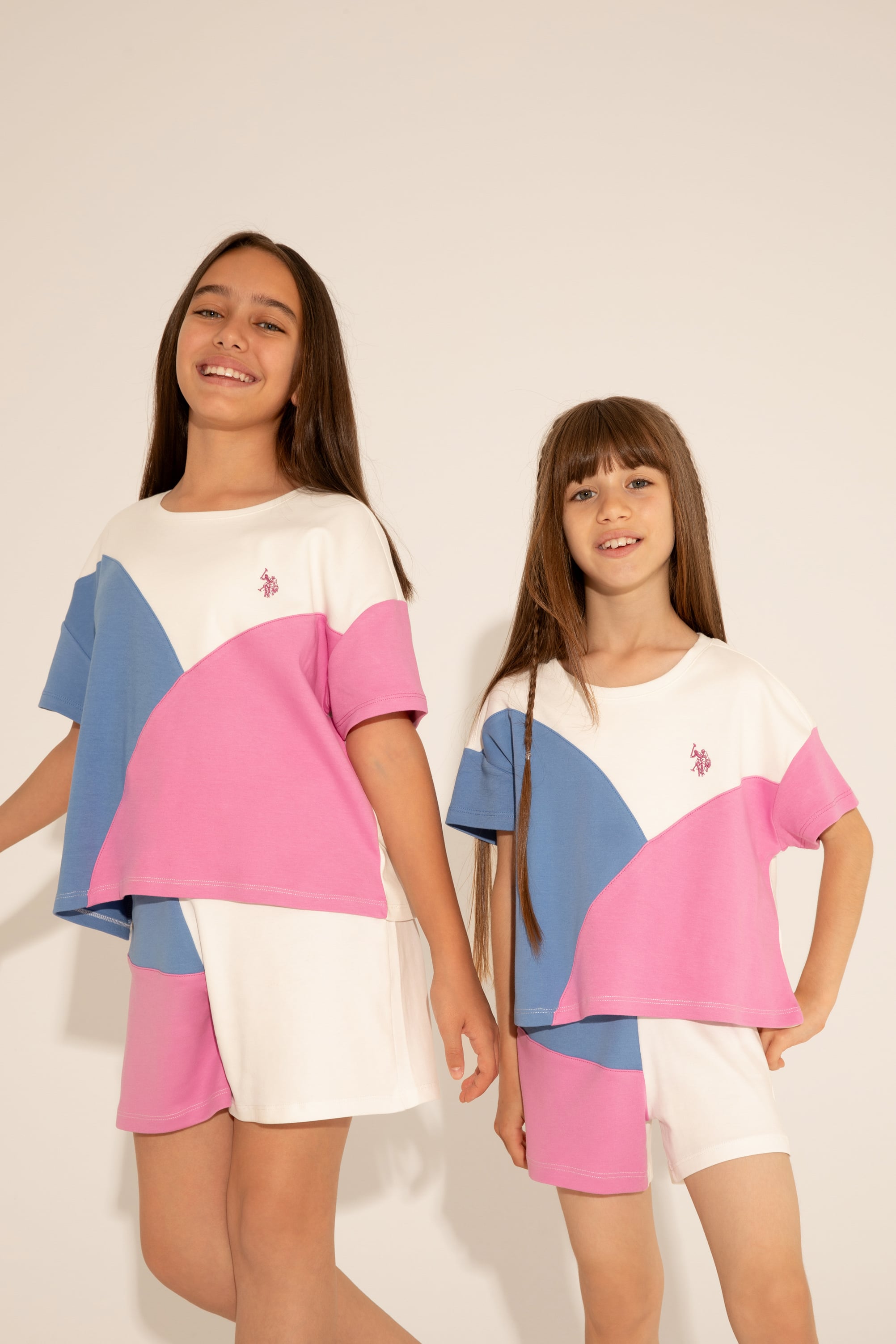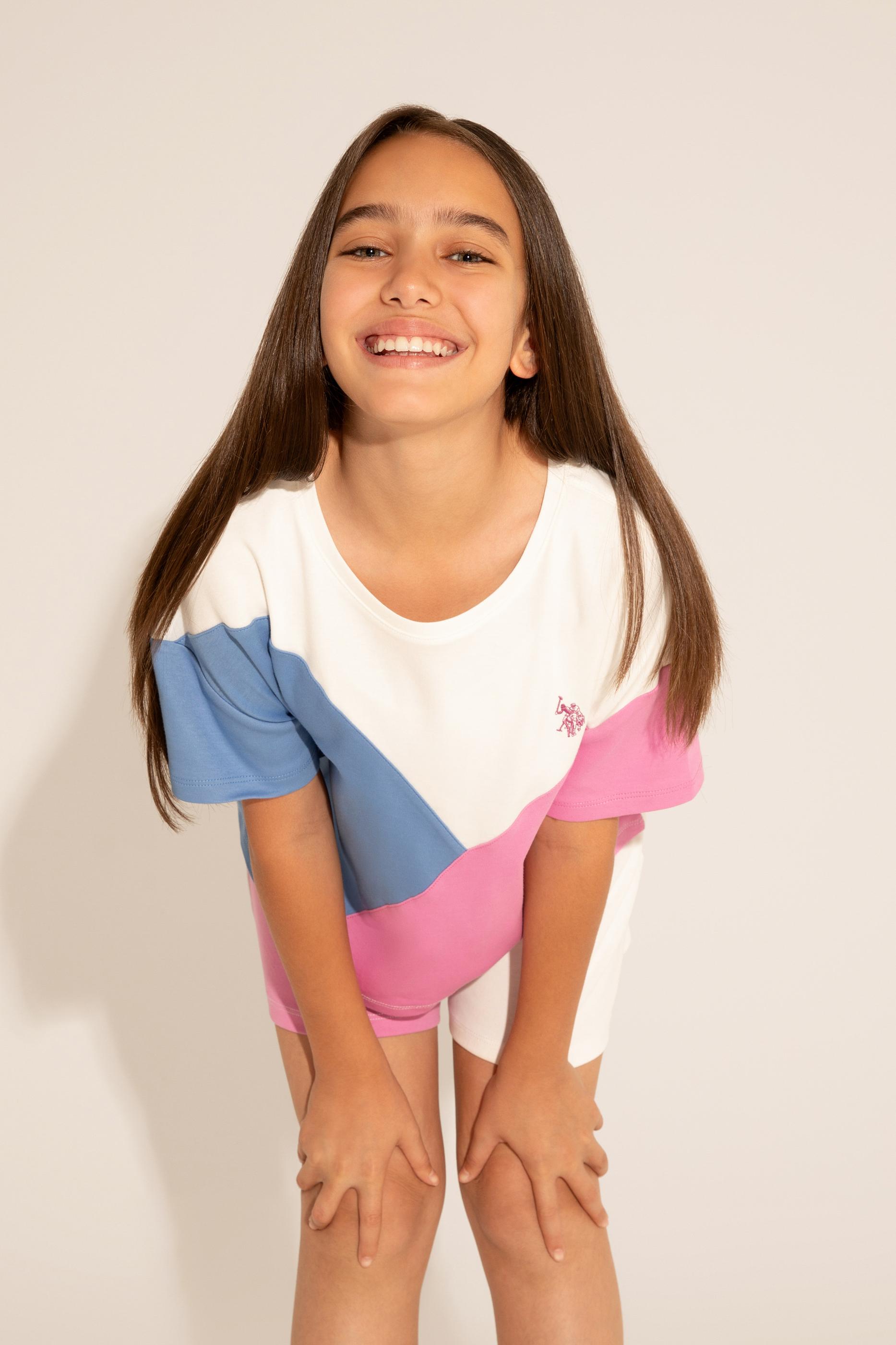Menekşe, mavi ve pembe tonlarının cesur bir birleşimiyle tasarlanan bisiklet yaka crop top tişört, kız çocuklarının gardırobuna canlı bir dokunuş katmaktadır. Dinamik renk blokları, enerjik bir görünüm sunarak tişörte modern bir hava kazandırmaktadır. Yumuşak pamuklu kumaşı, cilde dost yapısıyla gün boyu konfor sağlarken, nefes alabilir özellikte olmasıyla sıcak günler için ideal bir seçenek oluşturmaktadır. Bisiklet yaka tasarımı, boyun çevresine rahatça oturmakta, ek konfor sunarak günlük kullanımda pratiklik sağlamaktadır.