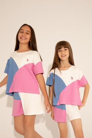 Crop top kesimi, sportif bir şıklık arayan çocuklar için ideal olup, vücuda oturan ve rahat bir duruş sunmaktadır. Renk blokları arasındaki geçişler, tişörte özgün ve eğlenceli bir görünüm kazandırmakta, çocukların stiline benzersiz bir dokunuş eklemektedir. Üzerindeki küçük marka logosu, markanın kalitesini yansıtırken sade bir şıklık katmaktadır. Kaliteli baskı detayları, uzun süre dayanıklılığını korumakta ve defalarca yıkansa bile ilk günkü canlılığını kaybetmemektedir.