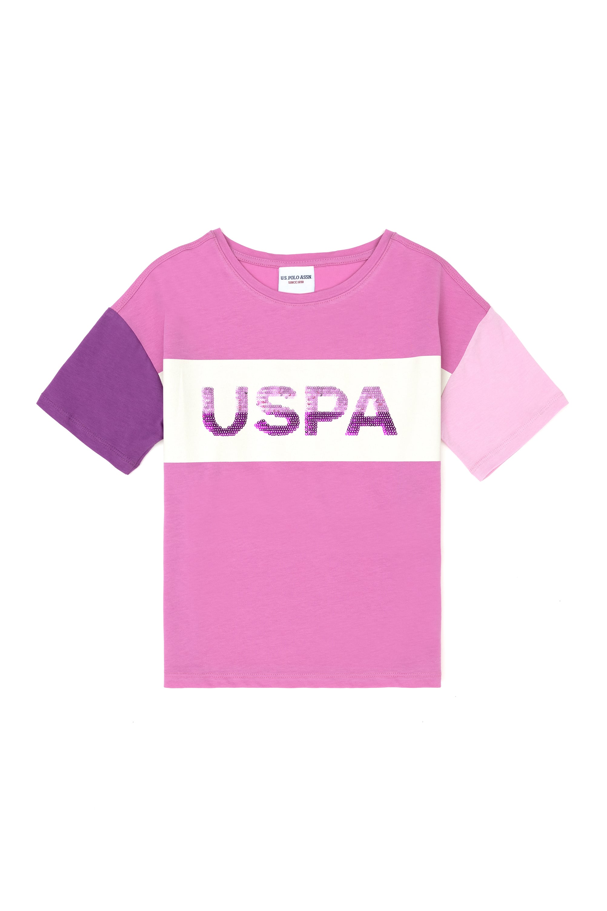 Menekşe tonlarının zarif dokunuşlarıyla tasarlanmış bisiklet yaka tişört, kız çocuklarının günlük stiline renkli bir enerji katmaktadır. Üç farklı tonun harmonisiyle oluşturulmuş blok tasarımı, tişörte modern ve eğlenceli bir görünüm kazandırırken, ortadaki büyük USPA yazısı dikkat çekici bir detay olarak öne çıkmaktadır. Yumuşak pamuklu kumaşı, cilde nazik davranarak gün boyu konfor sunmakta ve nefes alabilir yapısıyla sıcak havalarda serin tutmaktadır. Bisiklet yaka kesimi, boyun çevresine rahatça oturup ekstra konfor sağlamakta, tişörtün her an keyifle giyilmesine imkan tanımaktadır.