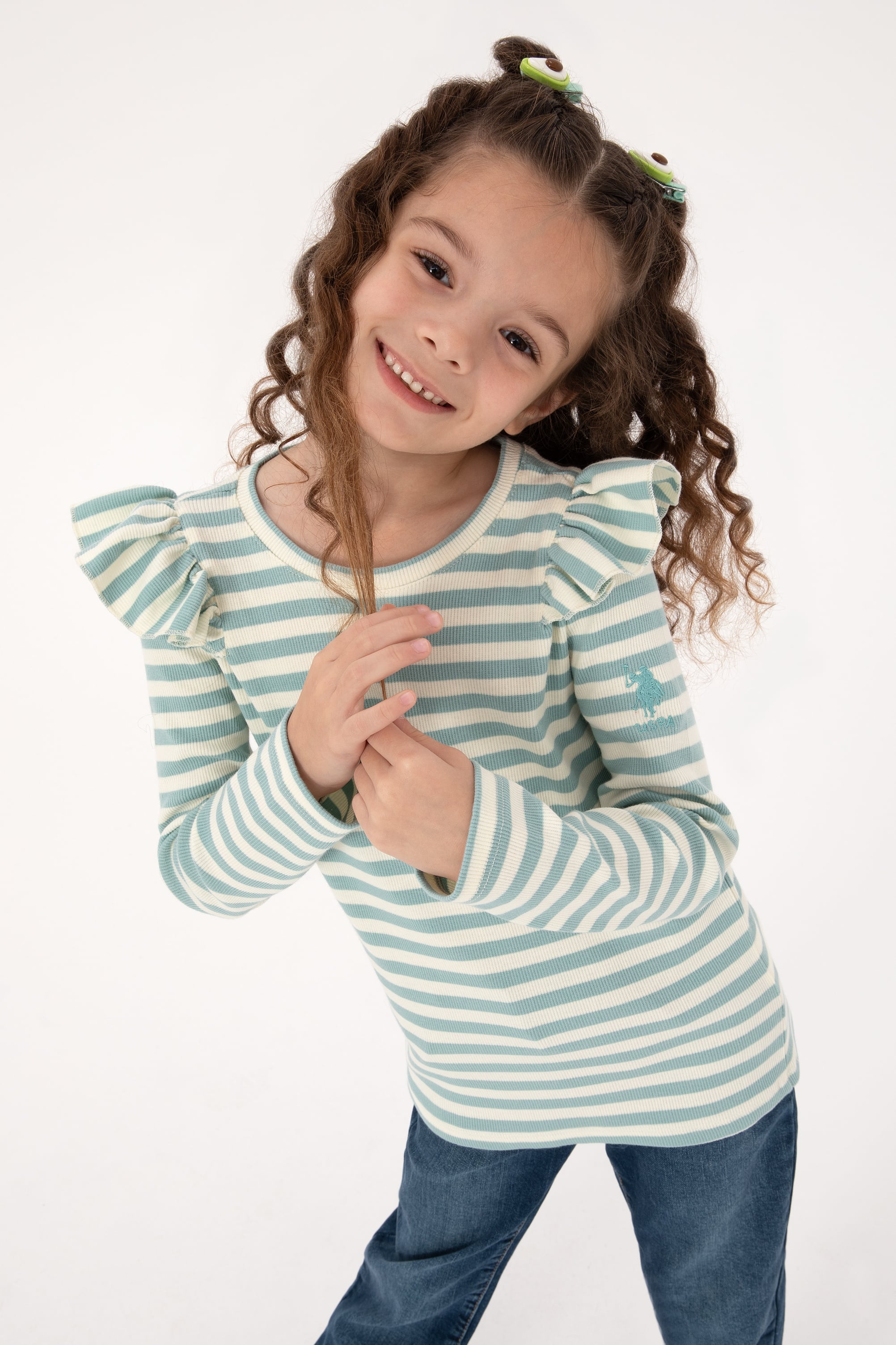Kız Çocuk Mint Çizgili Bisiklet Yaka Sweatshirt