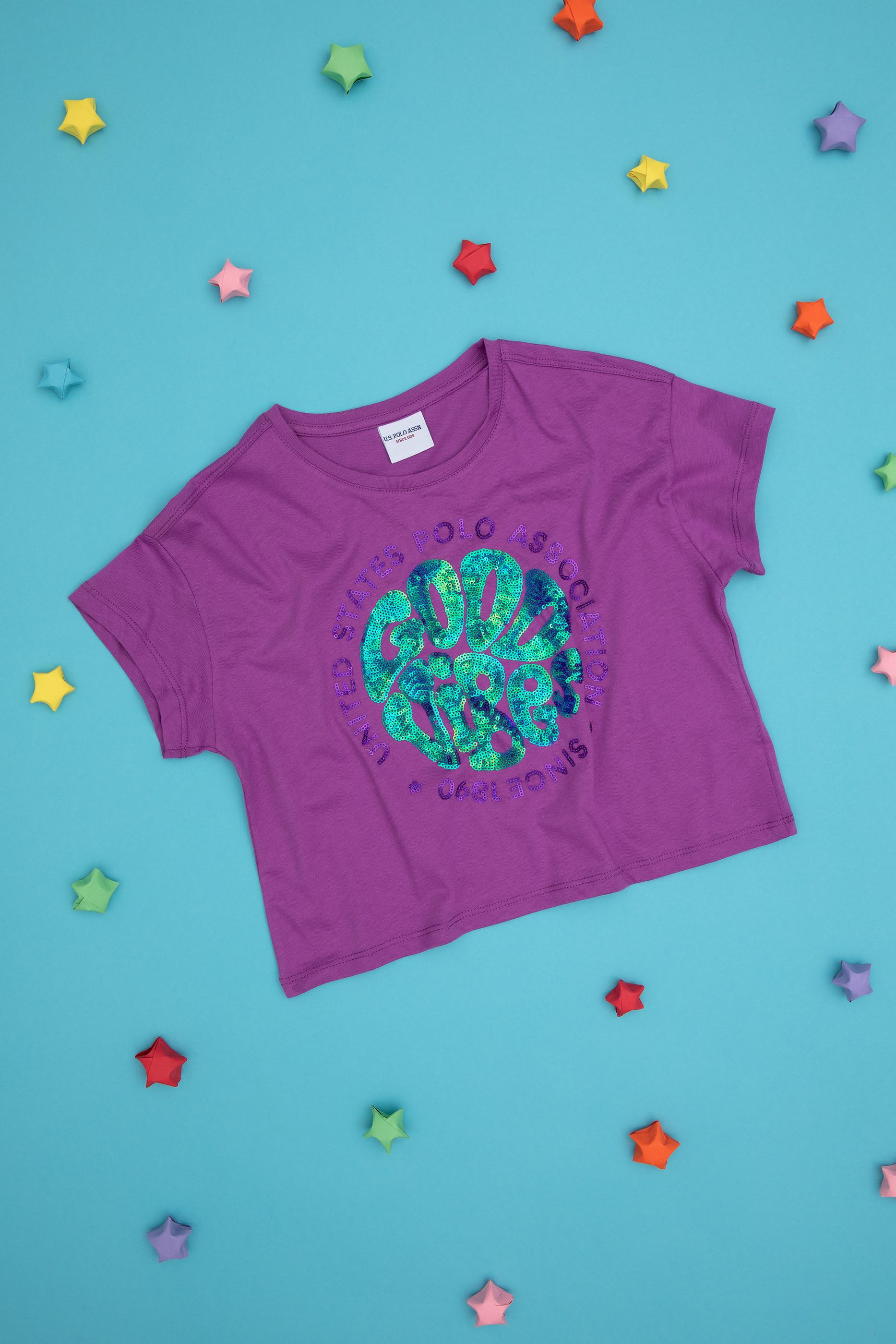 - Kız Çocuk Mor Bisiklet Yaka Tişört