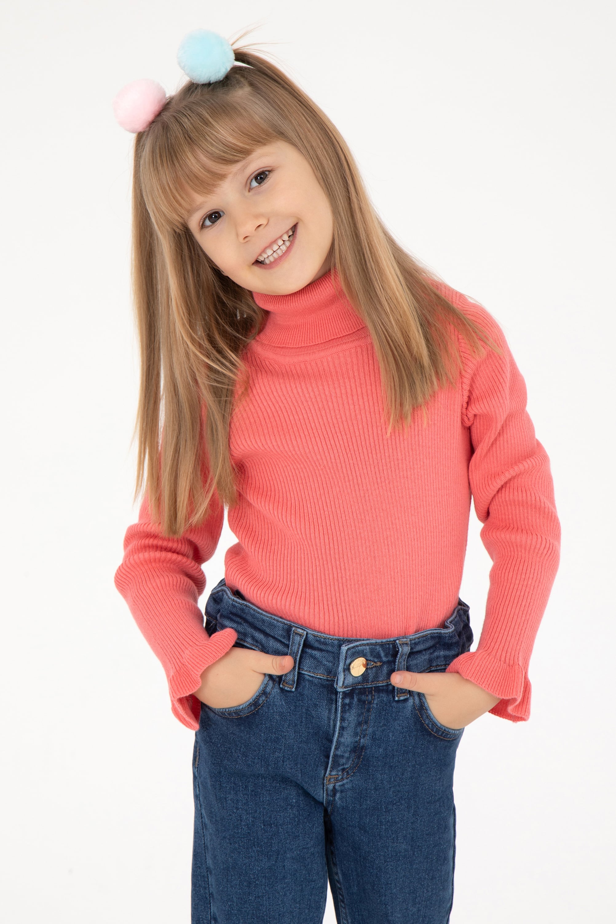 Kız Çocuk Nar Çiçeği Balıkçı Yaka Kazak