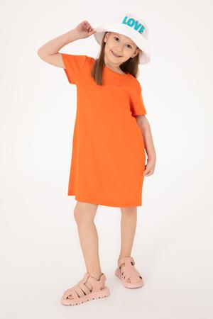 - Kız Çocuk Nar Çiçeği Bisiklet Yaka Kısa Kol İnterlok Basic Örme Elbise